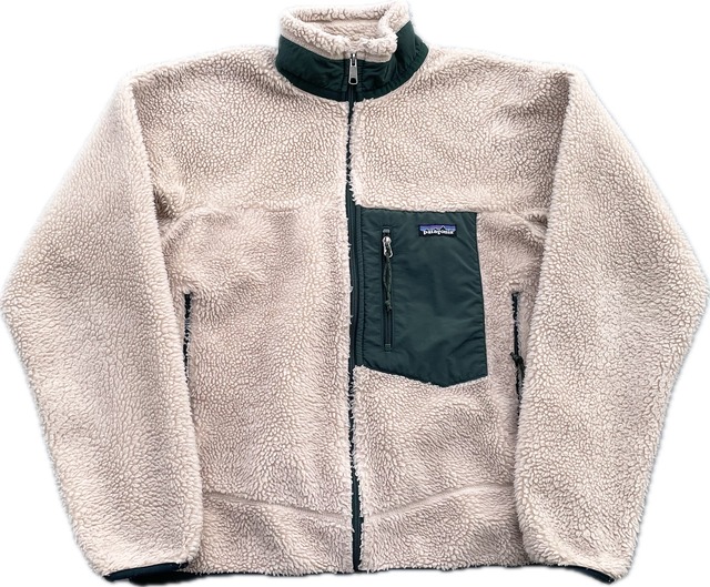 Patagonia Classic Retro-X Jacket 99s 【サイズ】M ・着丈:64cm ・袖丈:61cm※脇下より採寸 ・身幅:58cm ※平置きでの採寸となります。 【状態】両袖裏にパイル寝や多少の使用感はございますが、使用に支障を及ぼす傷や汚れ等見受けられず、古着慣れされている方であれば問題無くご使用いただけると思います。 【商品詳細】パタゴニアのクラシックレトロXジャケット。サイズはM。カラーはナチュラル。99年USA製。パタゴニアの定番モデルレトロX。クリーンな印象のナチュラルカラーとナイロン面のグリーンカラーの相性◎ 身幅もしっかりあるので中に着込めそうです。とにかく良いカラーですね。 年代物ですが悪くないコンディションかと。 【備考】 ・実寸について、測り方によって誤差が出る可能性がございます。 ・可能な限り実物に近いような撮影を心がけておりますが、ご確認いただく際の機器や環境によって色合いが変わって見える場合がございます。 予めご理解の程お願い致します。 ・USED.VINTAGEアイテムの為、文章に記載のないダメージや汚れ等ある場合がございます。 ・商品についてご質問ございましたらご連絡下さい。