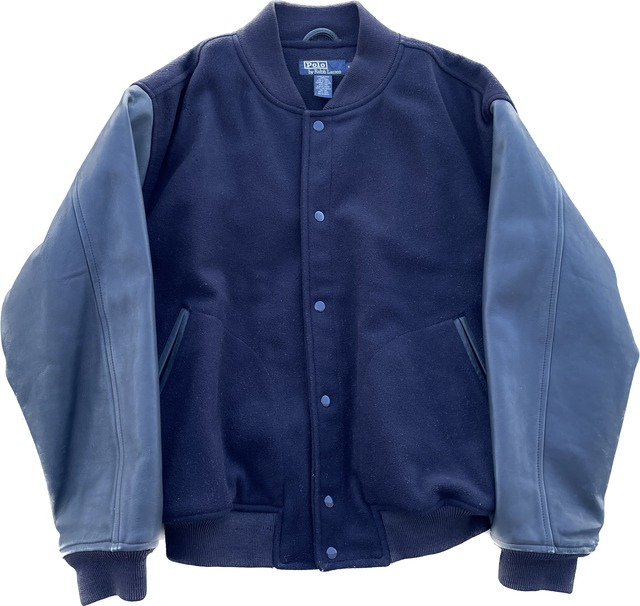 Ralph Lauren Leather Sleeve Stadium Jumper 90s 【サイズ】L ・着丈:66.5cm ・肩幅:58cm ・袖丈:62cm ・身幅:62cm ※平置きでの採寸となります。 【状態】 下記箇所お直しに出し、修理跡あり ・右肩付近(写真14枚目) ・左胸付近(写真15枚目) ・裾リブ(写真16・17・18枚目) 他レザースリーブに使用感やスレ等ございますご使用に支障をきたす致命的な傷や汚れ等見受けられず、古着慣れされている方であれば問題なくご着用いただけると思います。 【商品詳細】ラルフローレンの名作袖レザースタジャン。カラーはネイビー。サイズはL。90年代頃インド製。ボディはウール。初見ラルフローレンとは分からない完全無地のアーバンスタイル。ライニングのキルティング仕様+イエローカラーも◎弊店で既にお直しに出してはおりますが、気になる方は改めて修理に出しても良いと思います。お探しの方も多いモデル。 【備考】 ・実寸について、測り方によって誤差が出る可能性がございます。 ・可能な限り実物に近いような撮影を心がけておりますが、ご確認いただく際の機器や環境によって色合いが変わって見える場合がございます。 予めご理解の程お願い致します。 ・USED.VINTAGEアイテムの為、文章に記載のないダメージや汚れ等ある場合がございます。 ・商品についてご質問ございましたらご連絡下さい。
