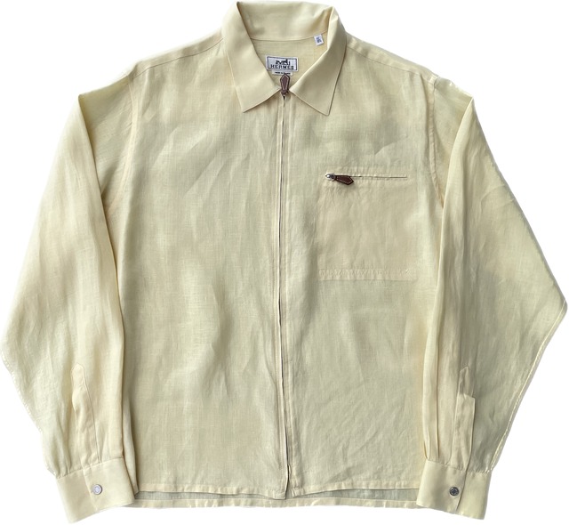HERMES Linen ZIP-UP Shirt Jacket Yellow‼︎ France Made!! 00s