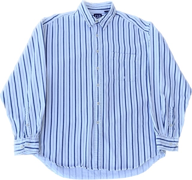 GAP Heavy Flannel L/S Shirt XLsize!! Old Model!! 90s 【サイズ】XL ・着丈:82.5cm(前身頃:77.5cm※肩より採寸) ・肩幅:59cm ・袖丈:62cm ・身幅:67.5cm ※平置きでの採寸となります。 【状態】胸ポケットにダメージや使用感はございますが、良い雰囲気になっていると思います。他使用に支障を及ぼす傷や汚れ等見受けられず、古着慣れされている方であれば問題無くご着用いただけると思います。 【商品詳細】ギャップのヘビーフランネル長袖シャツ。サイズはXL。カラーはホワイト×ブルーのストライプパターンデザイン。90年代インドネシア製。霞んだ手書きのような2種類のストライプが洒落た雰囲気あります。リラックスしたディテールで着用時は綺麗なラウンドシルエット◎ 胸ポケットにダメージありますが雰囲気込みで良い味になっていると思います。嬉しい大きめXLサイズでガバッとご着用いただけます。 【備考】 ・実寸について、測り方によって誤差が出る可能性がございます。 ・可能な限り実物に近いような撮影を心がけておりますが、ご確認いただく際の機器や環境によって色合いが変わって見える場合がございます。 予めご理解の程お願い致します。 ・USED.VINTAGEアイテムの為、文章に記載のないダメージや汚れ等ある場合がございます。 ・商品についてご質問ございましたらご連絡下さい。