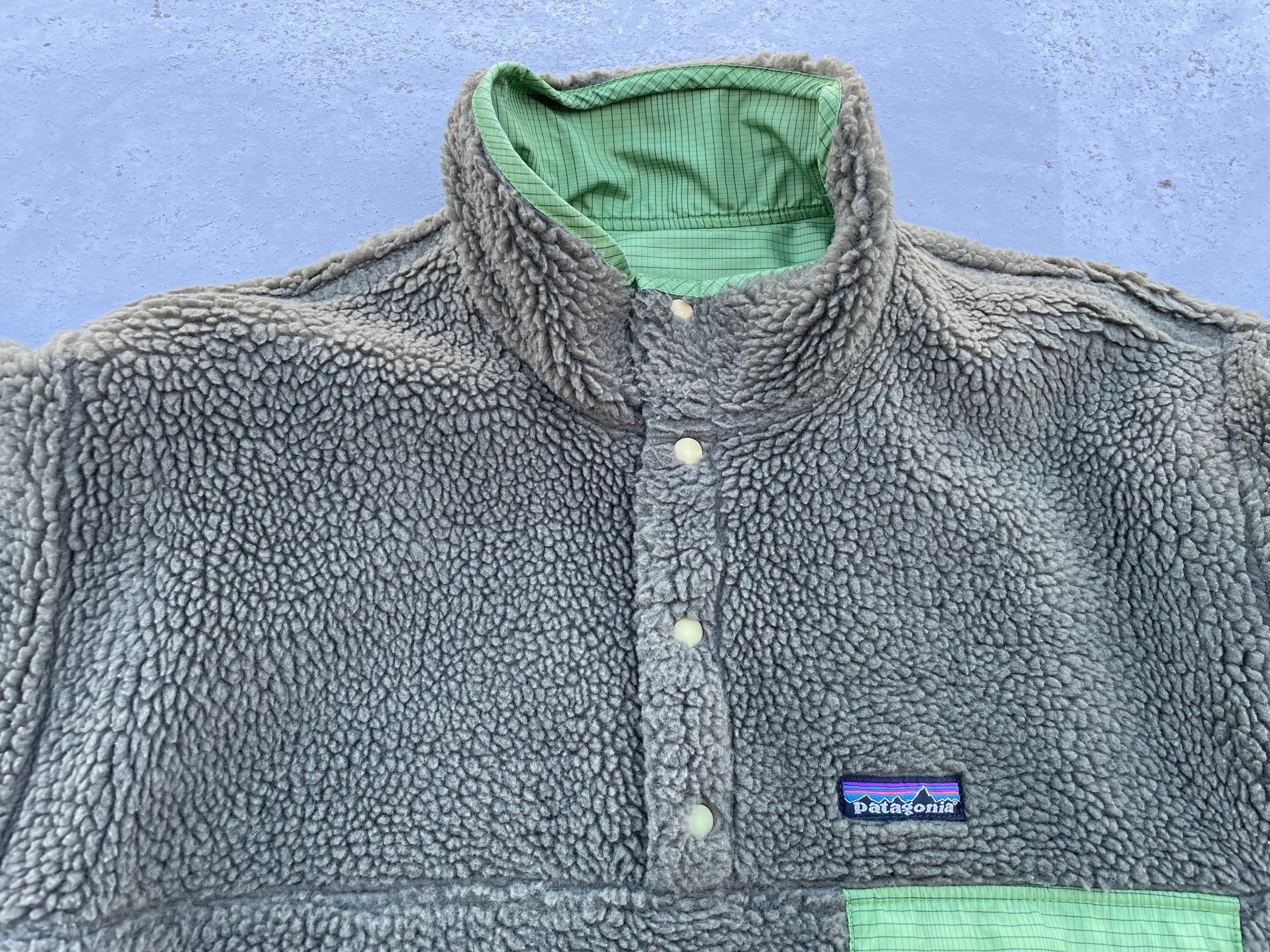 【商品詳細】パタゴニアのリバーシブルスナップT。カラーはライムグリーン×カーキ。07年コロンビア製。人気モデルのリバーシブルスナップT。グリッド調のナイロン面と毛足の長いパイル面のリバーシブル仕様。タグもしっかり付いており、パイル面でご着用されたい方はタグカットしてもいいと思います。ほぼグリセードなスナップT。