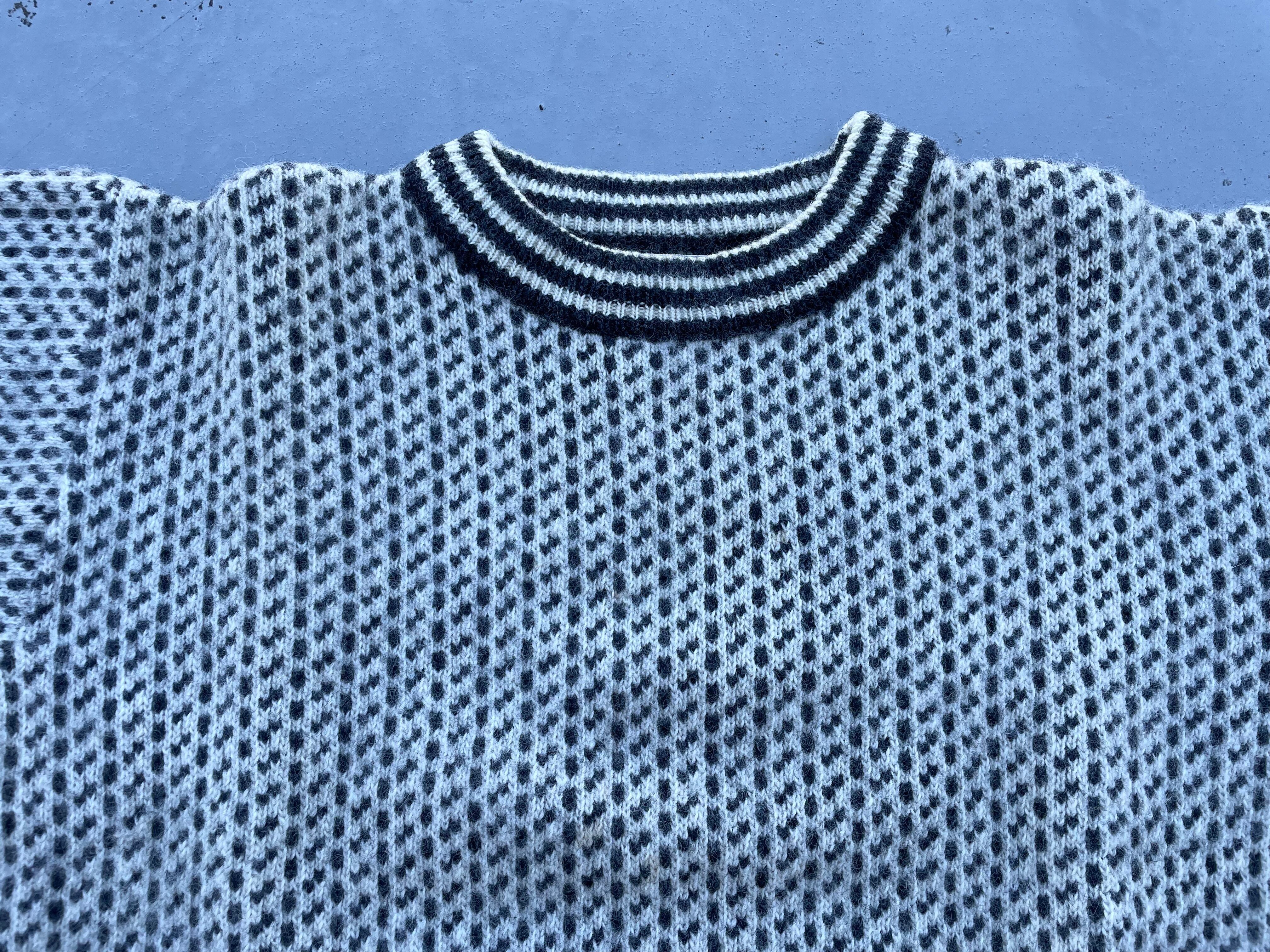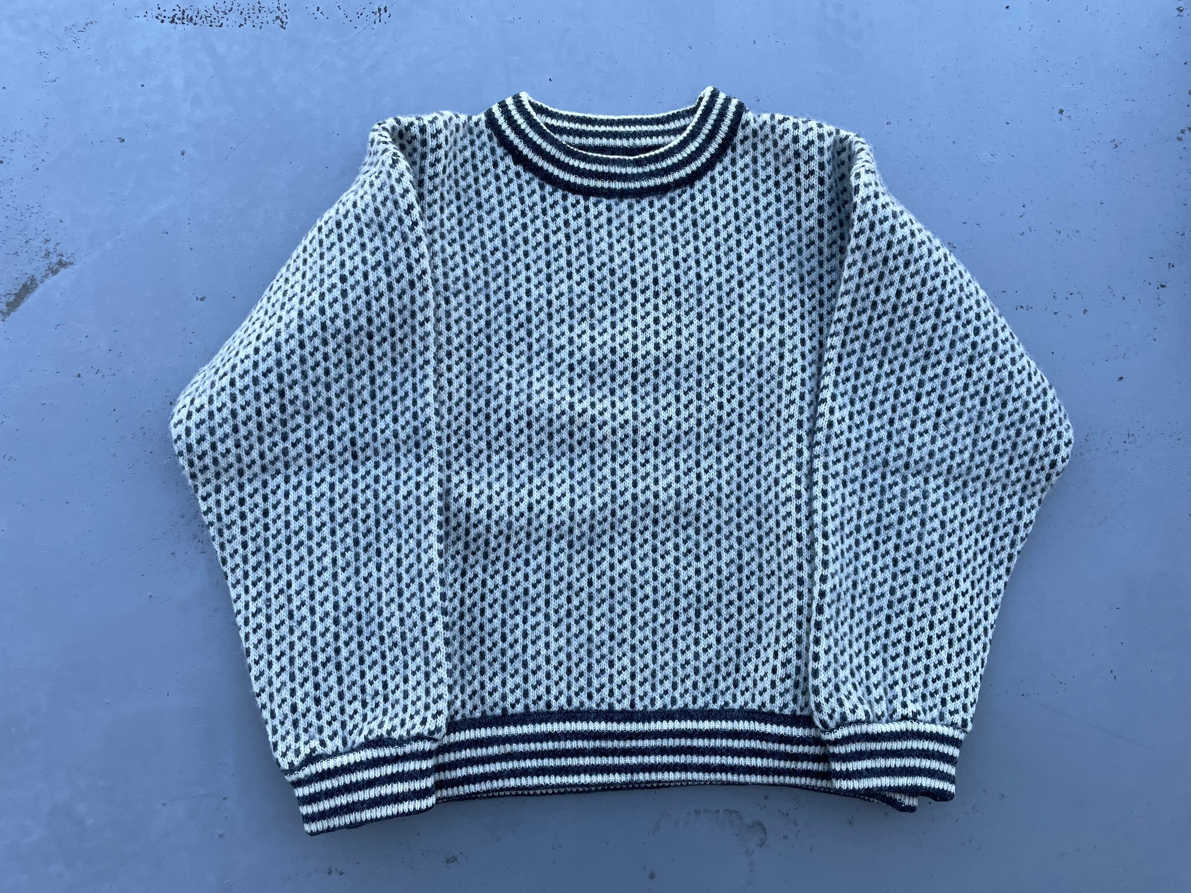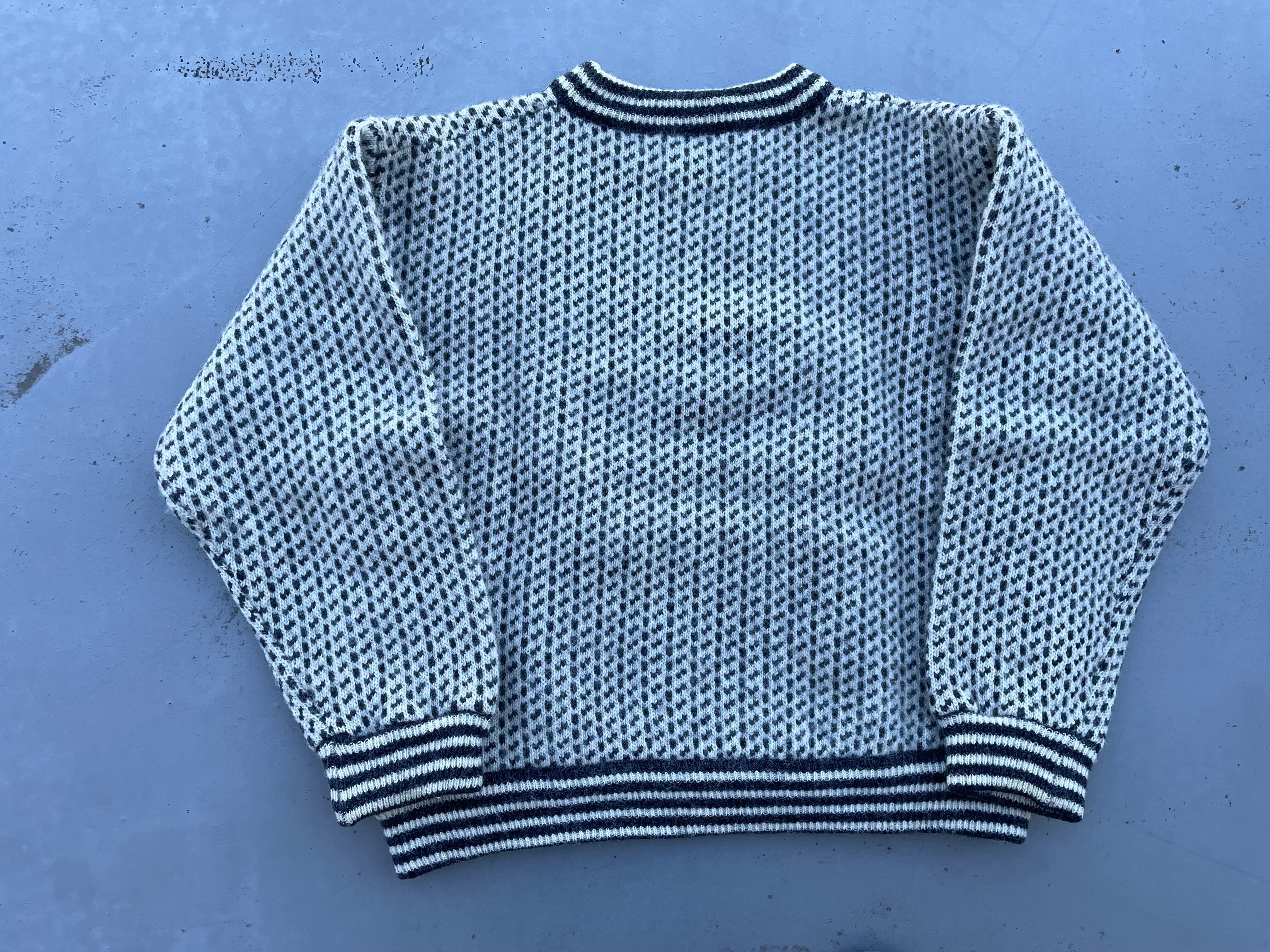 【商品詳細】エルエルビーン定番モデルのバーズアイニット。カラーはホワイト。サイズはL。70-80年代頃スコットランド製。メンズモデル。人気の身幅広めの個体。最近はバーズアイの中でもホワイトが特に人気出ている気がします。