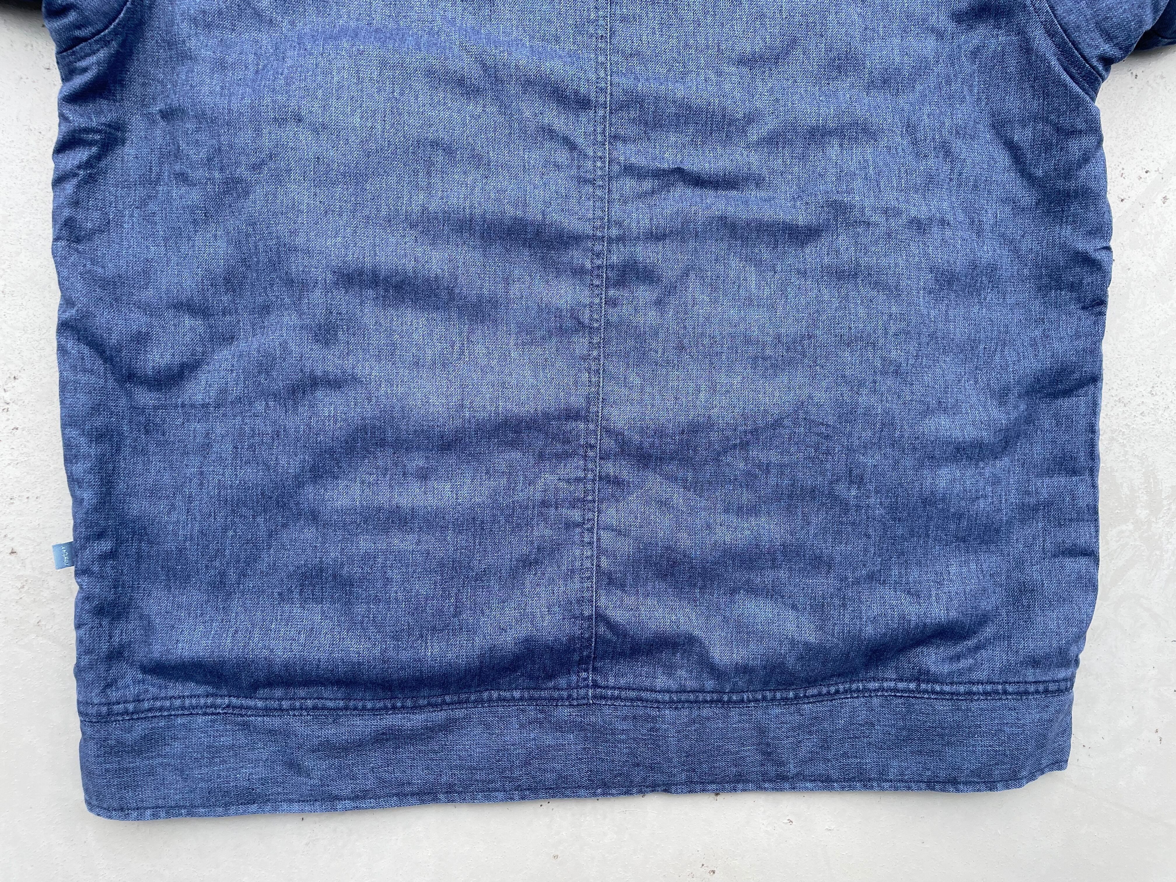 【商品詳細】パタゴニアのハイワイヤーへンプジャケット。カラーはインディゴ。サイズはL。05年中国製。リズムシリーズの隠れた名品。インナーのライニングは100%リサイクルポリエステル地でしっかり暖かいです。表地ヘンプ&ポリエステル地でハードにご使用頂けます。前回Mサイズでしたが今回はLサイズです。
