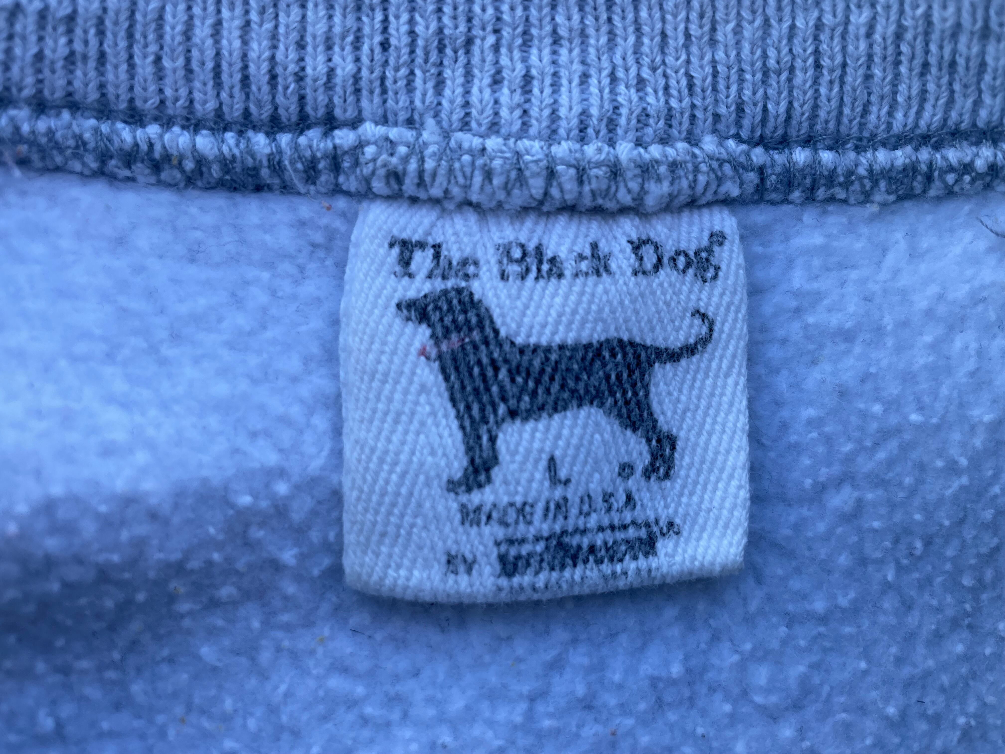 【商品詳細】ブラックドッグのプルオーバースウェットシャツ。カラーは杢グレー。サイズはL。90年代頃USA製。ブラックドッグ定番のスウェットシャツ。がしっとした生地感でハードにご着用いただけそうです。リバースウィーブ仕様。この辺集めるのも面白そうですね。