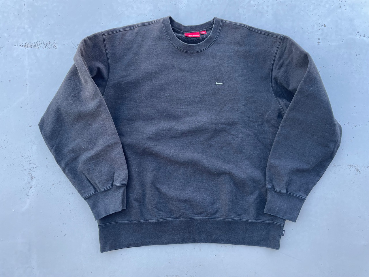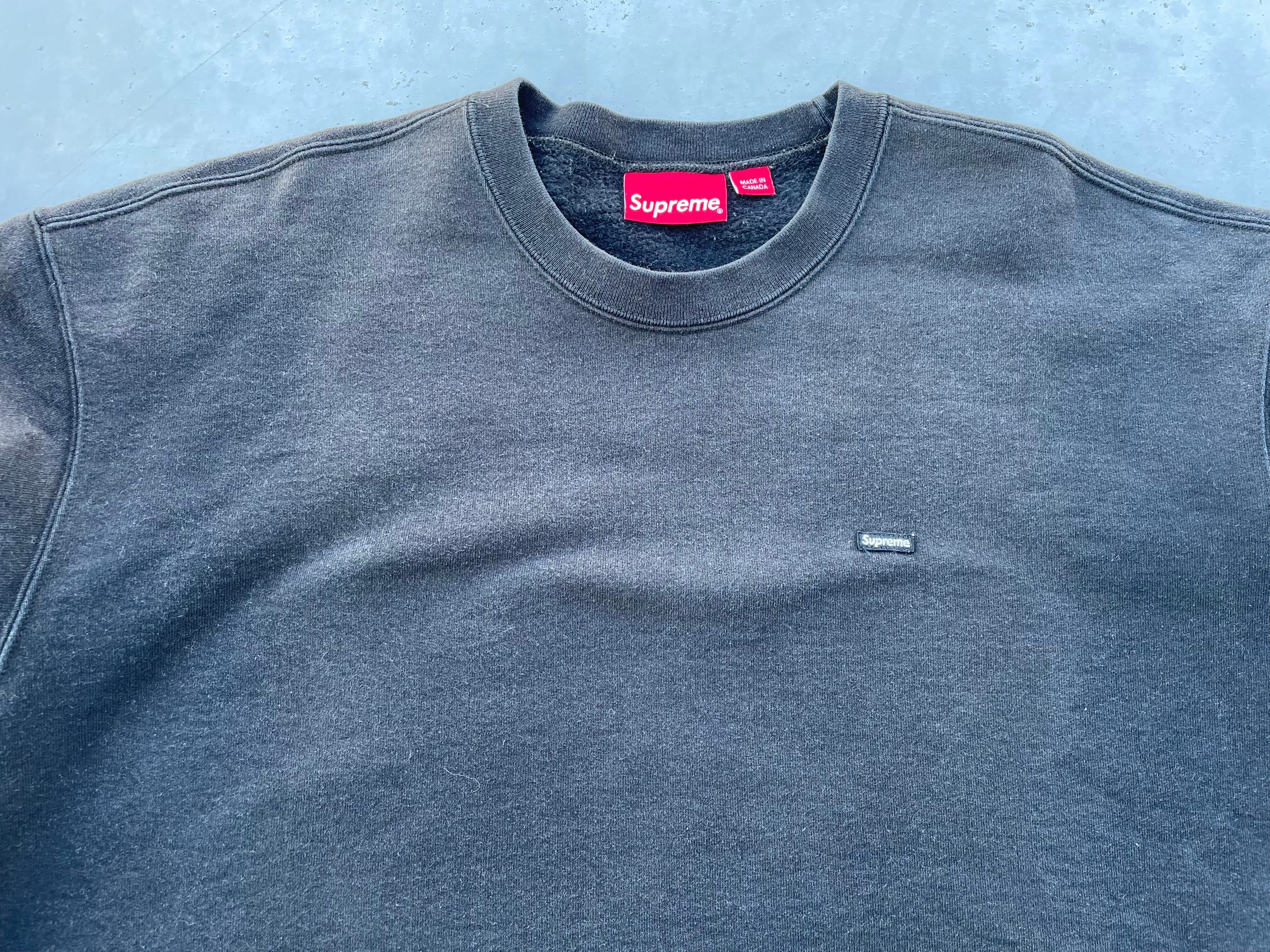 【商品詳細】シュプリームのスモールボックスロゴクルーネックスウェットシャツ。カラーはブラック。サイズはXL。20年カナダ製。シュプリーム定番のボックスロゴのスモールタイプ。近年物ですが良い塩梅にフェードしており雰囲気◎ガシッとした生地感でハードにご着用いただけるかと思います。