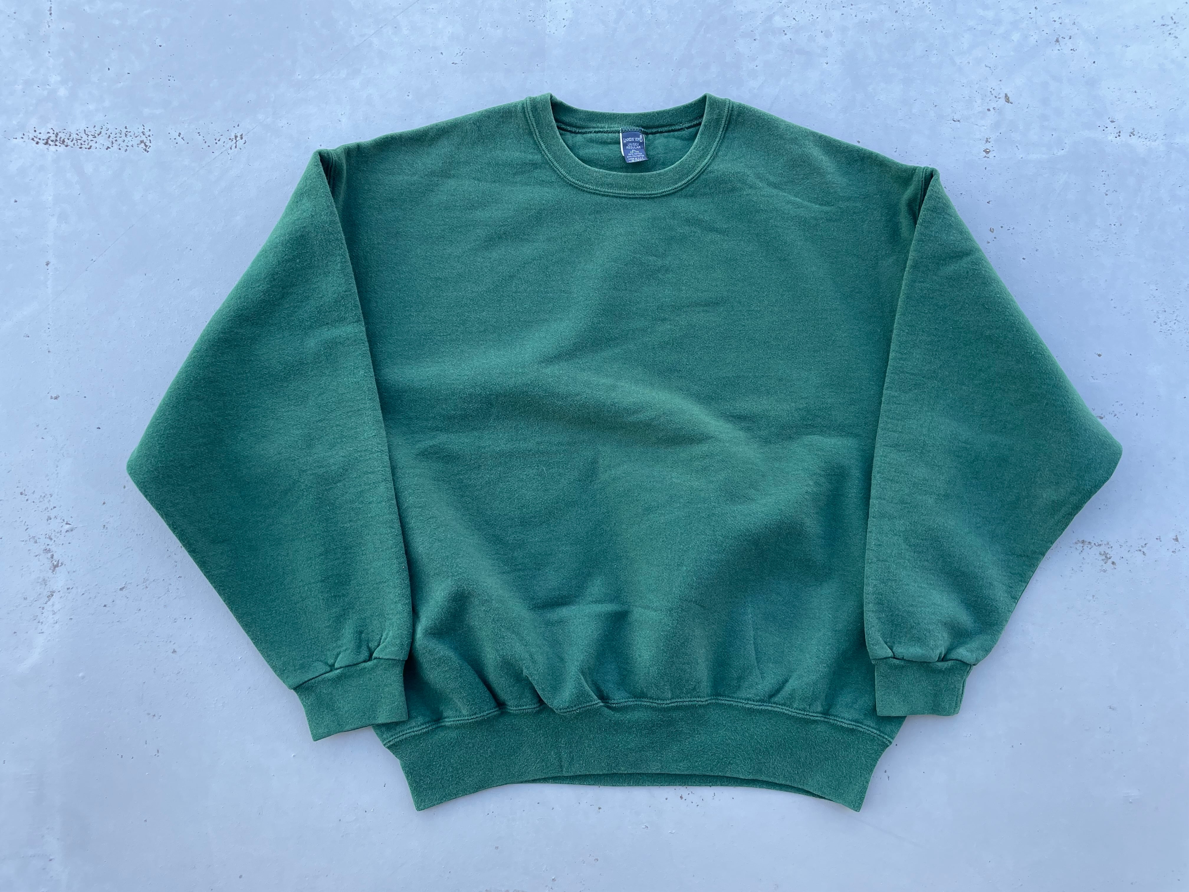 【商品詳細】ランズエンドのバルーンスウェットシャツ。カラーはフェードグリーン。サイズはXL。90年代頃USA製。ガシッとしたコットン・アクリル地。良い塩梅にフェードしており雰囲気あります。またサイズがXLとなっており、バルーンシルエットの良い形になってます。