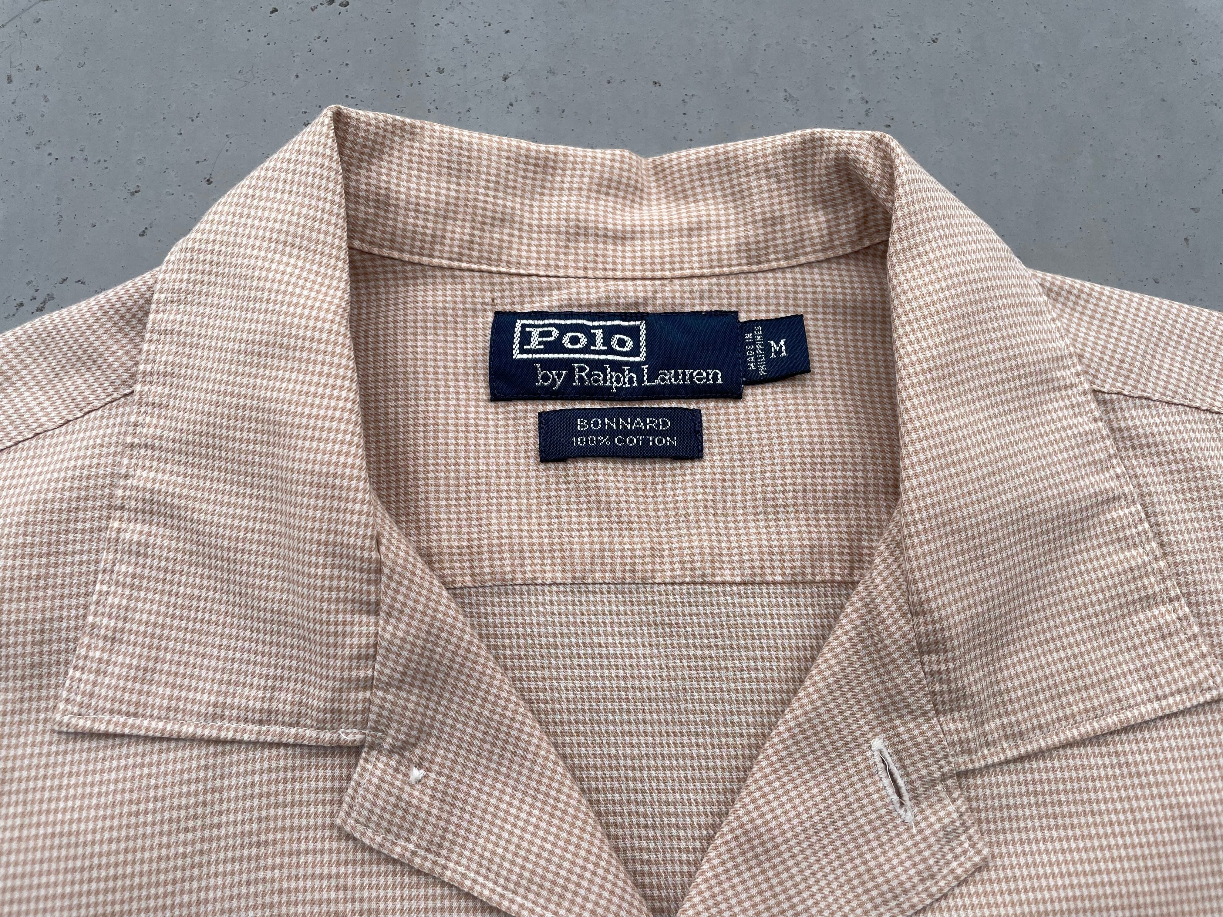 Ralph Lauren Open Collar Shirt Houndstooth Pattern "BONNARD" 90s