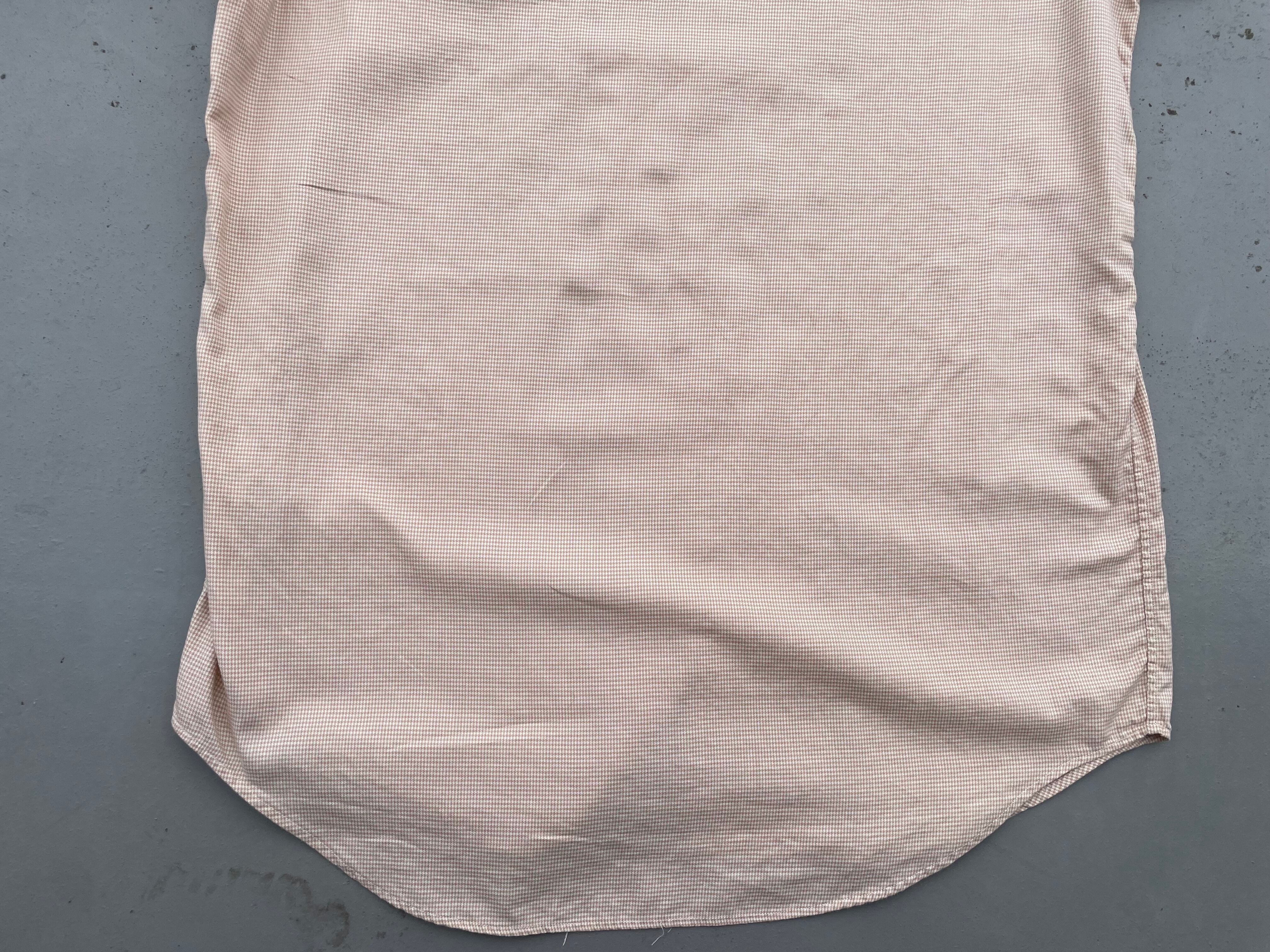 【商品詳細】ラルフローレンのオープンカラーシャツ。カラーはオレンジ×ホワイト。サイズはM。90年代頃フィリピン製。ラルフローレンの”BONNARD”モデルのオープンカラーシャツ。オレンジ×ホワイトの千鳥格子パターン。触り心地の良いコットン地や綺麗なラウンドシルエット等、ブランドらしい上品な仕上がりになってます。コットン100%なのでガシガシご着用いただけます。