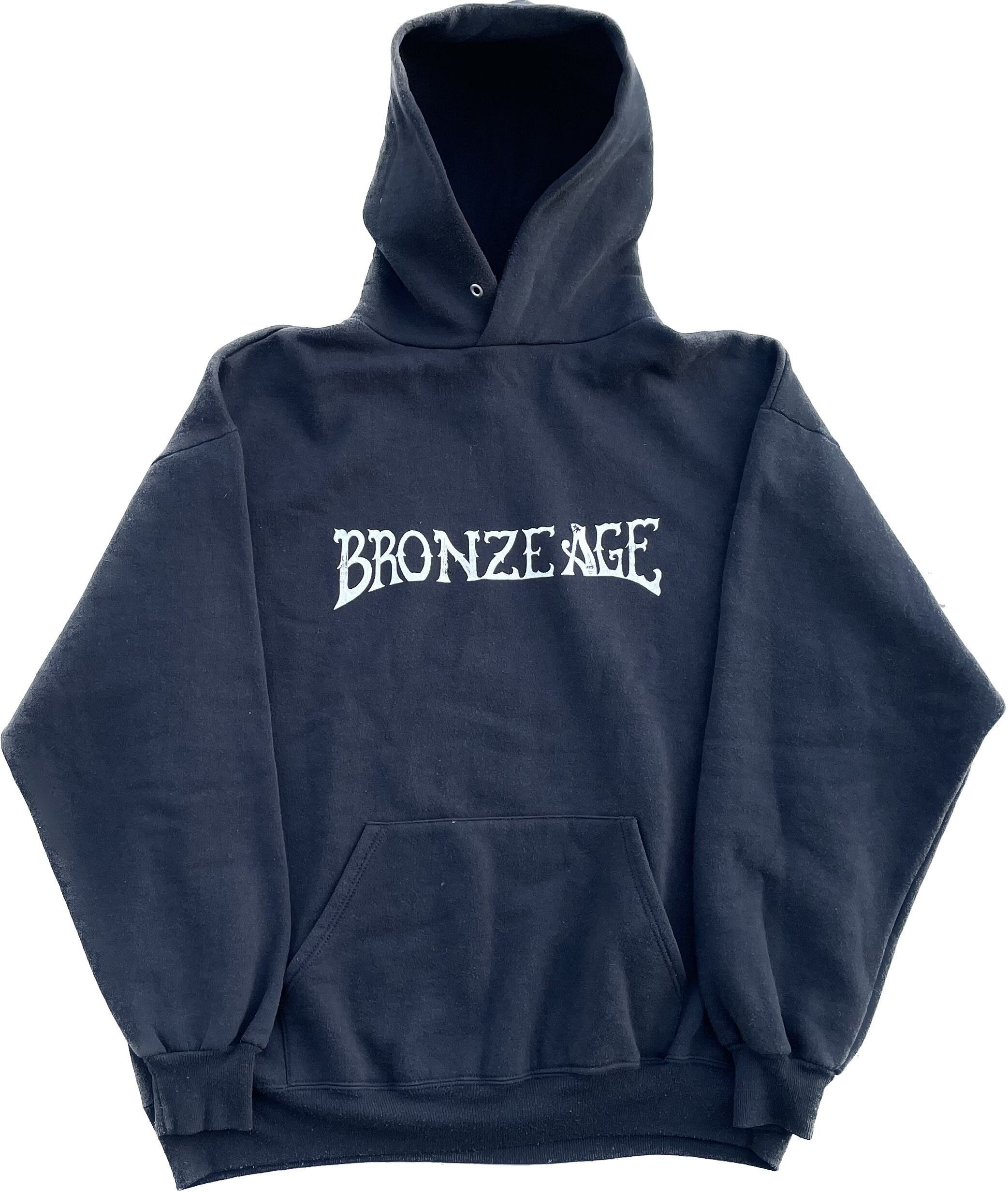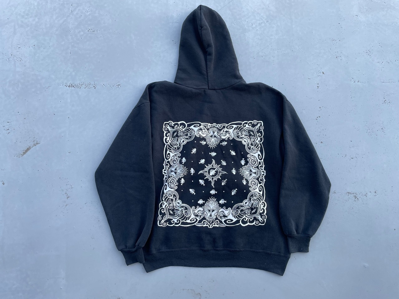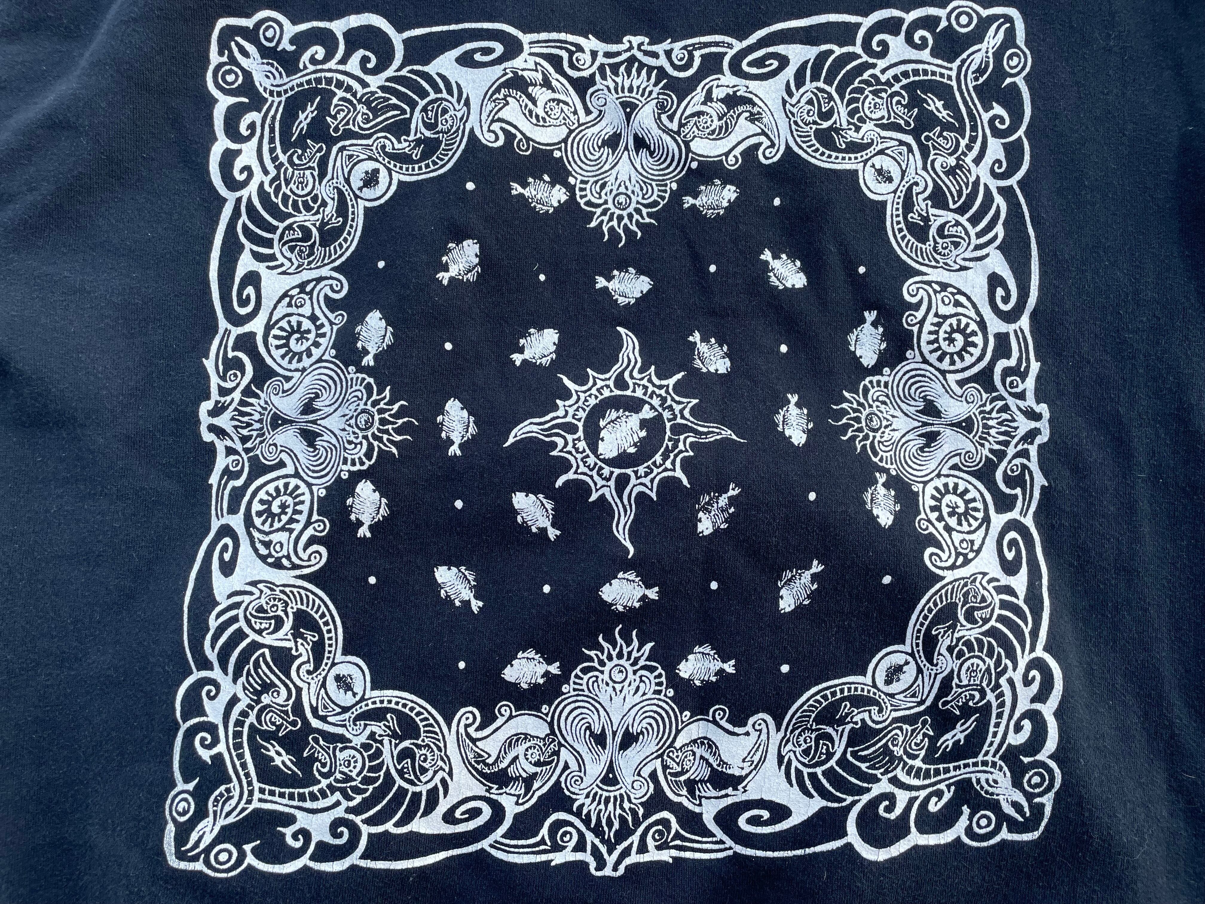 【商品詳細】ブロンズエイジのプルオーバーパーカー。カラーはブラック。サイズはXL。90年代頃USA製。ブロンズエイジのアイコンとなっているフィッシュプリントをペイズリーパターンにした1着。存在感のある大判プリントの為、これ1着で決まるかと。サイズも大きめで需要高めの個体だと思います。