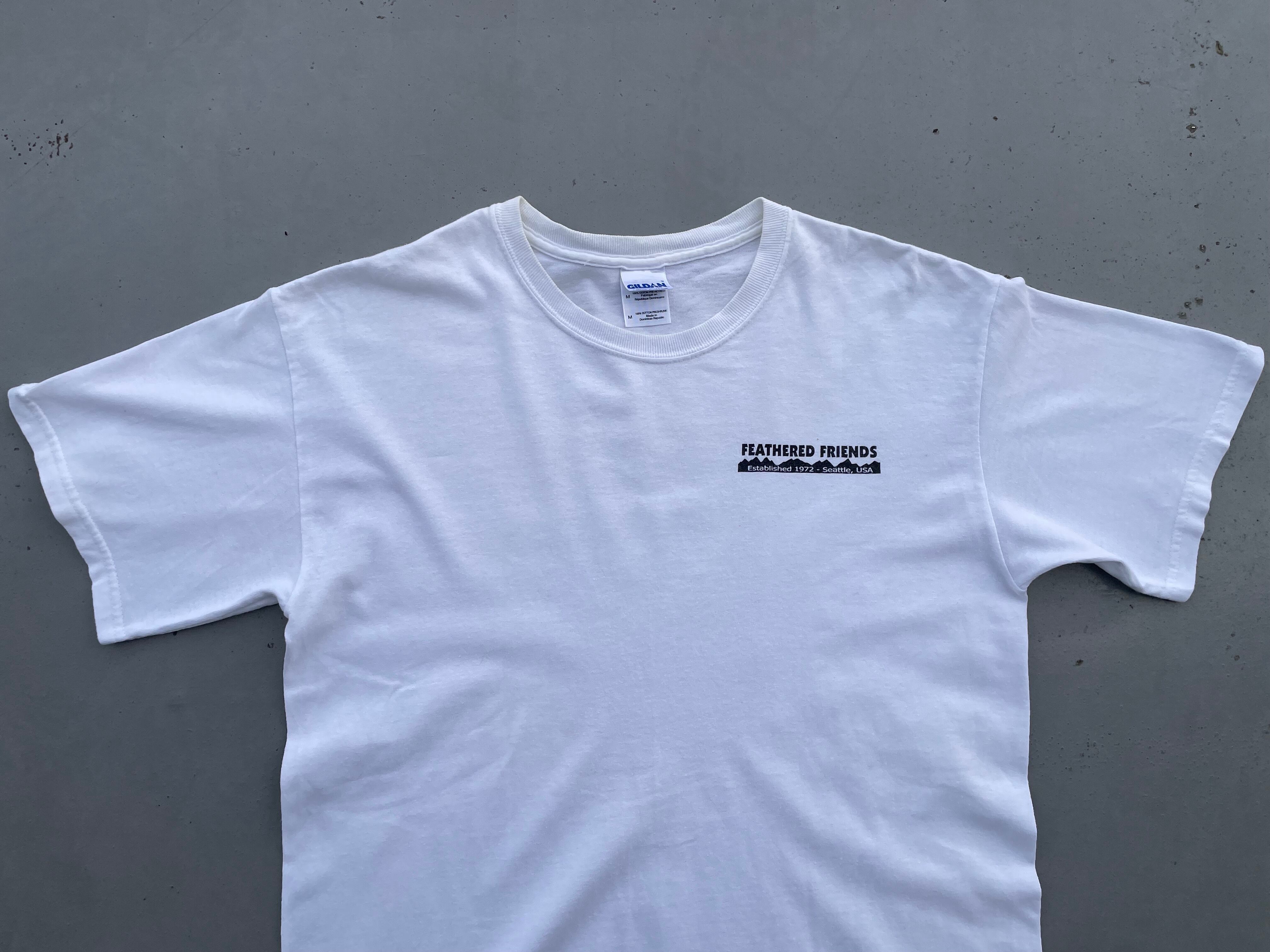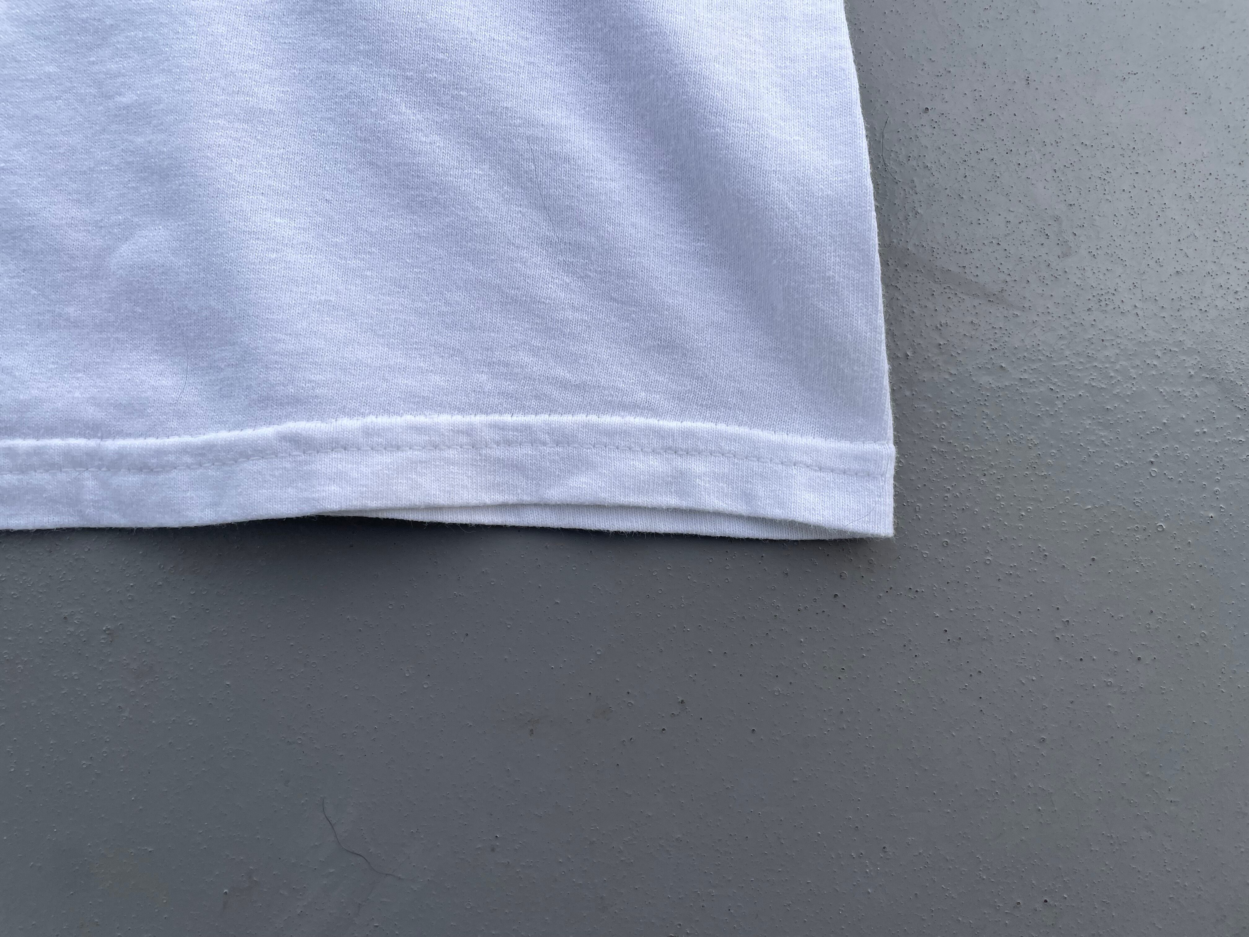 【商品詳細】フェザードフレンズの半袖Tシャツ。カラーはホワイト。00年代頃ドミニカ製。ギルダンボディ裾・袖ダブルステッチ。ファザードフレンズの通好きなSMOKINGプリントのTシャツ。バックに大判プリントが入っており雰囲気あります。個人的にもこのプリントが大好きで探してましたが当時なかなか見つからずでした。Mサイズですが実寸の通り、少し大きめです。