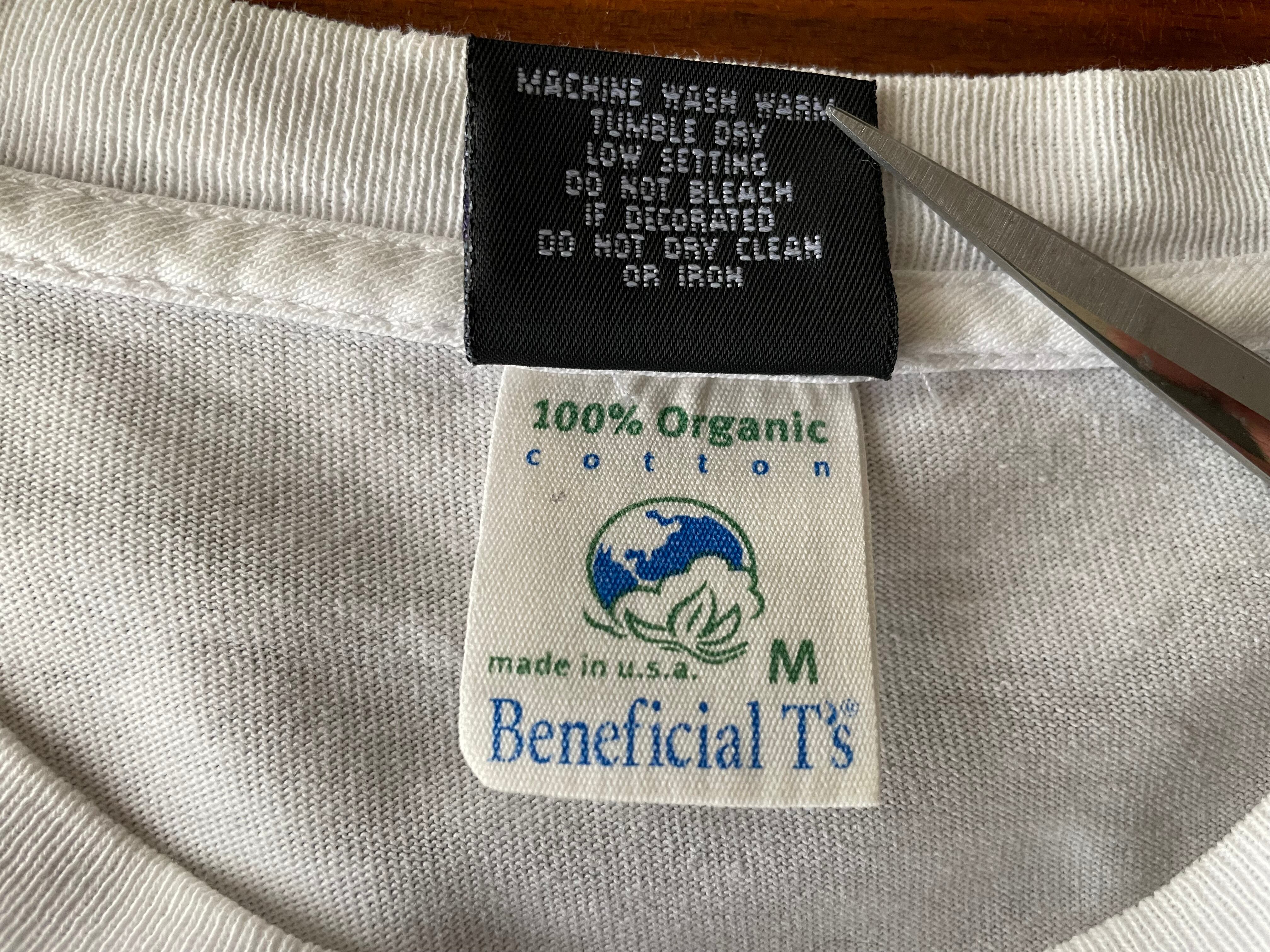【商品詳細】ライディングマニア半袖Tシャツ。サイズはM。カラーはホワイト。90年代USA製。袖・裾ダブルステッチ。Beneficial T’sボディ。どこかパタゴニアのロゴを感じる所謂パロディプリント。横に寝そべる女性を山脈に重ねた秀逸デザイン。同デザインですとライディングマンと言われる自転車を漕ぐキャラクターがプリントされた個体が多いですがこちらは珍しい不在パターンのデザイン。メッセージ等は置いておいてシンプルにかっこいい1着だと思います。右肩付近に小穴ありますがあまり気にならないと思います。白タグBeneficial T’sボディは大きめの作りが多くこちらも大きめサイズです。