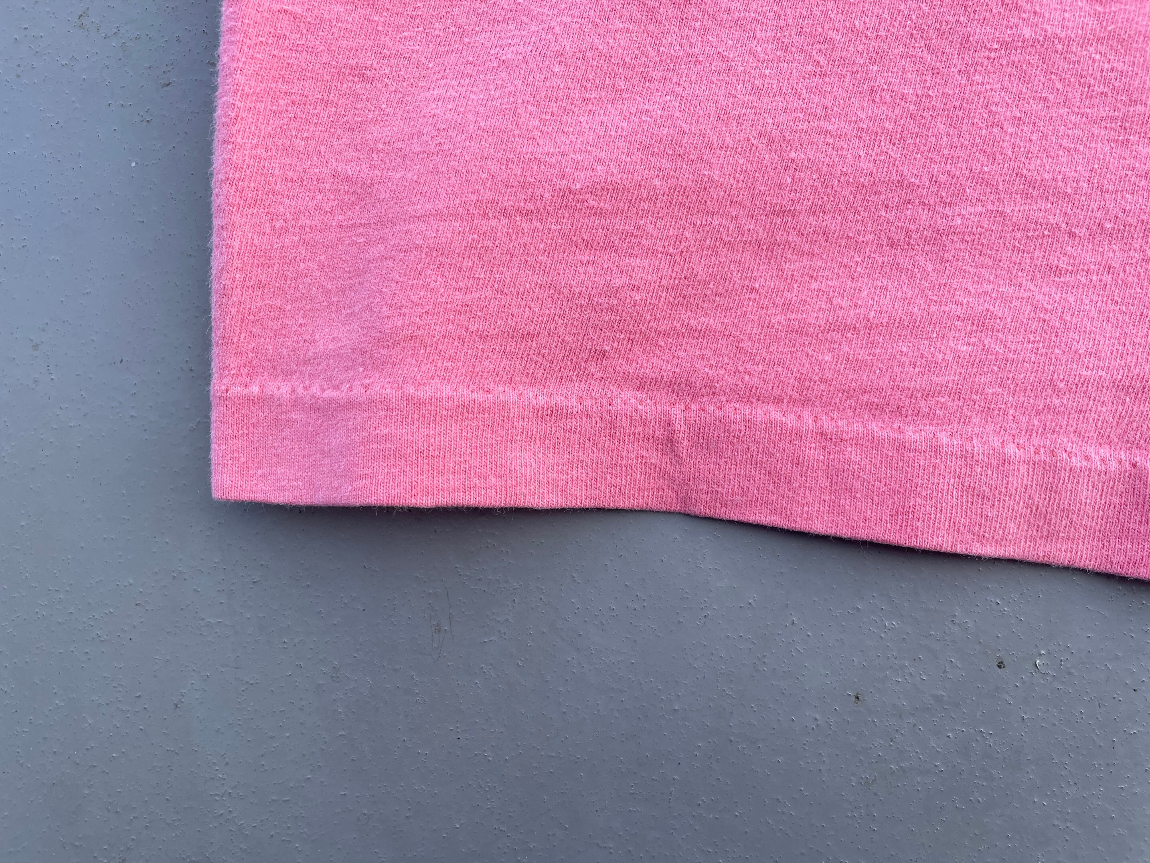 【商品詳細】ザ・ブラックドッグの半袖Tシャツ。カラーはフェードピンク。サイズはXL。92年USA製。Hanesボディ。裾・袖シングルステッチ。ブラックドッグ定番プリントTシャツ。こちらは92年製の古めの個体。良い塩梅にフェードしたピンクがよく古着と合いそうです。着丈・身幅がしっかりある需要の高い個体。