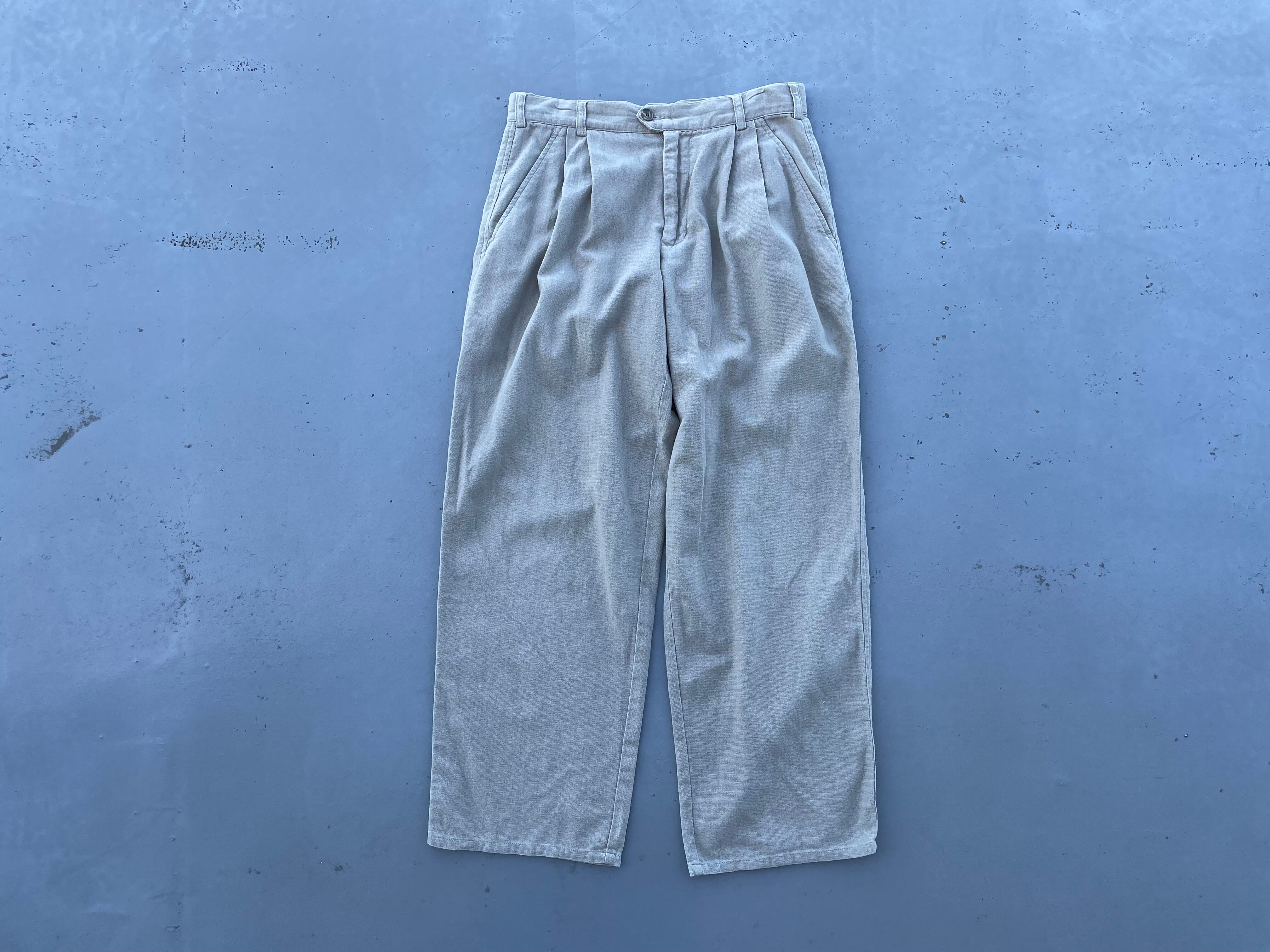 【商品詳細】パタゴニアのA/Cパンツ。カラーはベージュ。サイズはW31。92年製。珍しい白タグのA/Cパンツ。いわゆるチノパンとは違い風通しの良いザラっとした肌触りの質感で厚すぎず薄すぎない程よい生地感の1本。ツータック仕様となっておりゆったりしたシルエットでご着用いただけます。球数少なめなモデルかと。