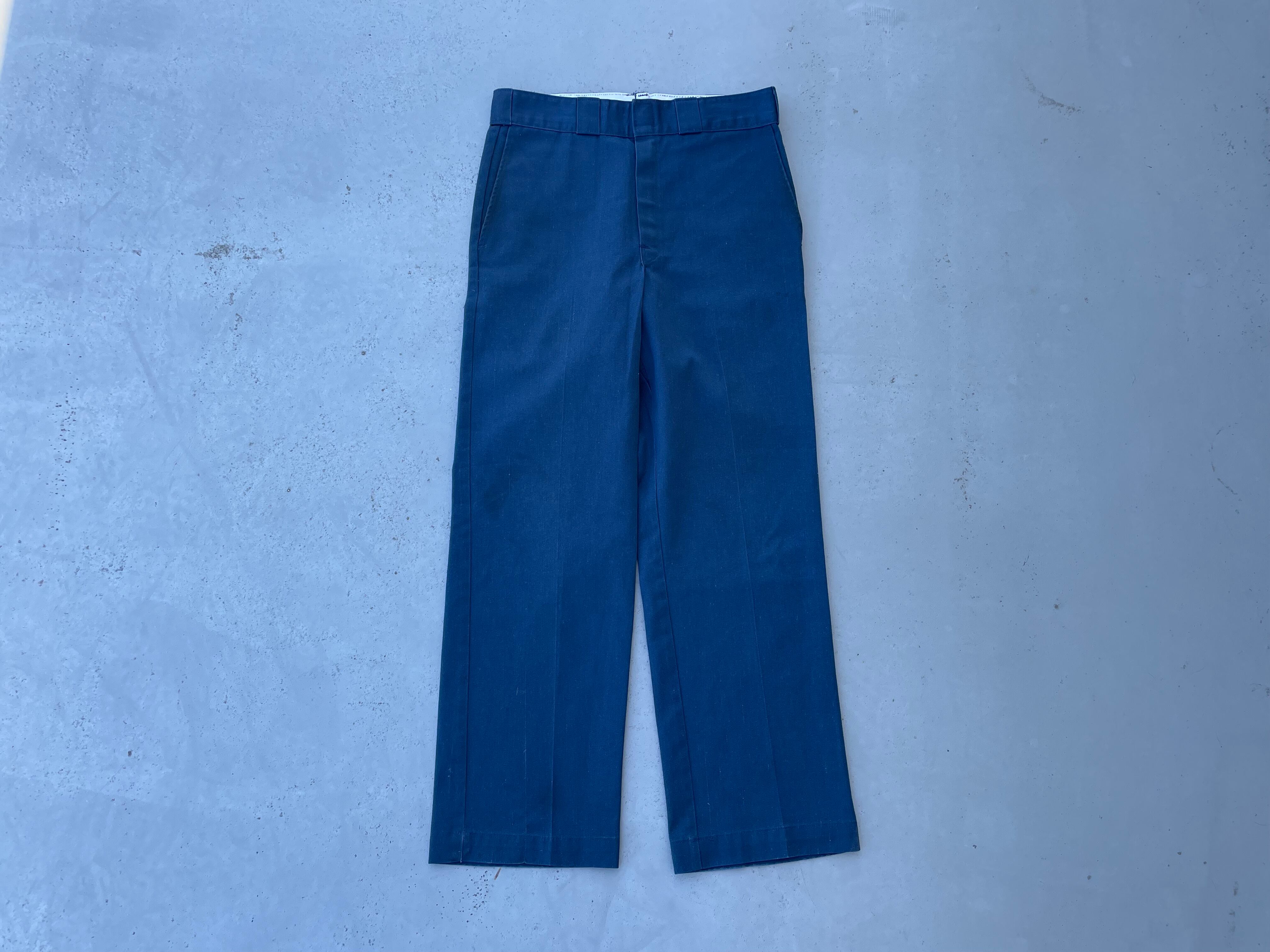 【商品詳細】ディッキーズのワークパンツ。カラーはネイビー。サイズは32×30。80年代頃USA製。ディッキーズの定番874ワークパンツ。こちらは怪しく色づくネイビーカラー。ワークパンツではあるもののカラーのお陰で野暮った過ぎず独特な雰囲気あります。サイズゴールデンかと。着用されている方もまだまだ少ない印象です。おすすめ。
