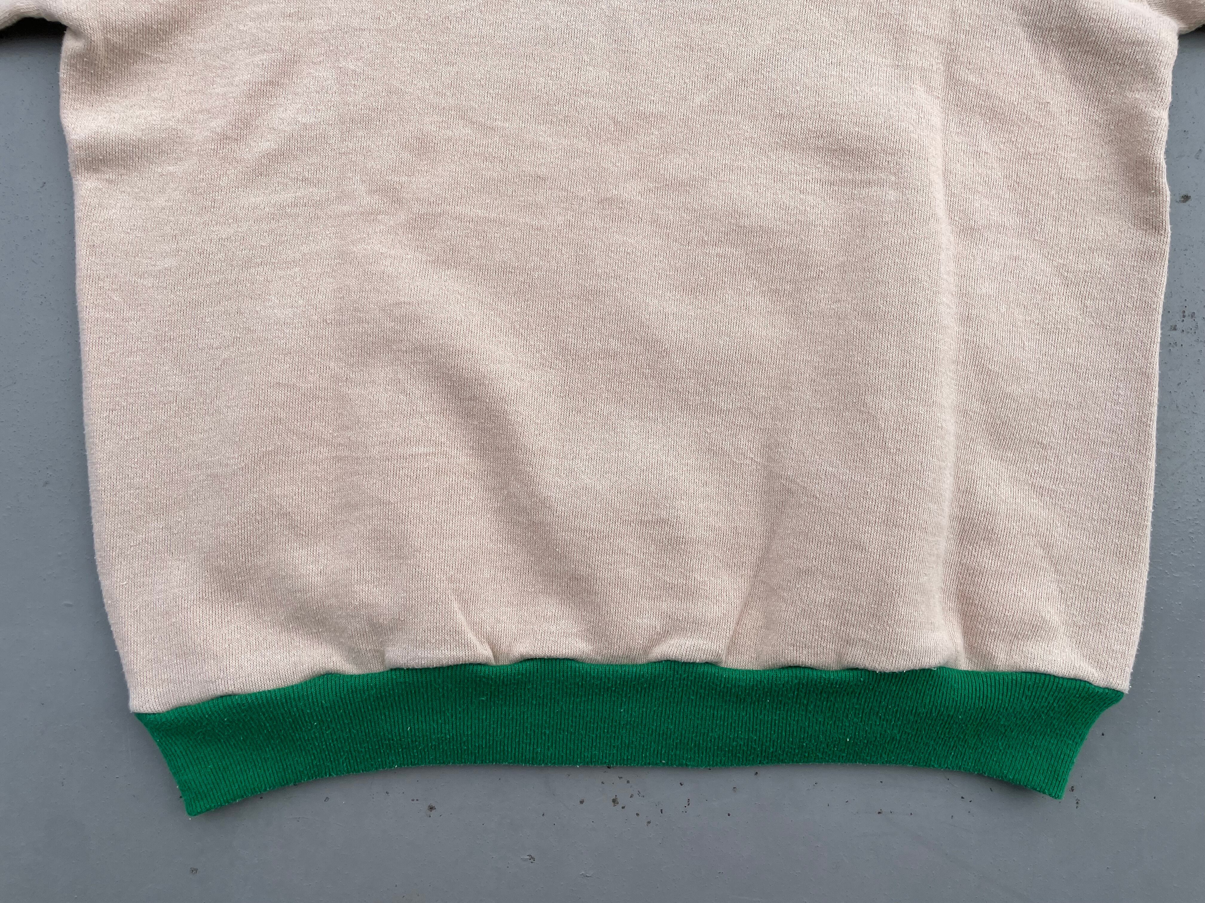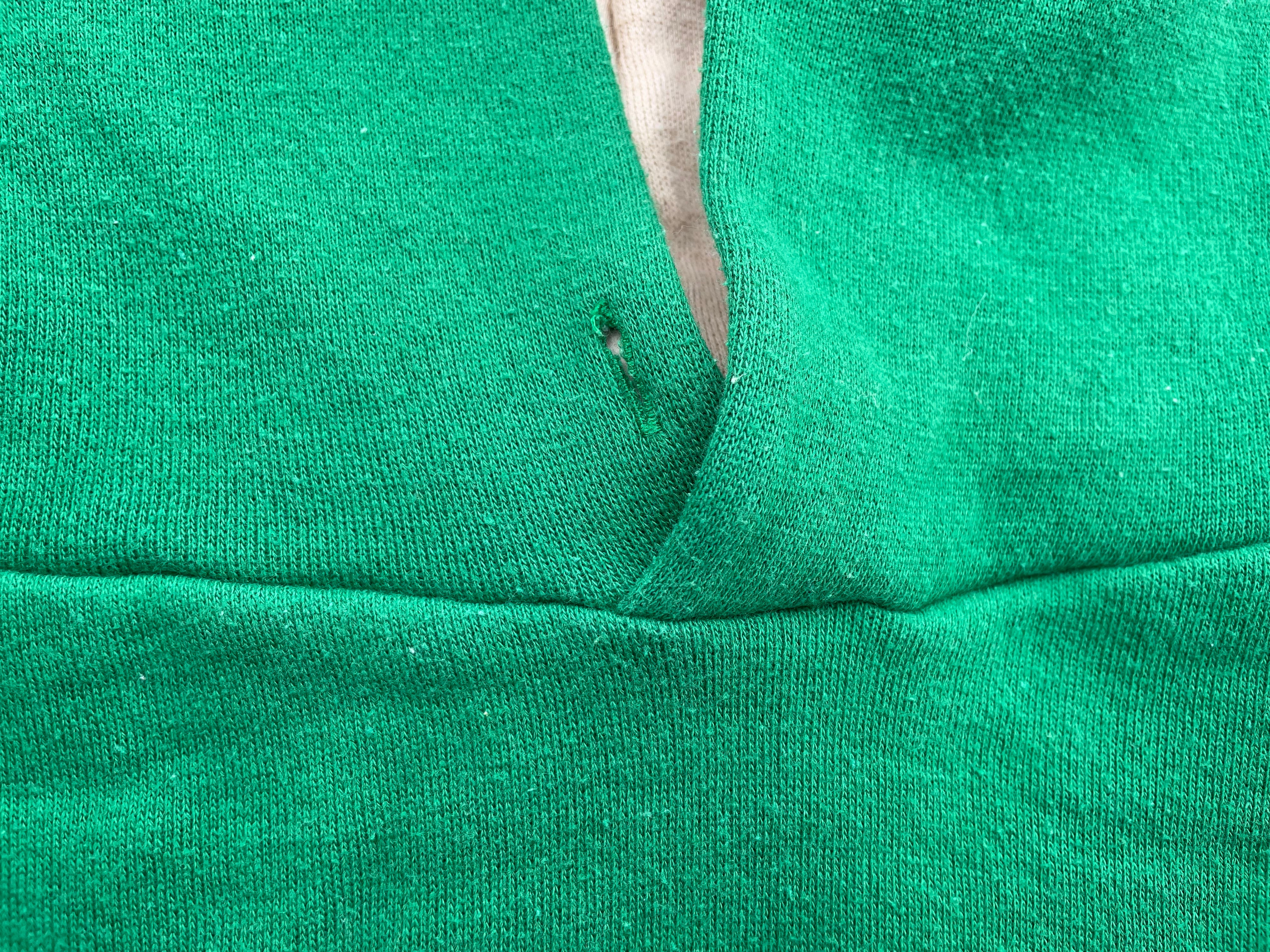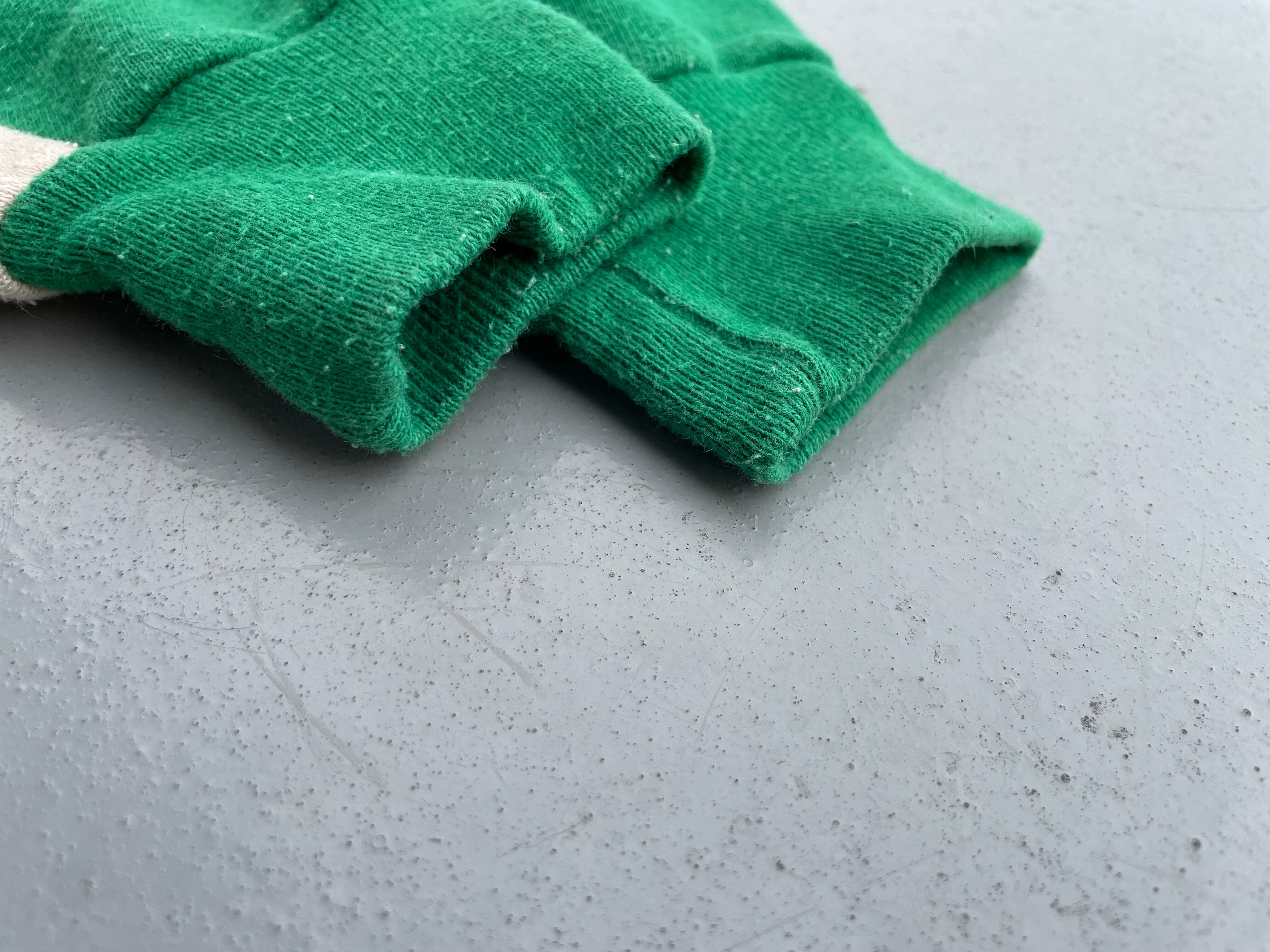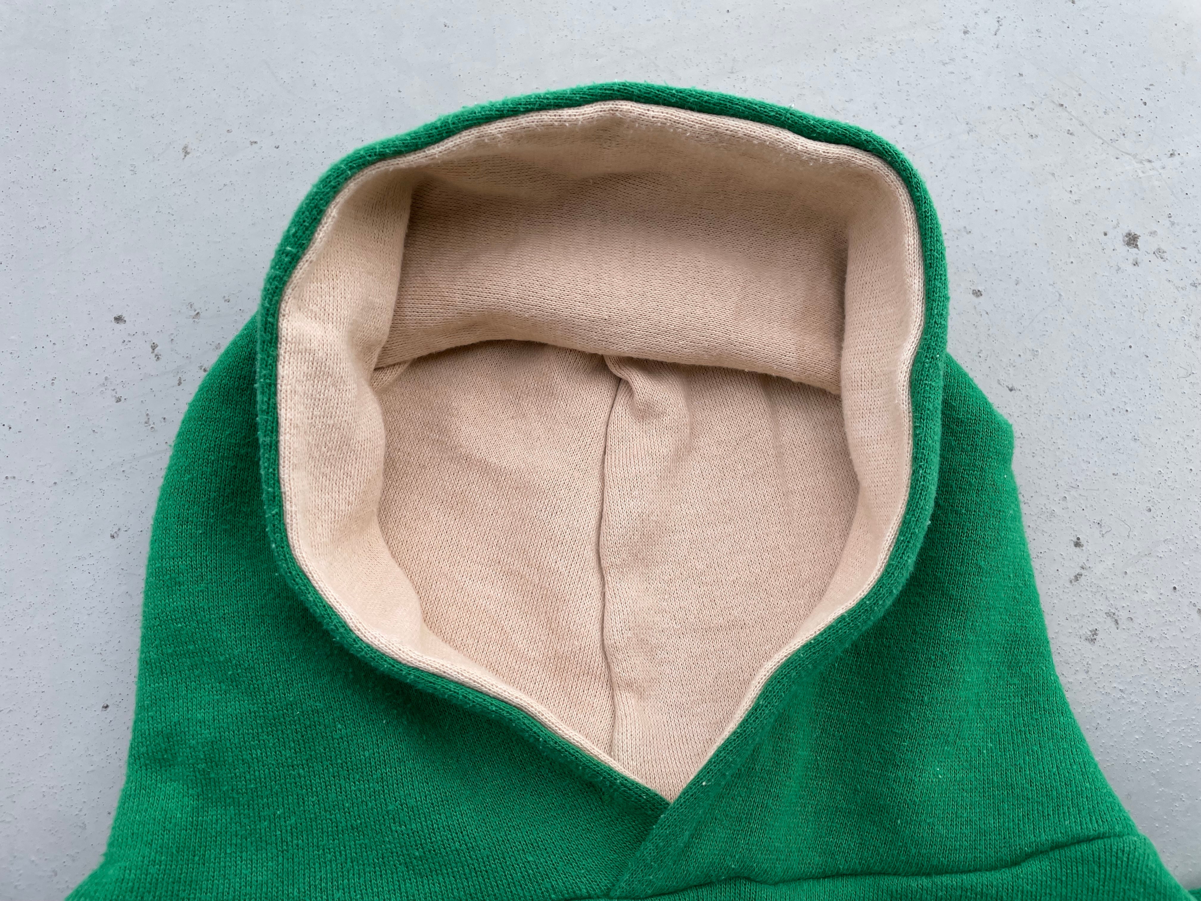 【商品詳細】ラッセルアスレチックのツートーン プルオーバーパーカー。サイズはM。カラーはグリーン×ベージュのツートーン。80年代USA製。ラッセル定番のスウェットパーカー。こちらは珍しいツートーンパターン。色使いがレトロな印象で古着とよく合います。地味にダブルフェイス仕様。着丈短め・身幅のある今どきシルエットで需要の高いディテール。希少な赤タグ。