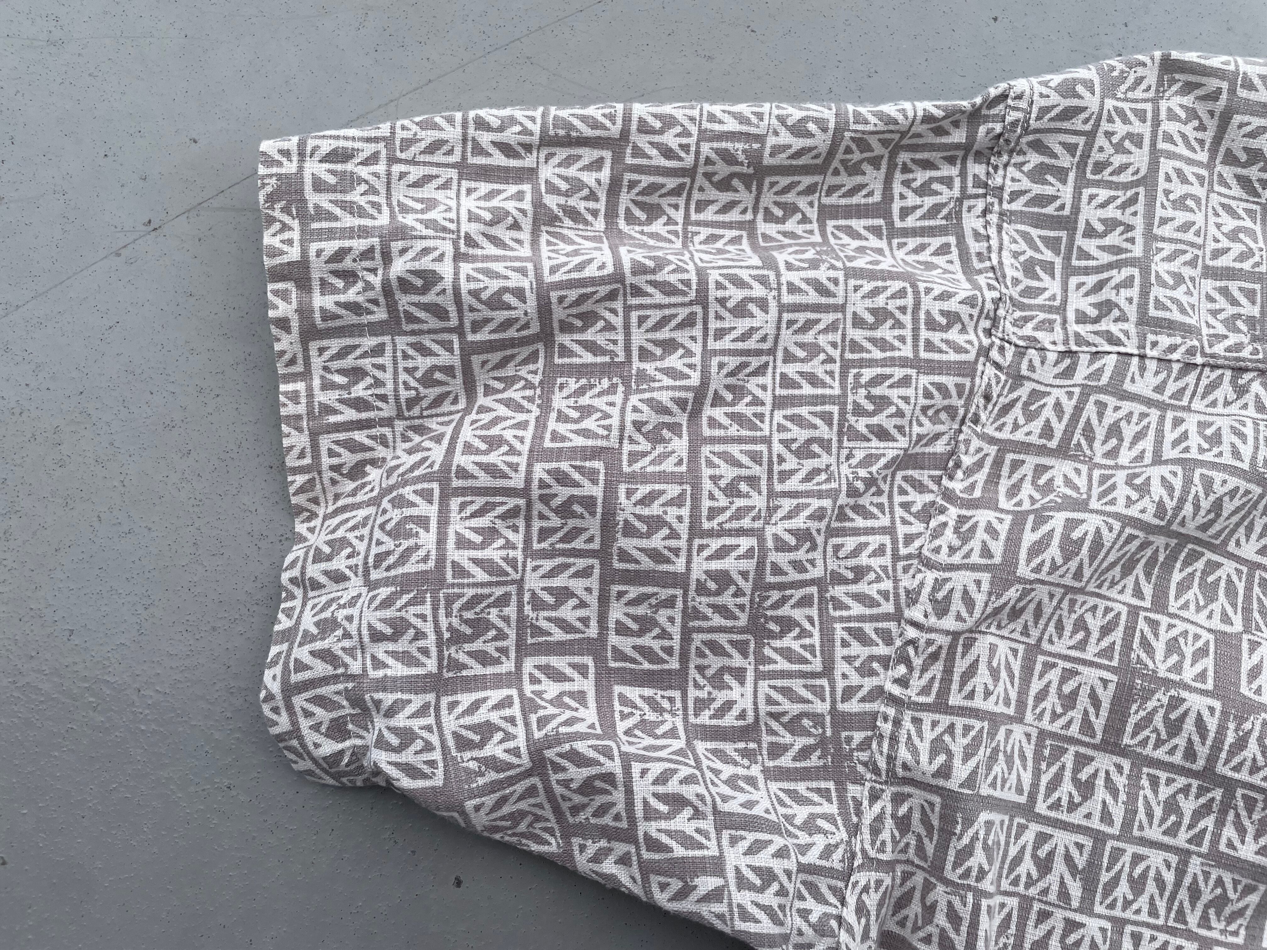 【商品詳細】パタゴニアのA/Cシャツ。カラーはグレージュの総柄パターン。サイズはS。00年タイ製。パタゴニア人気のA/Cシャツ。その中でも特に人気な総柄パターンの個体。幾何学的な模様でパタゴニアらしいルック。ボックスシルエットの今時なシルエット。サイズSですが大きめです。各所に色抜けのような斑点がございますがパッと見はあまり目立たないです。