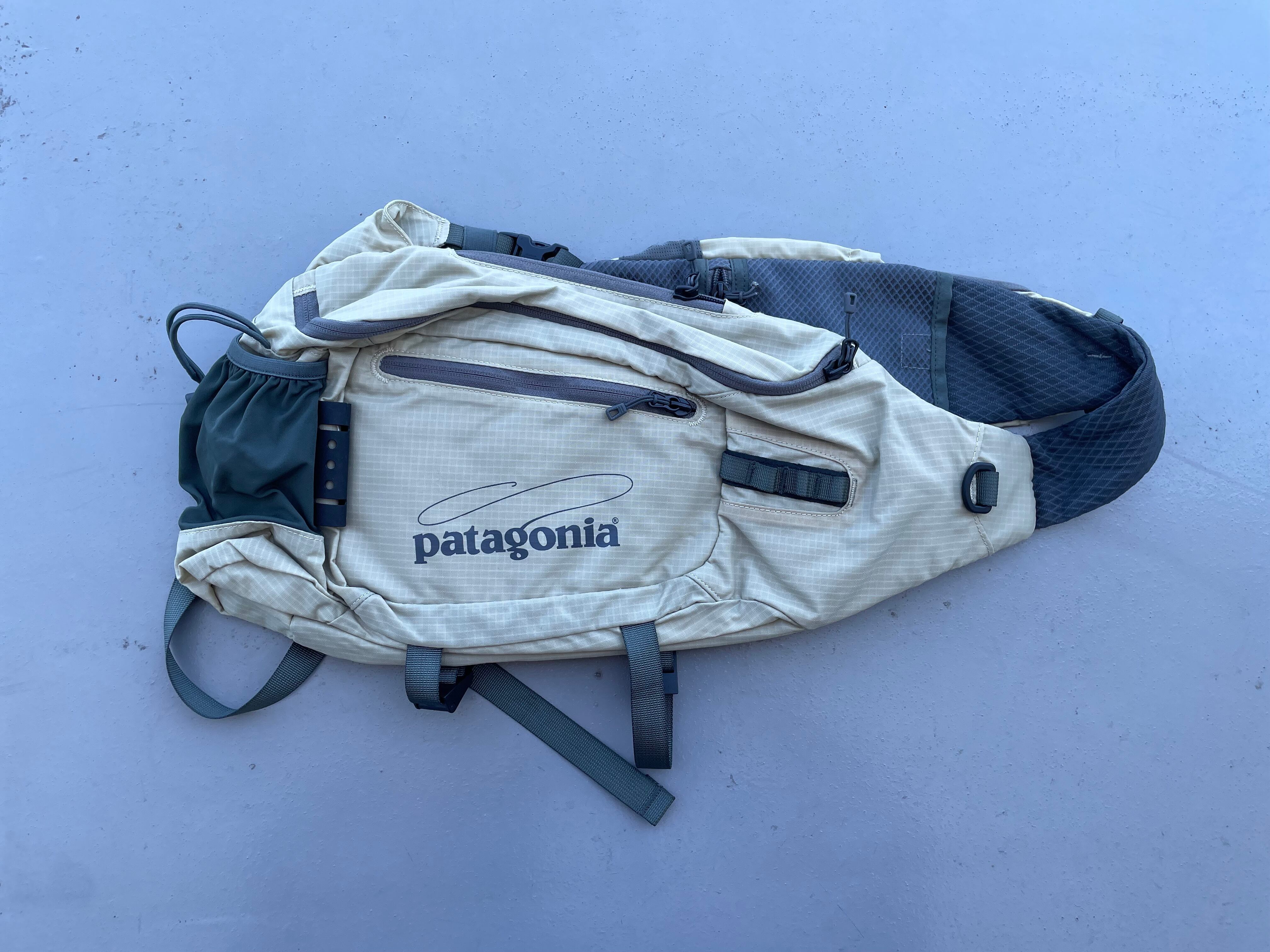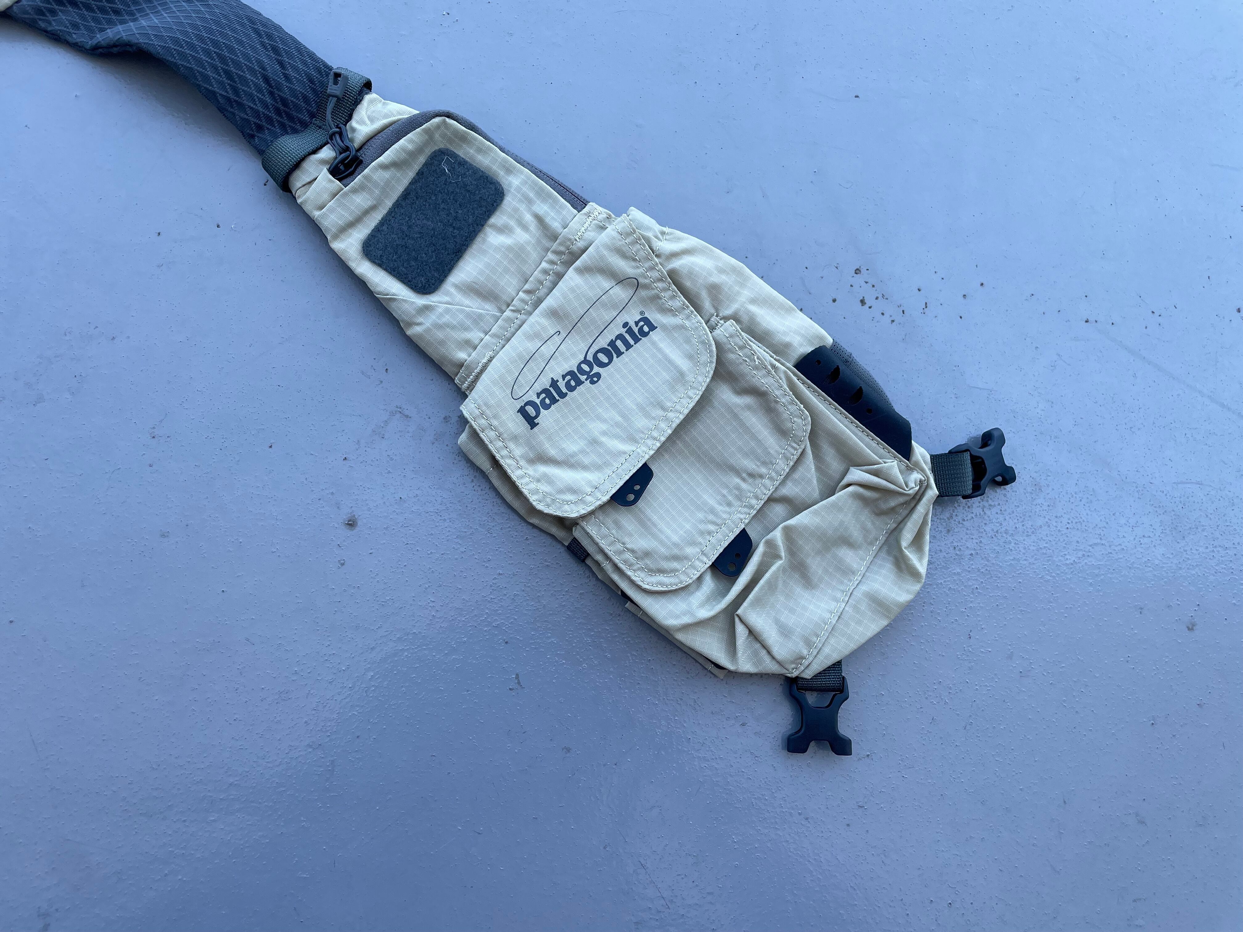 【商品詳細】パタゴニアのベストフロントスリング。カラーはエルキャップカーキ。15年ベトナム製。フィッシング用ベストとスリング・パックの2面使いの出来る利便性の高いショルダーバッグ。フィッシングバッグとしての作りなので収納力抜群で勿論タウンユースでも活躍するかと。個人的な意見ですがフィッシングラインでありながらカラーやリップストップ地等も相まってどこかMars感をあります。