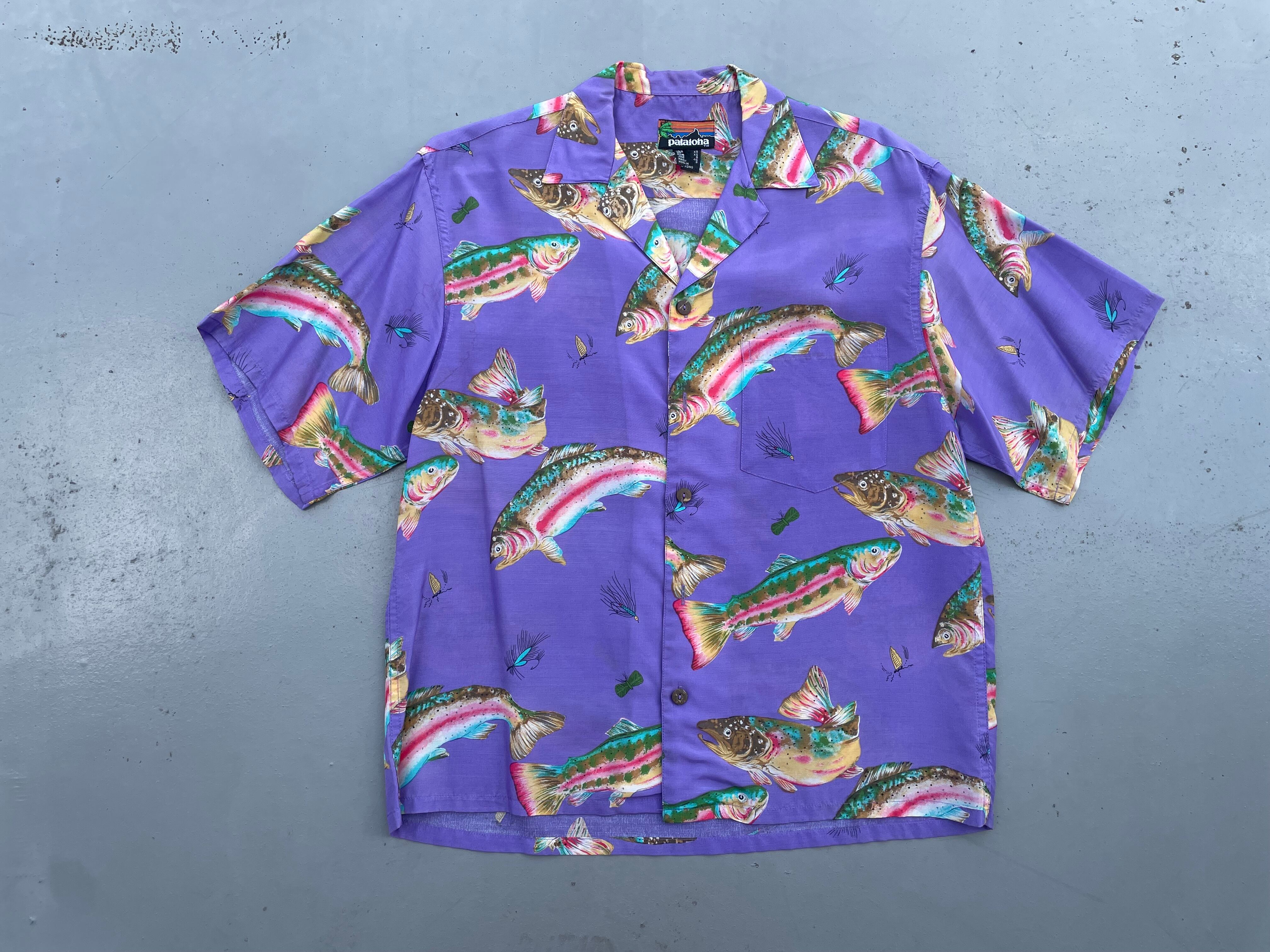 Patagonia S/S Aloha Shirt “TROUT" Ssize!! 80s