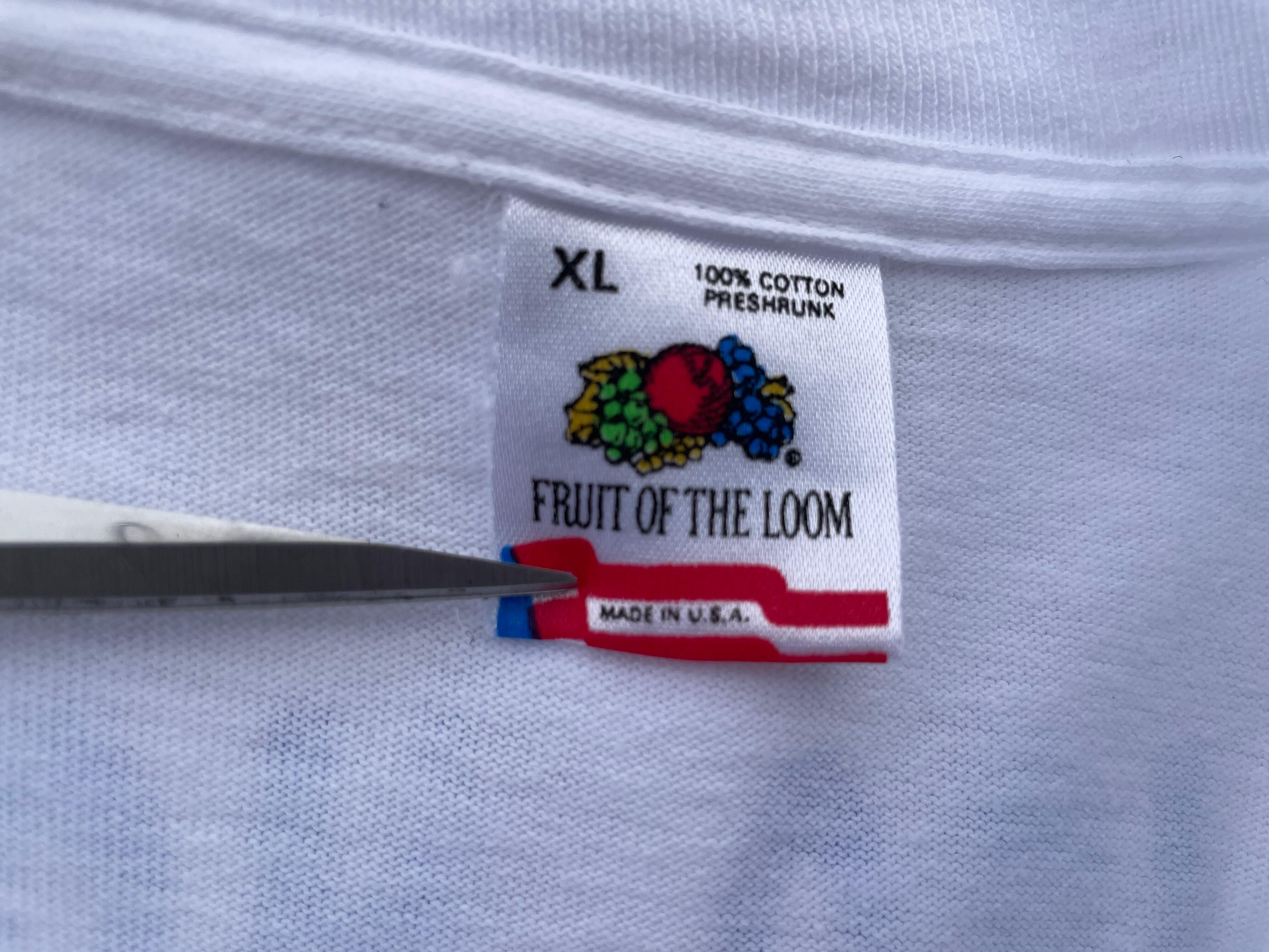【商品詳細】フルーツオブザルームの半袖Tシャツ。サイズはXL。カラーはホワイト。90年代USA製。裾・袖シングルステッチ。フロリダ州地域でのセックスセラピストの資格取得者向けに支給されたTシャツ。単純にデザインが良いのと指プリントはいつも気になってしまいます。おすすめです。