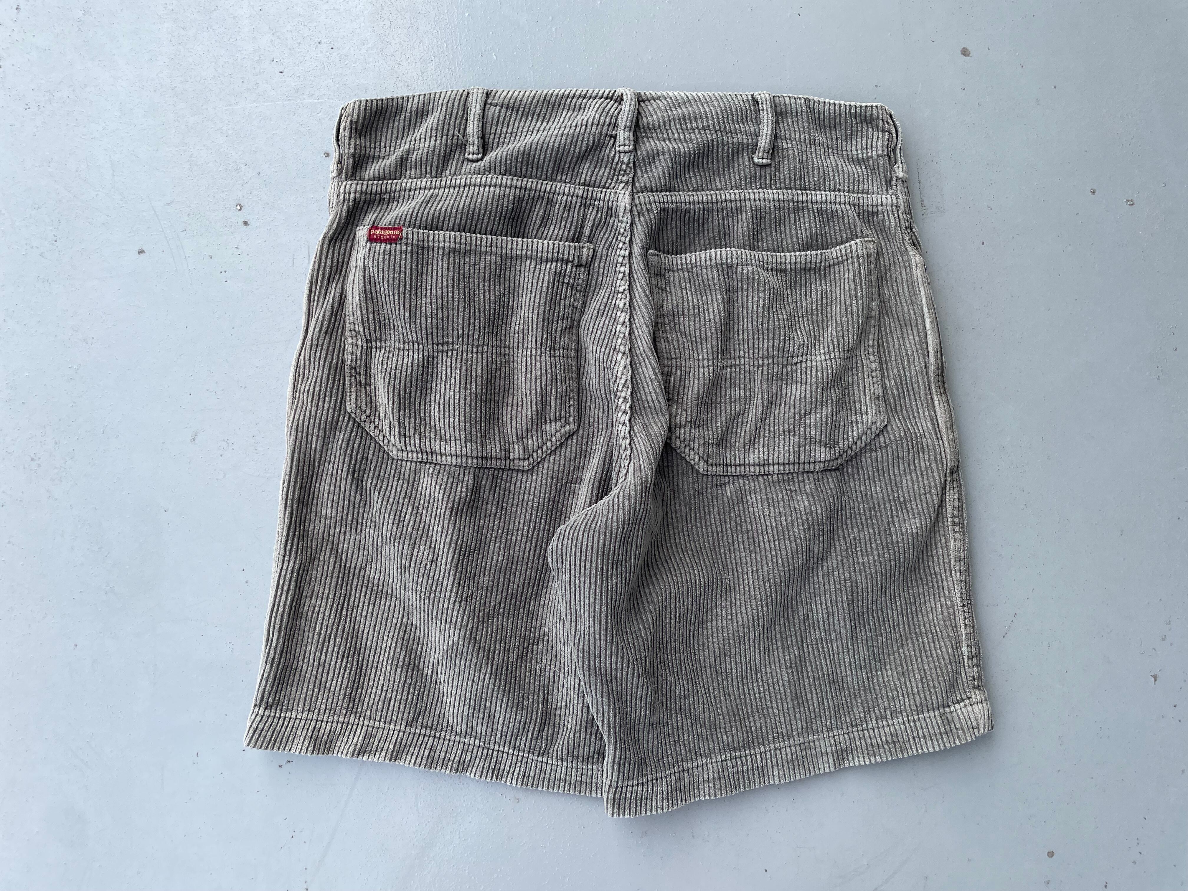 【商品詳細】パタゴニアのコーデュロイショートパンツ。カラーはアッシュカーキ。98年トルコ製。太畝コーデュロイの作りながらとショートパンツという斬新なデザインの一本。ワイドなシルエットと大きめサイズで今っぽくご着用いただけそうです。雰囲気のあるアッシュカーキが印象的◎トルコ製パタゴニアはデザイン製に富んだ物が多いですね。