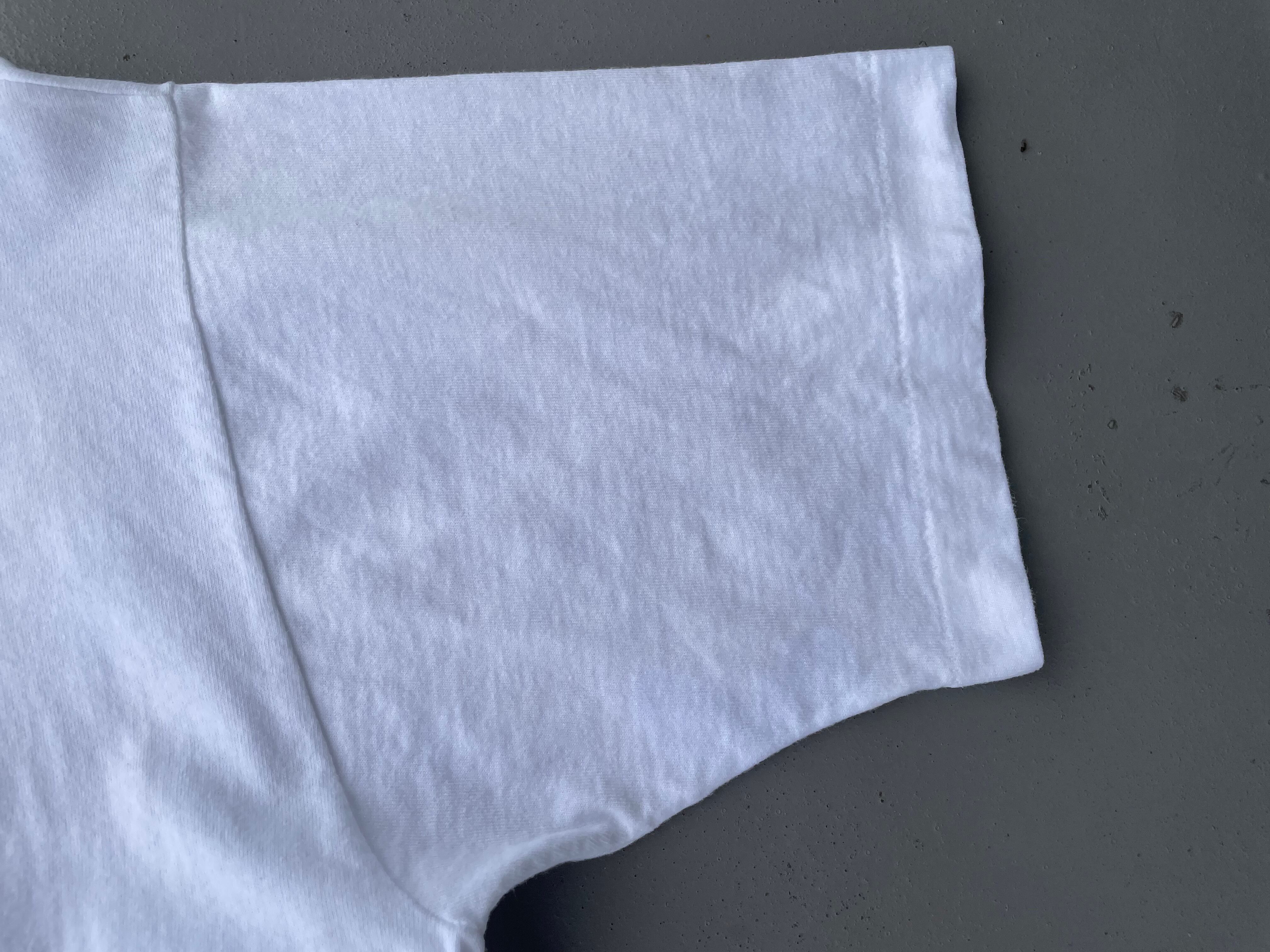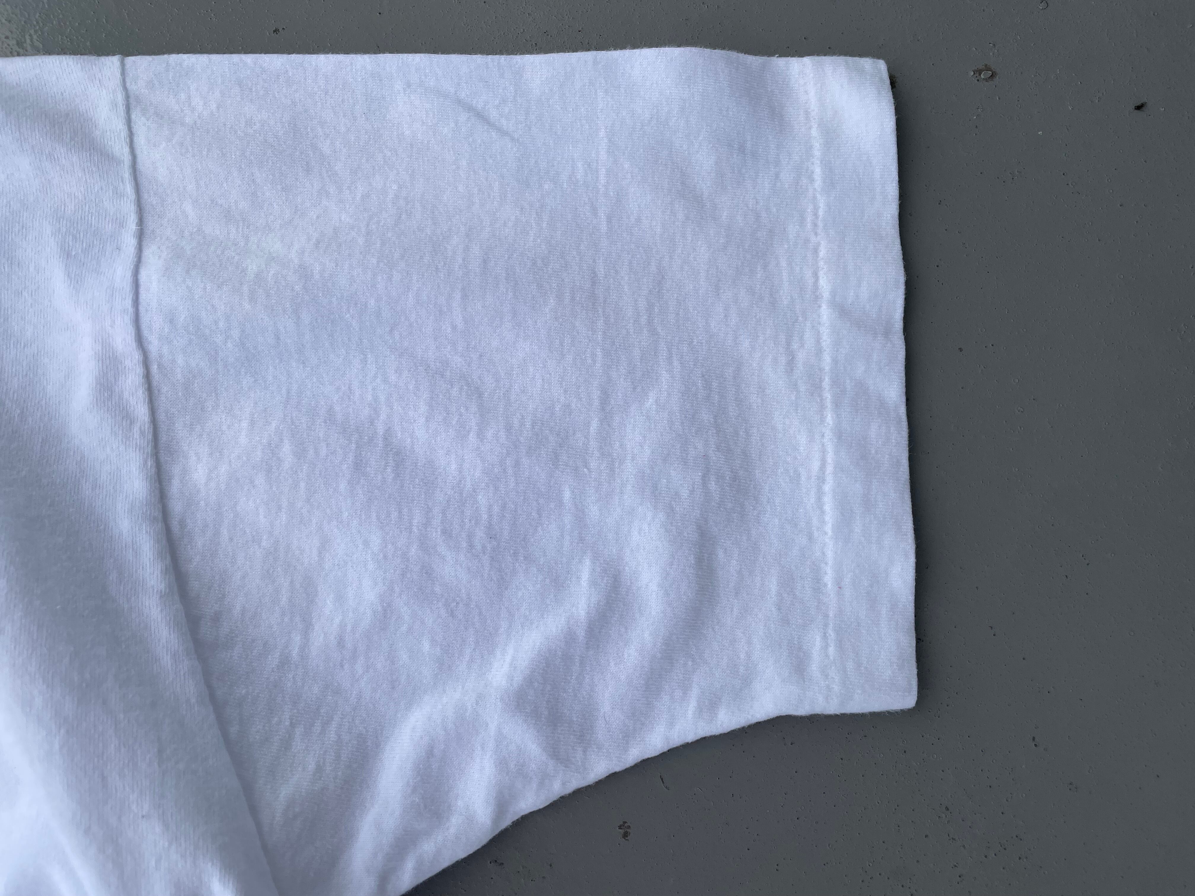 【商品詳細】フルーツオブザルームの半袖Tシャツ。サイズはXL。カラーはホワイト。90年代ジャマイカ製。裾・袖シングルステッチ。フルーツボディにvintageTシャツ定番のボディメーカーgiantのロゴがプリントされた珍しい個体。サイズもしっかり大きめで需要高めのディテールかと。こんなのあるんですね。