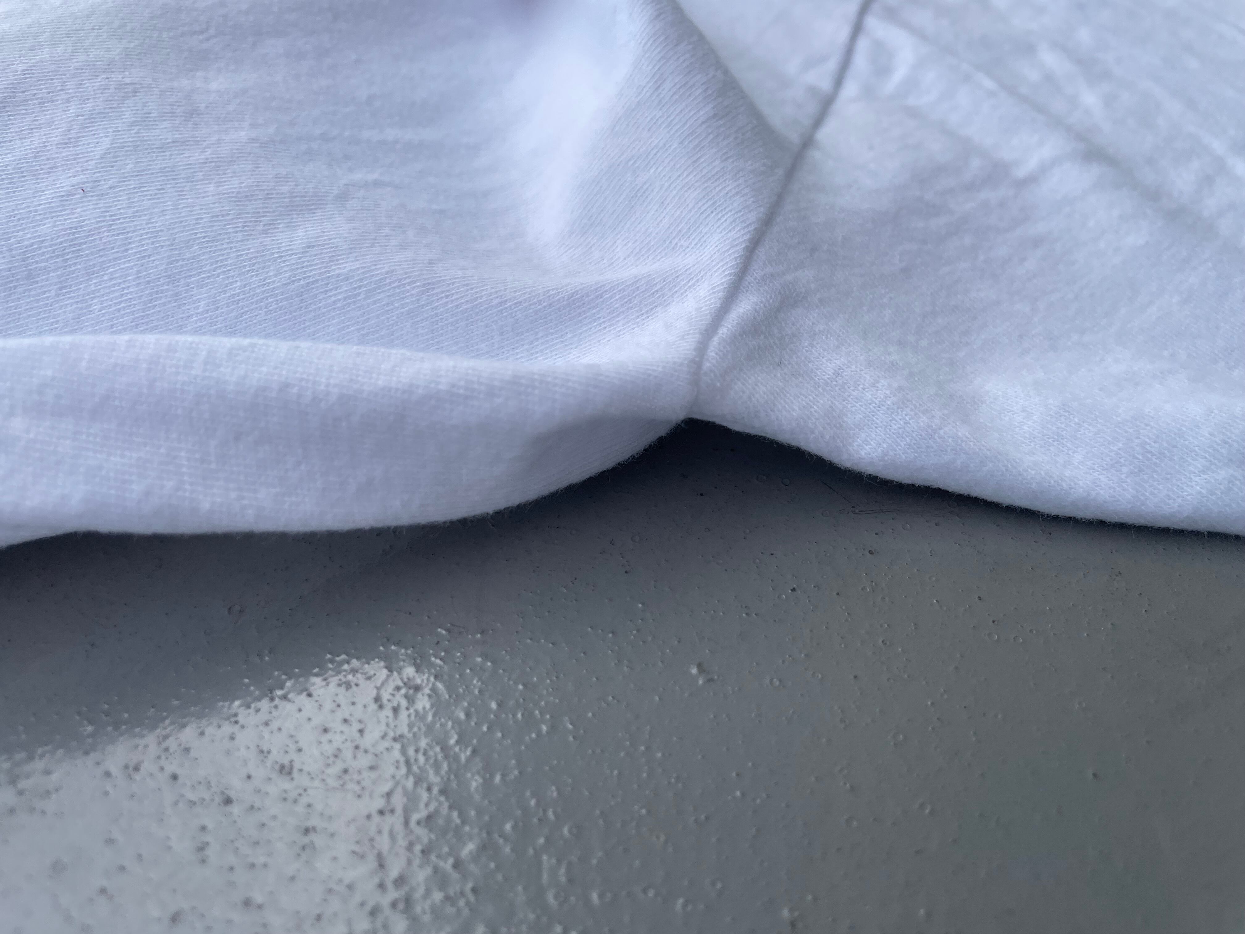 【商品詳細】ヘインズの半袖Tシャツ。サイズはXL。カラーはホワイト。90年代メキシコ製。裾・袖シングルステッチ。企業Tの中でもとりわけ出回りの少ない印象のスターバックスTシャツ。背面には”AT HOME WITH ESPRESSO”とプリントされており、当時家庭向けに商品を出した際の販促品だと思います。優しいタッチながらバイカラーのレトロなカラーリングが洒落た一着。この辺集めても面白いですね。