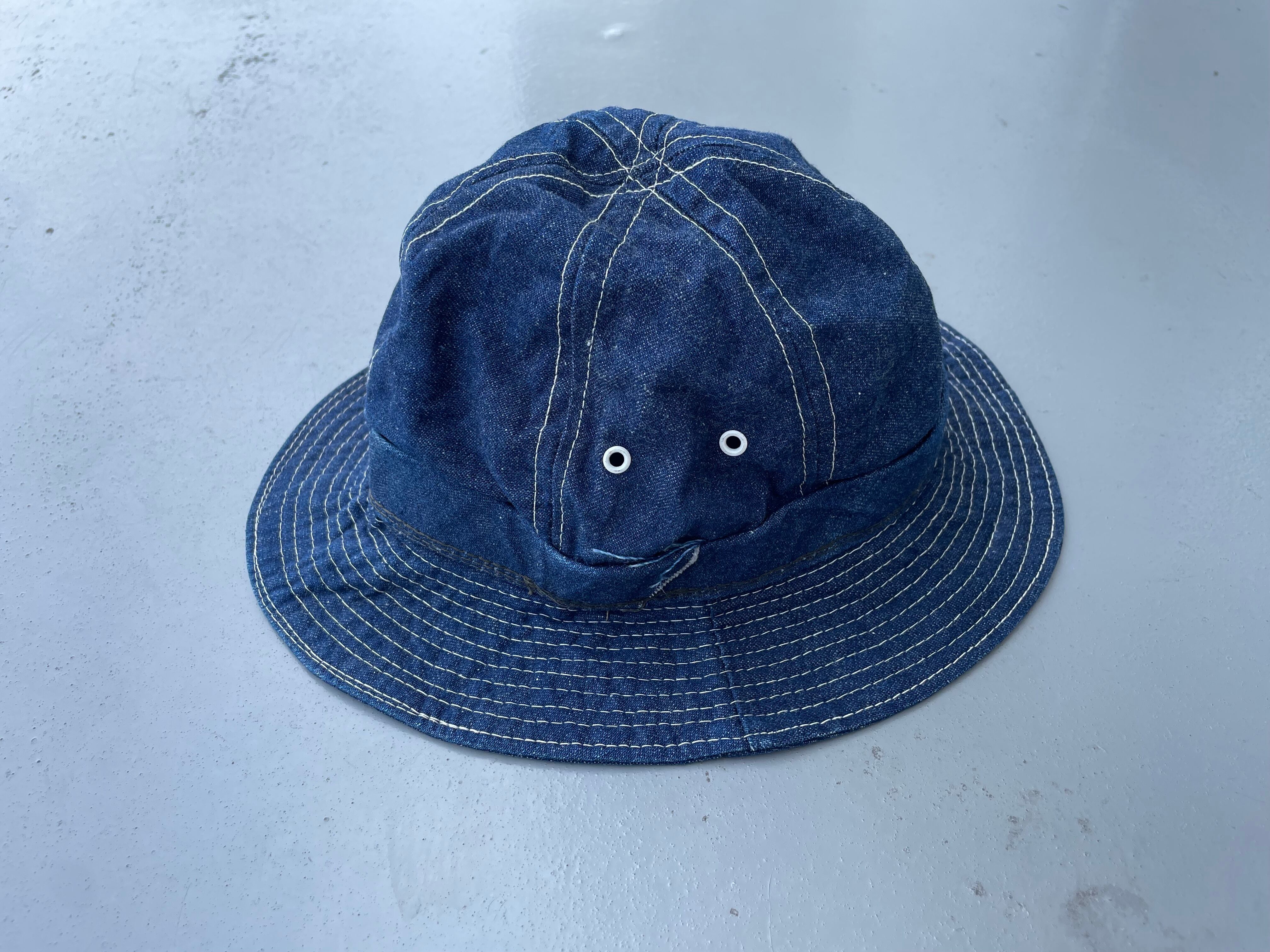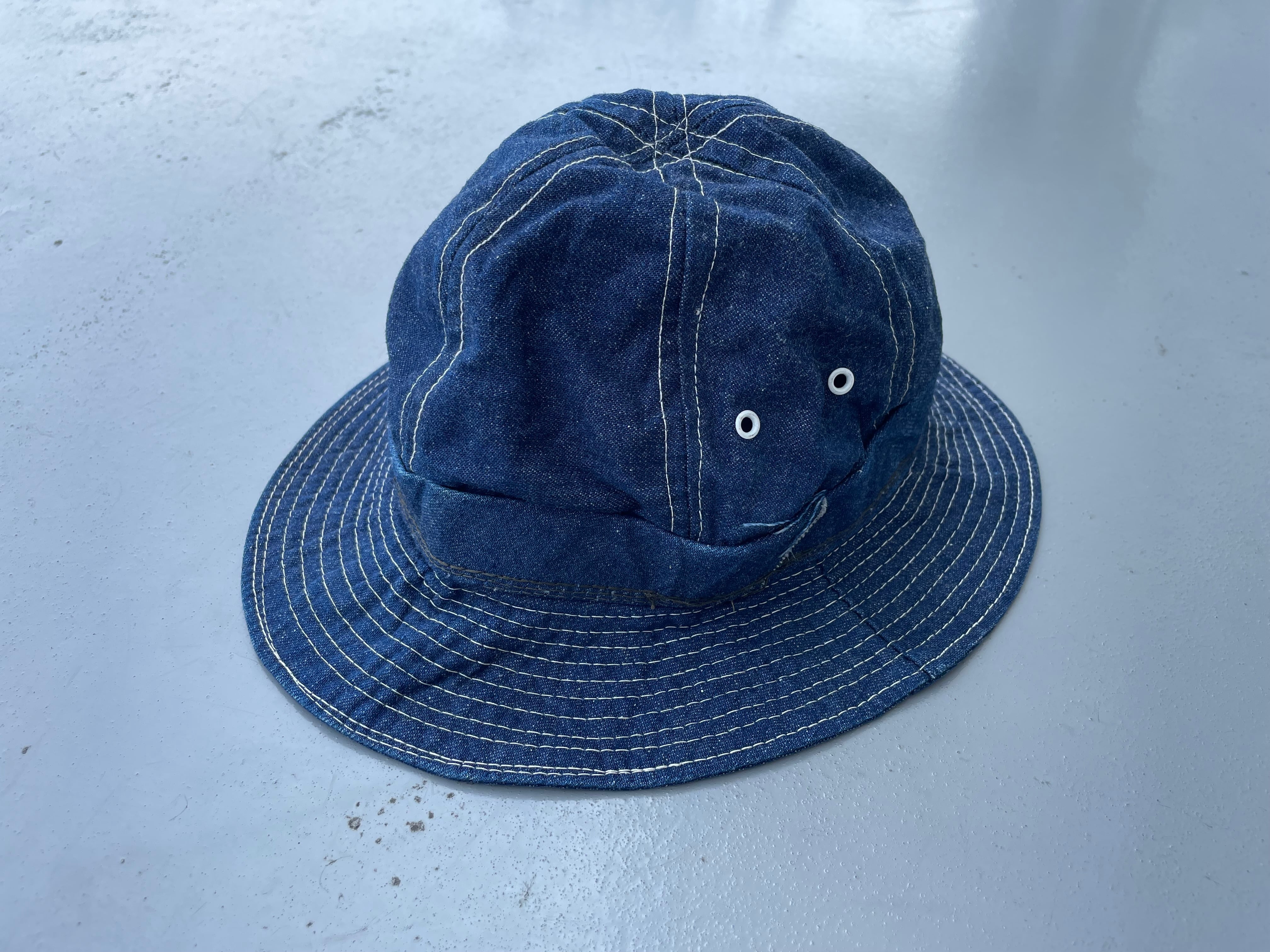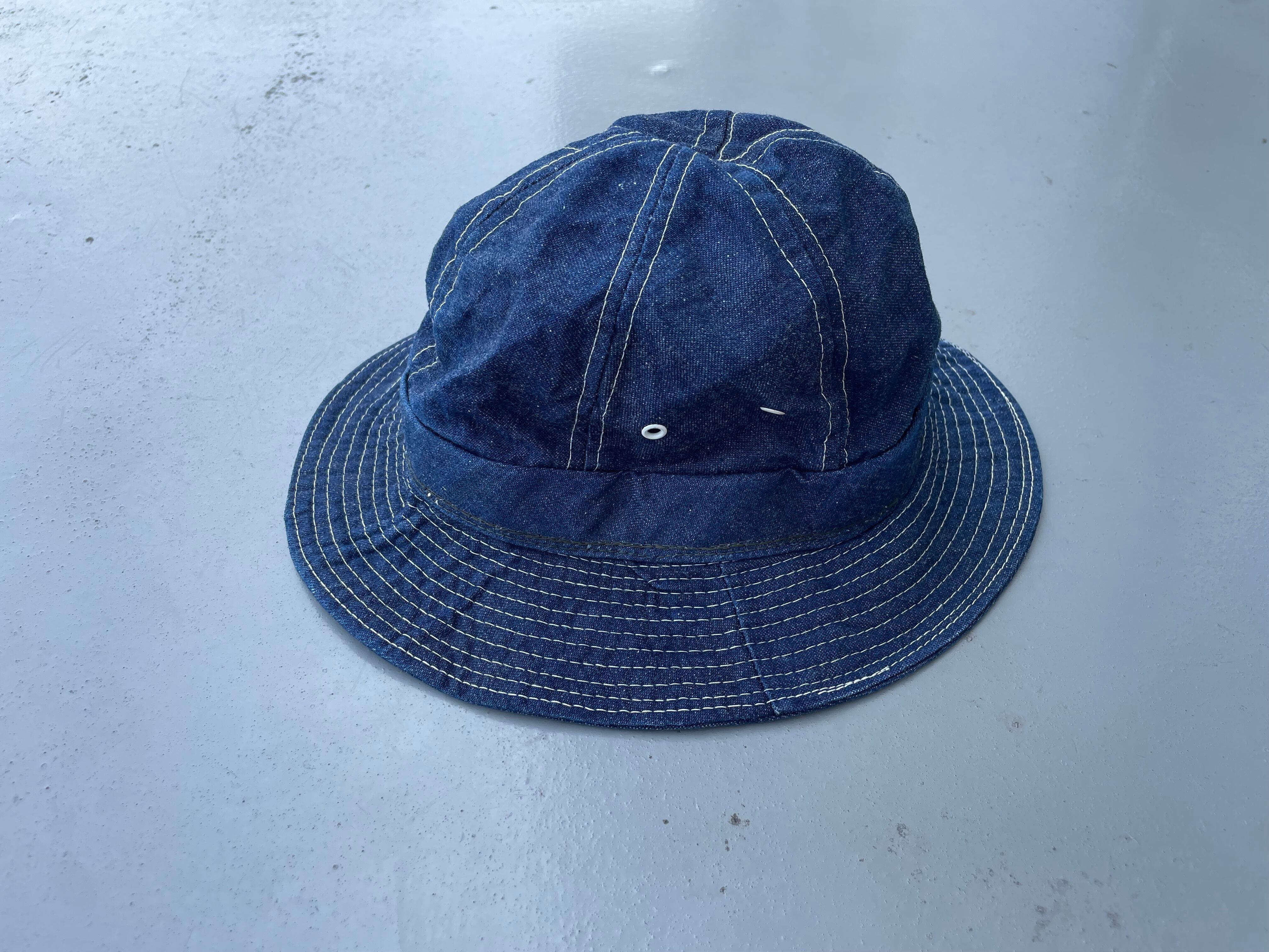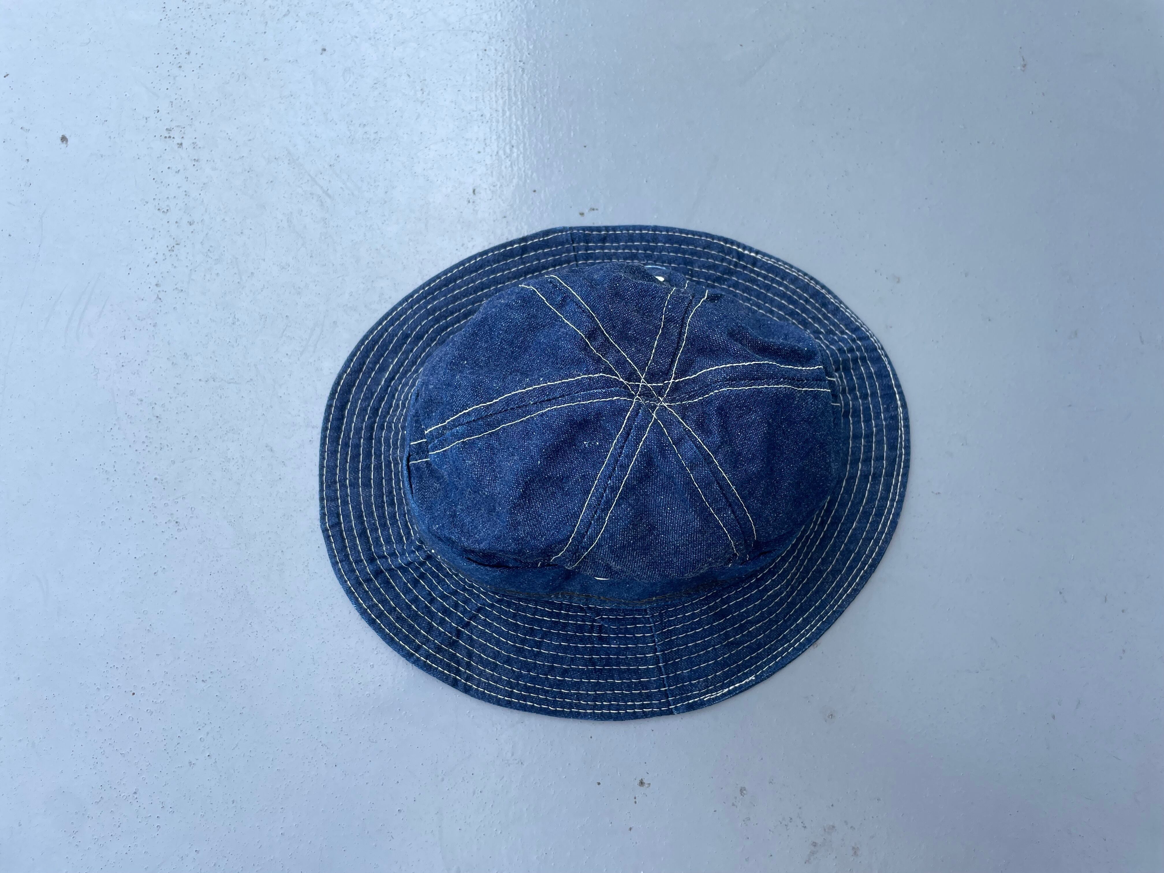【商品詳細】UNKNOWNのデニムハット。カラーはインディゴ。M37のような佇まいの本個体。詳細不明ですがしっかりした作りで色もしっかり残っており状態は悪くないと思います。サイズ合う方おすすめ。