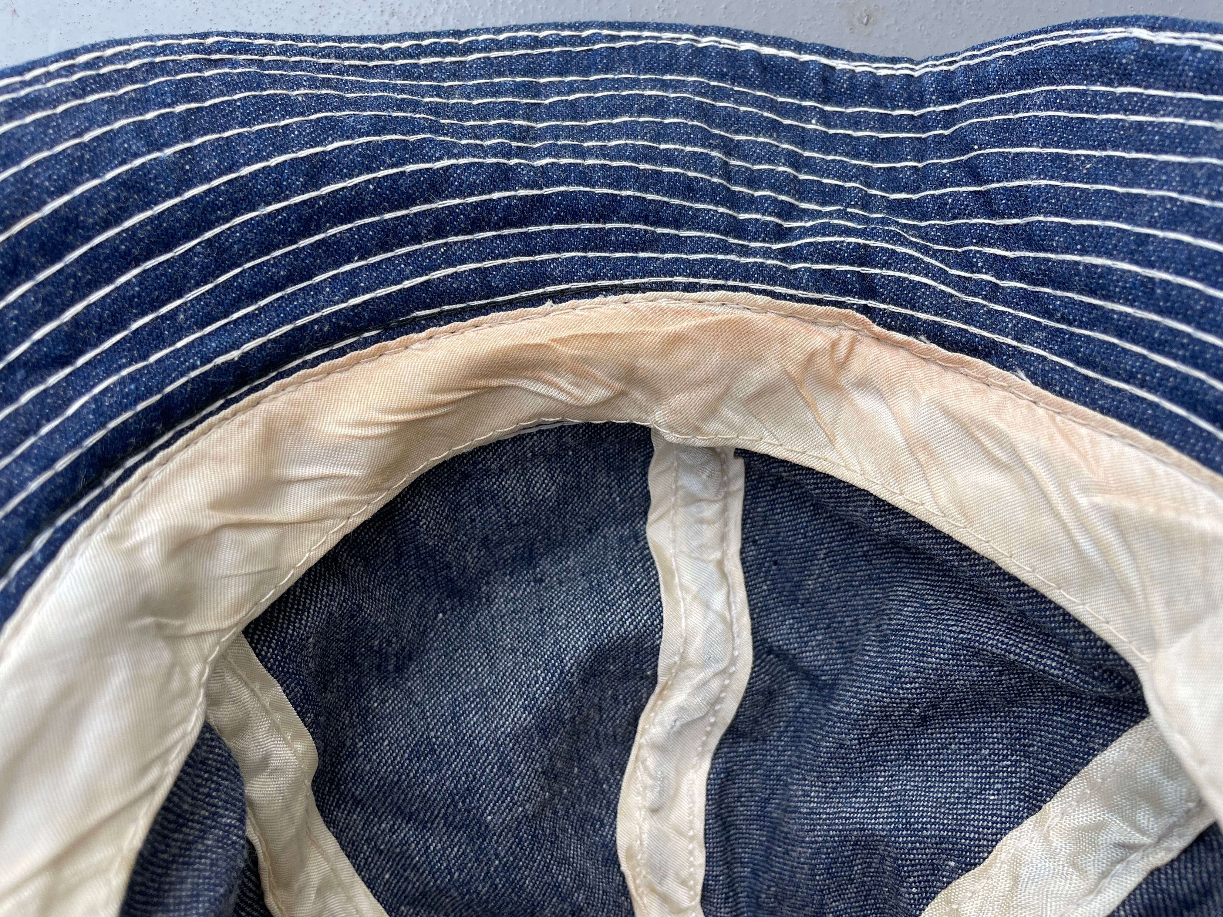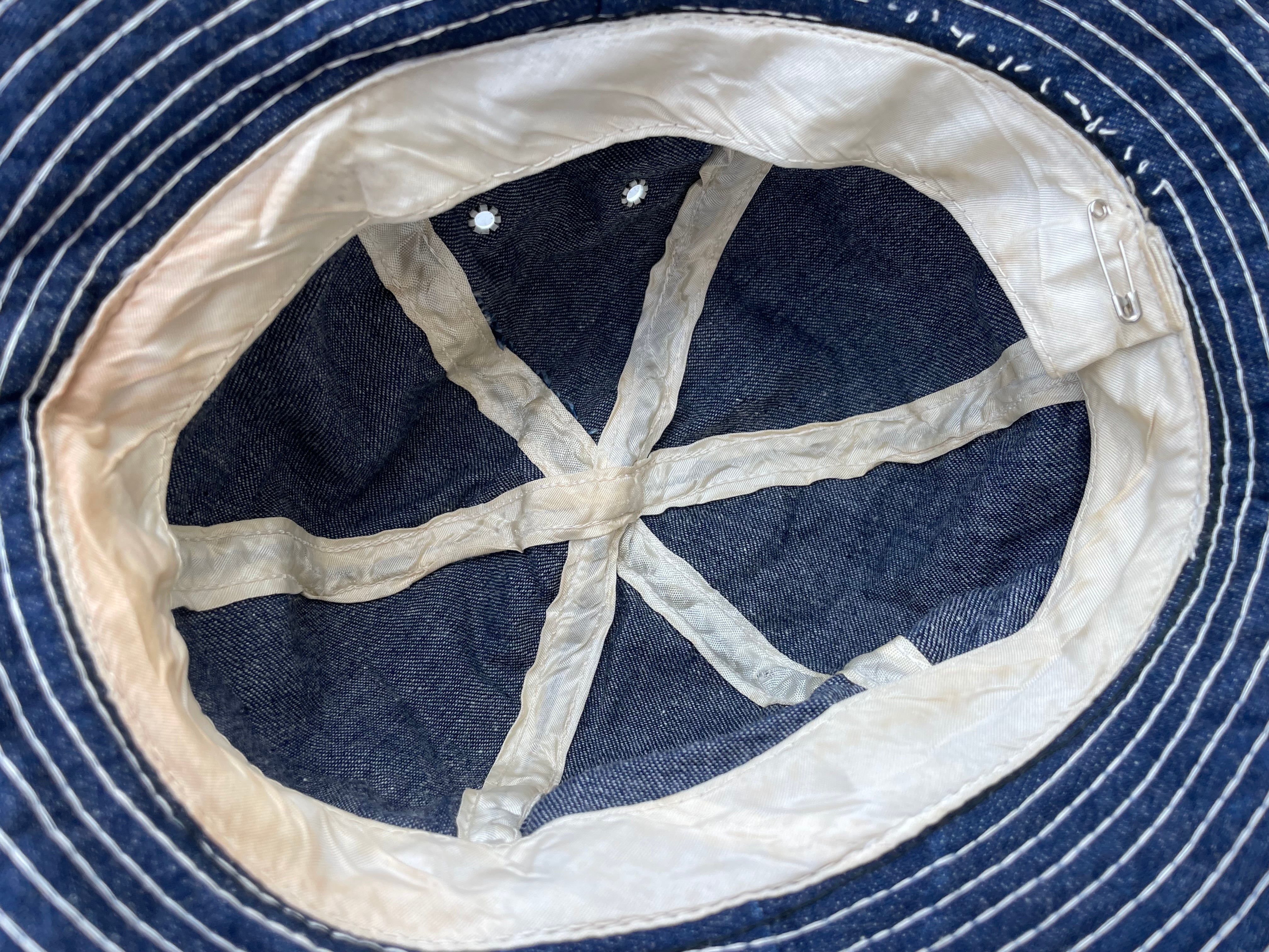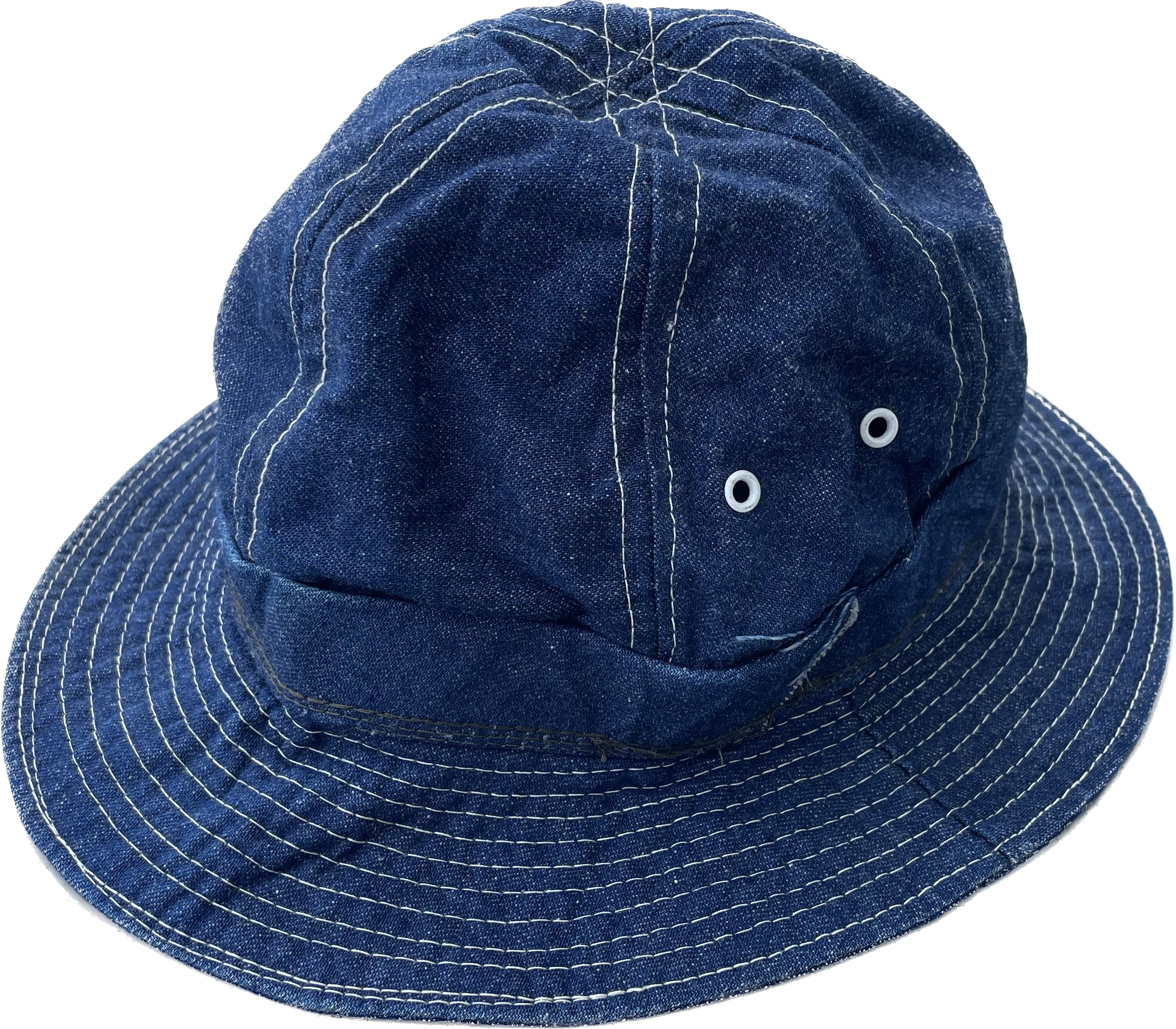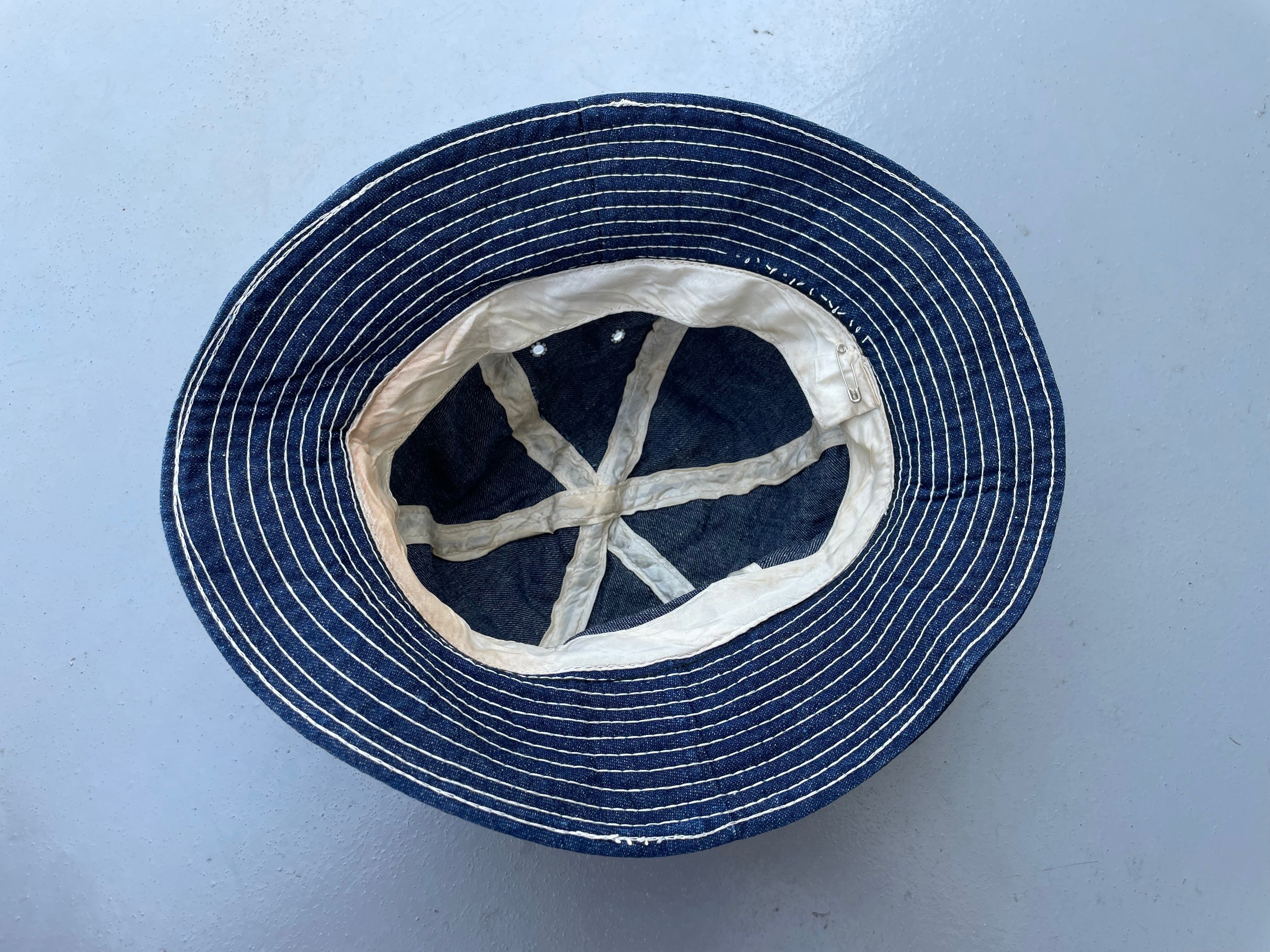 【商品詳細】UNKNOWNのデニムハット。カラーはインディゴ。M37のような佇まいの本個体。詳細不明ですがしっかりした作りで色もしっかり残っており状態は悪くないと思います。サイズ合う方おすすめ。