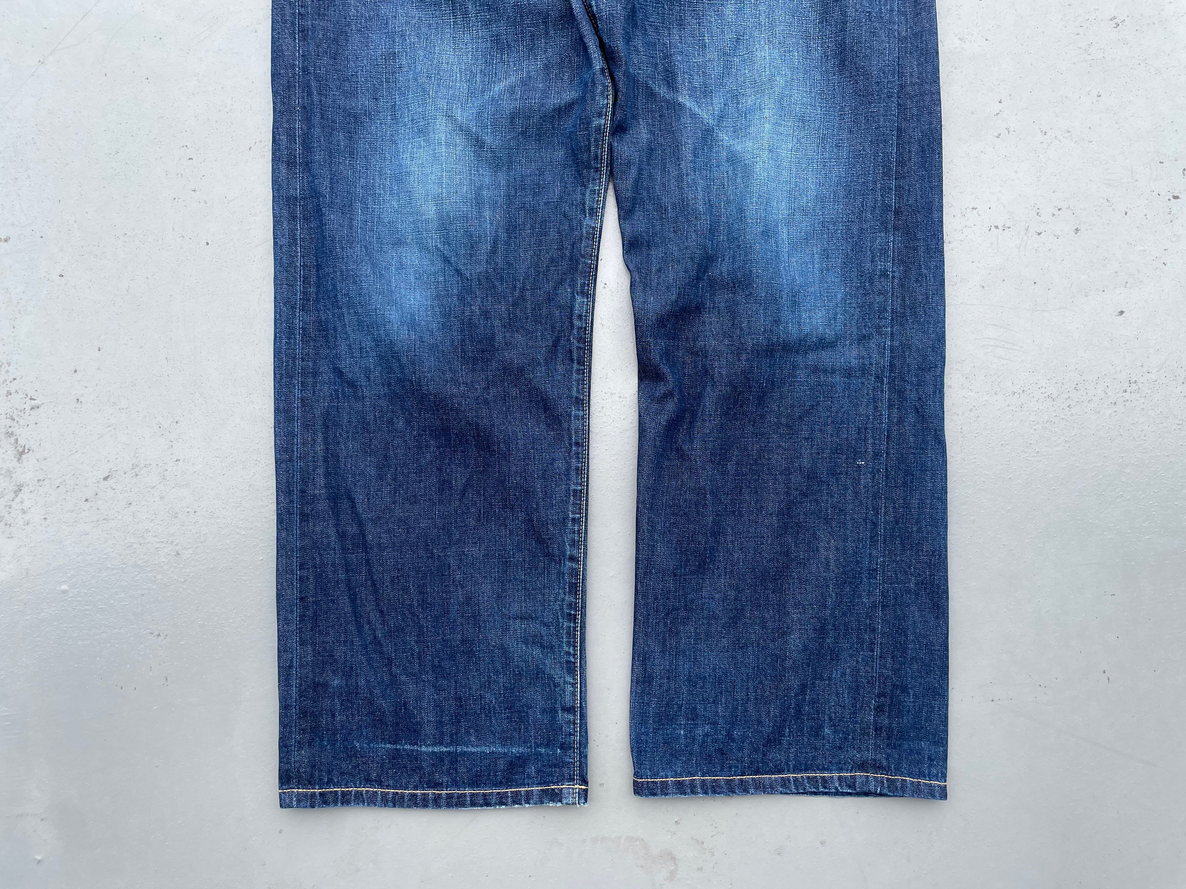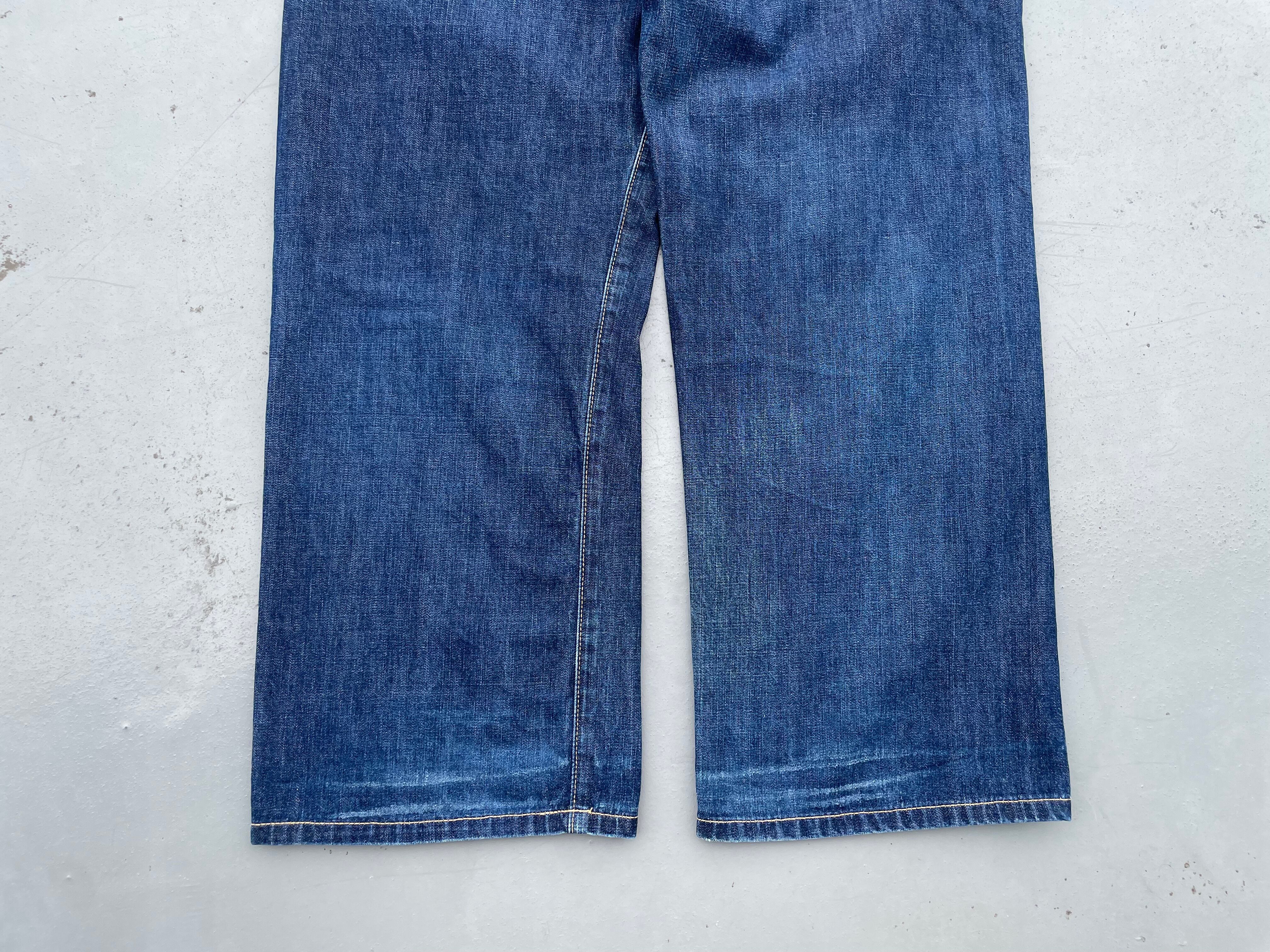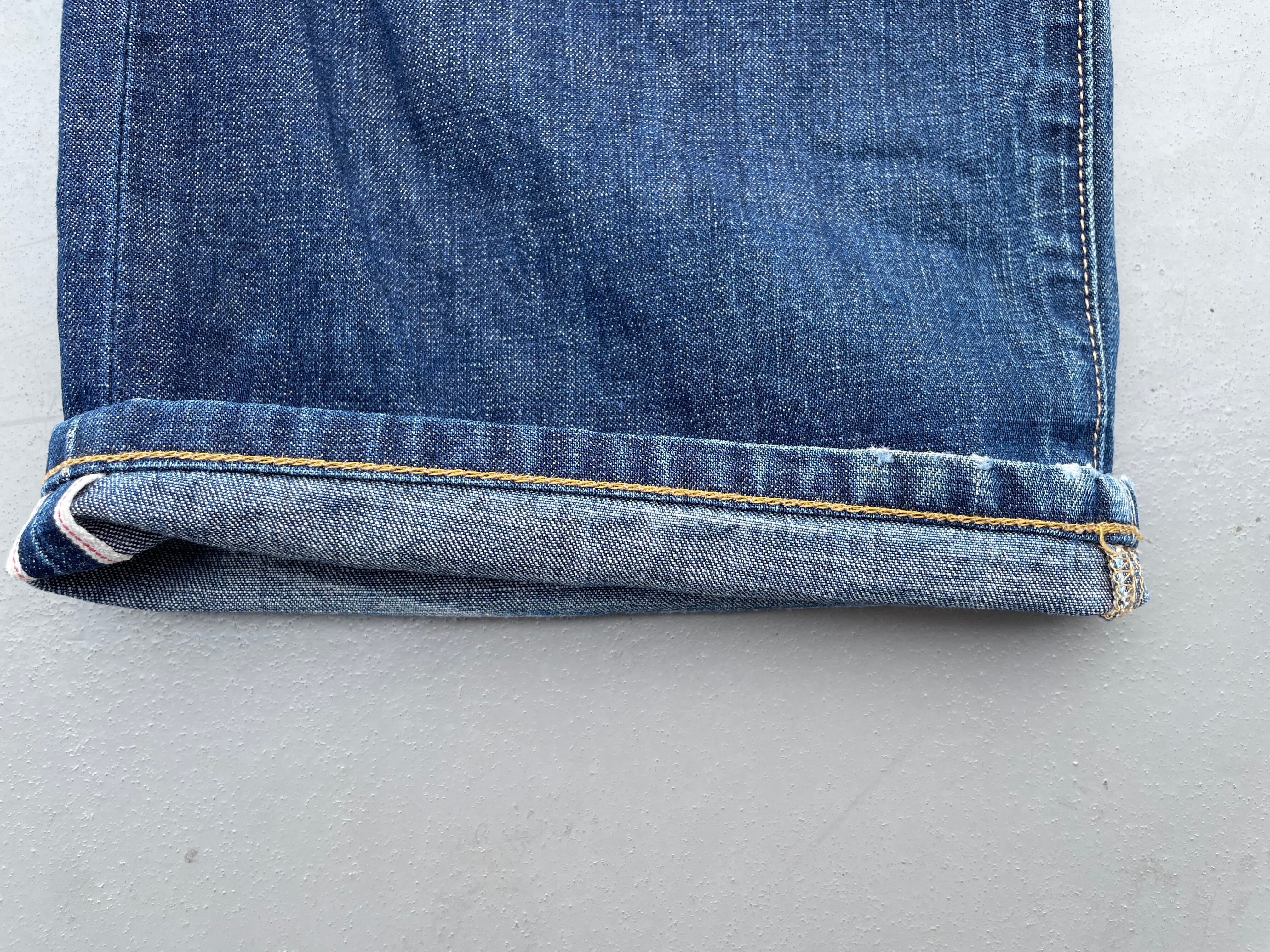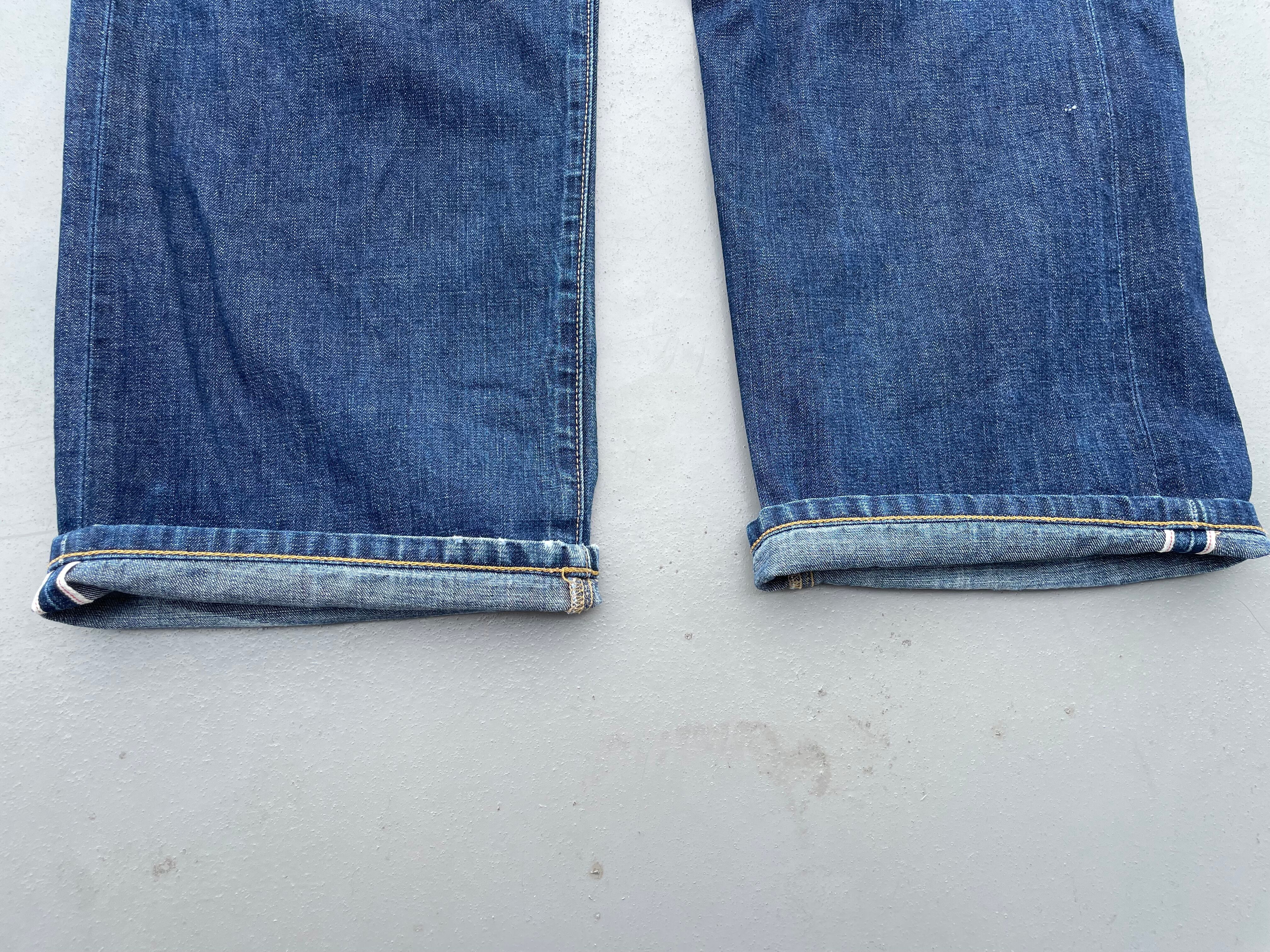 【商品詳細】シュプリームのデニムパンツ。カラーはブルー。サイズは32。90年代USA製。赤耳付。人気のオールドシュプリームのデニムパンツ。ストンと落ちる綺麗なシルエットですがどこかリラックス感のある印象のディテール◎太もも〜膝付近が良い塩梅にエイジングしており雰囲気あります。全体的に色も残っているのでこれから色落ちも楽しめると思います。おすすめ。