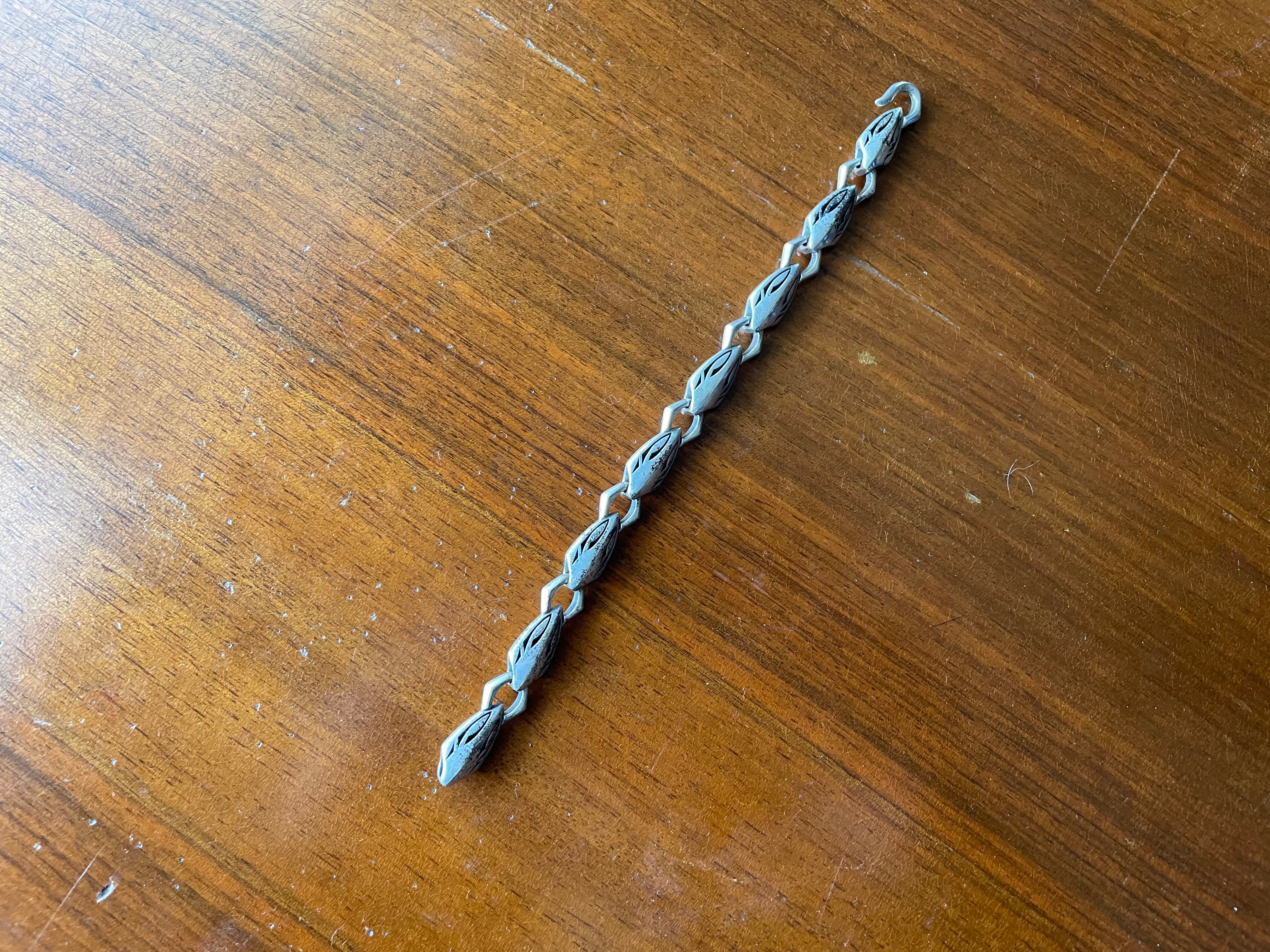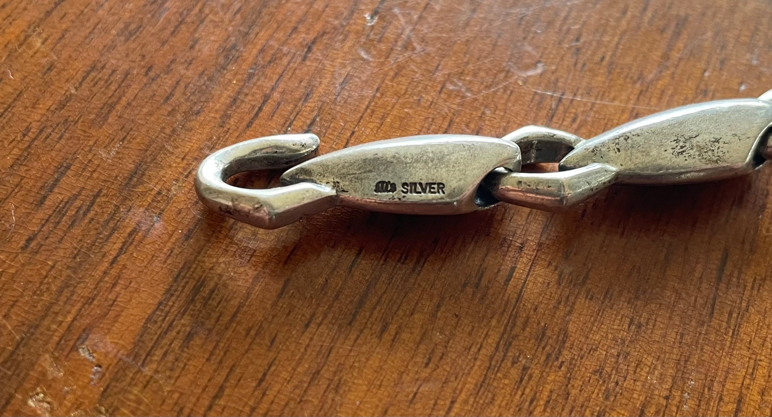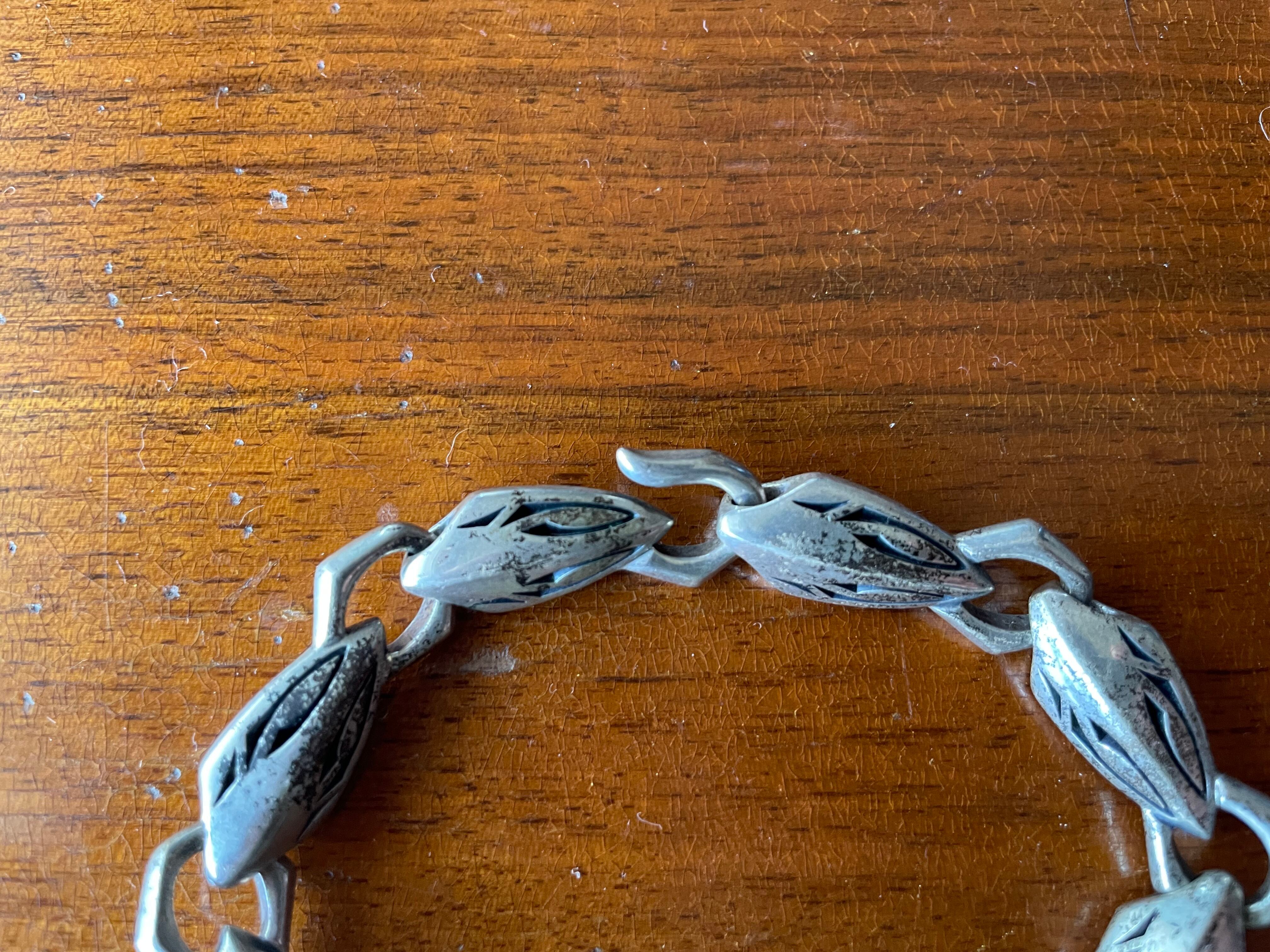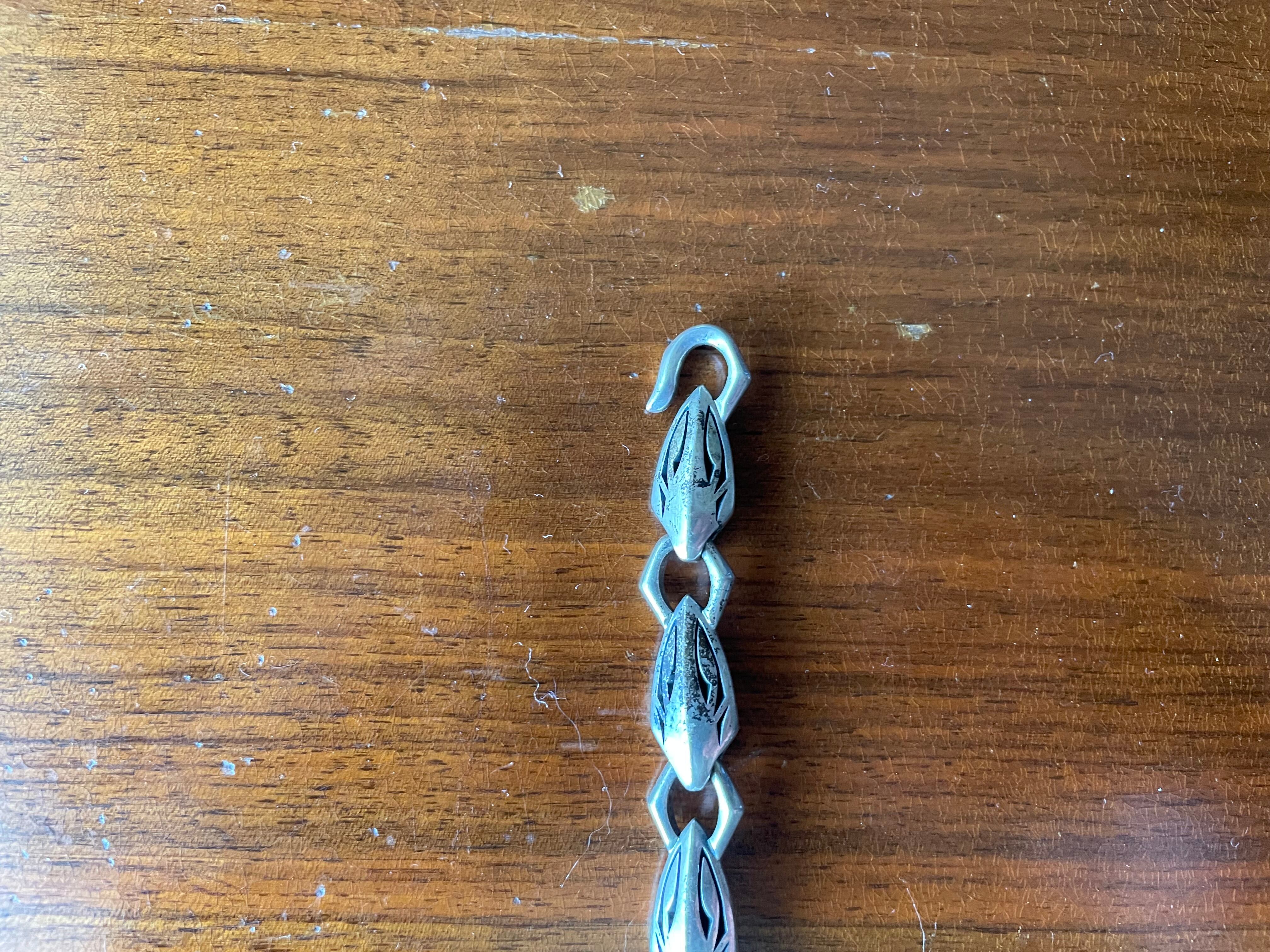 【商品詳細】UNKNOWNのシルバーブレスレット。Silver刻印あり。幾何学模様に彫られたダイヤ型ブレスレット。小ぶりな装いですが雰囲気のある洒落たデザインで存在感あります。普段アクセサリー付けない方でもこれなら挑戦しやすいと思います。