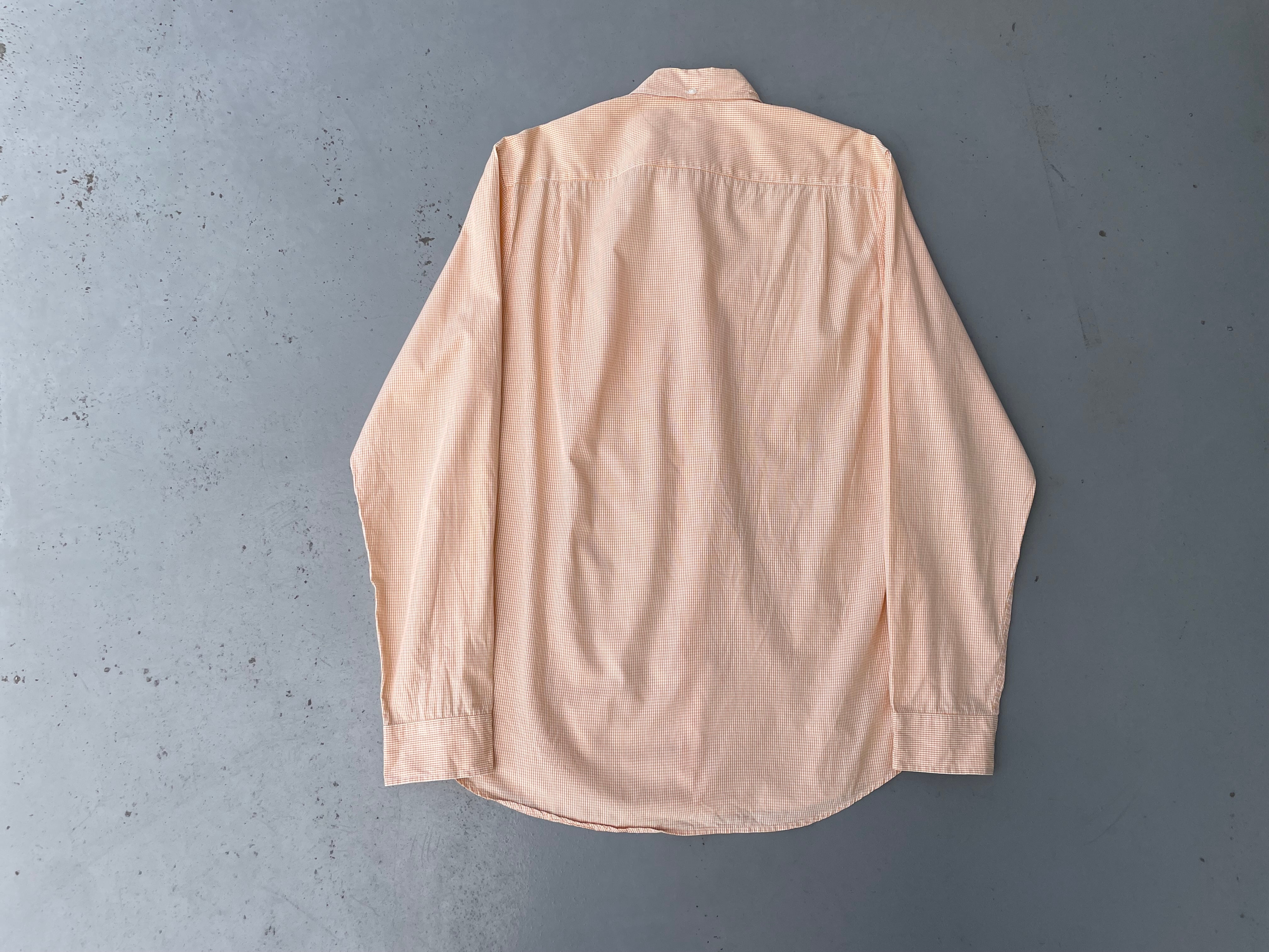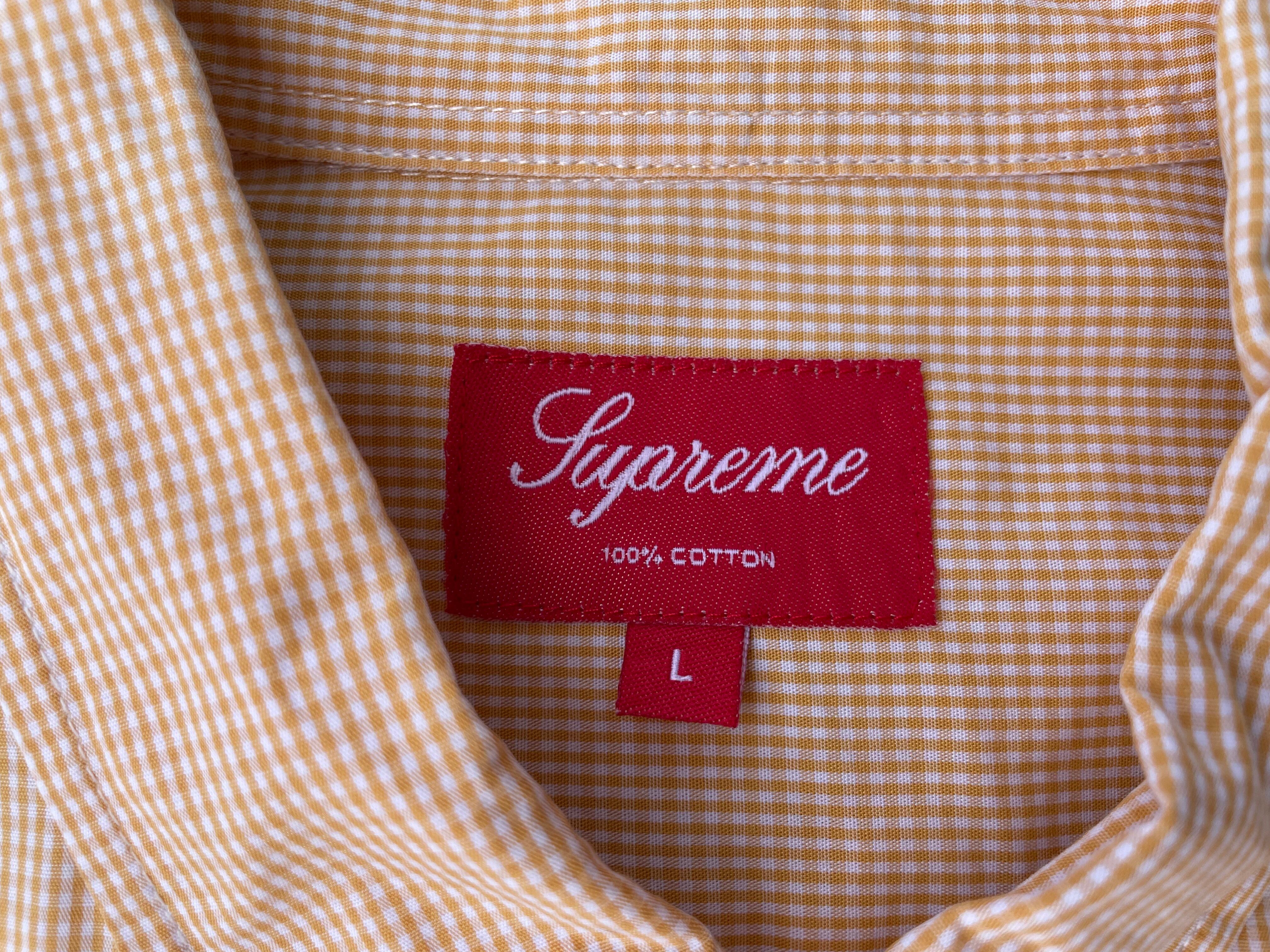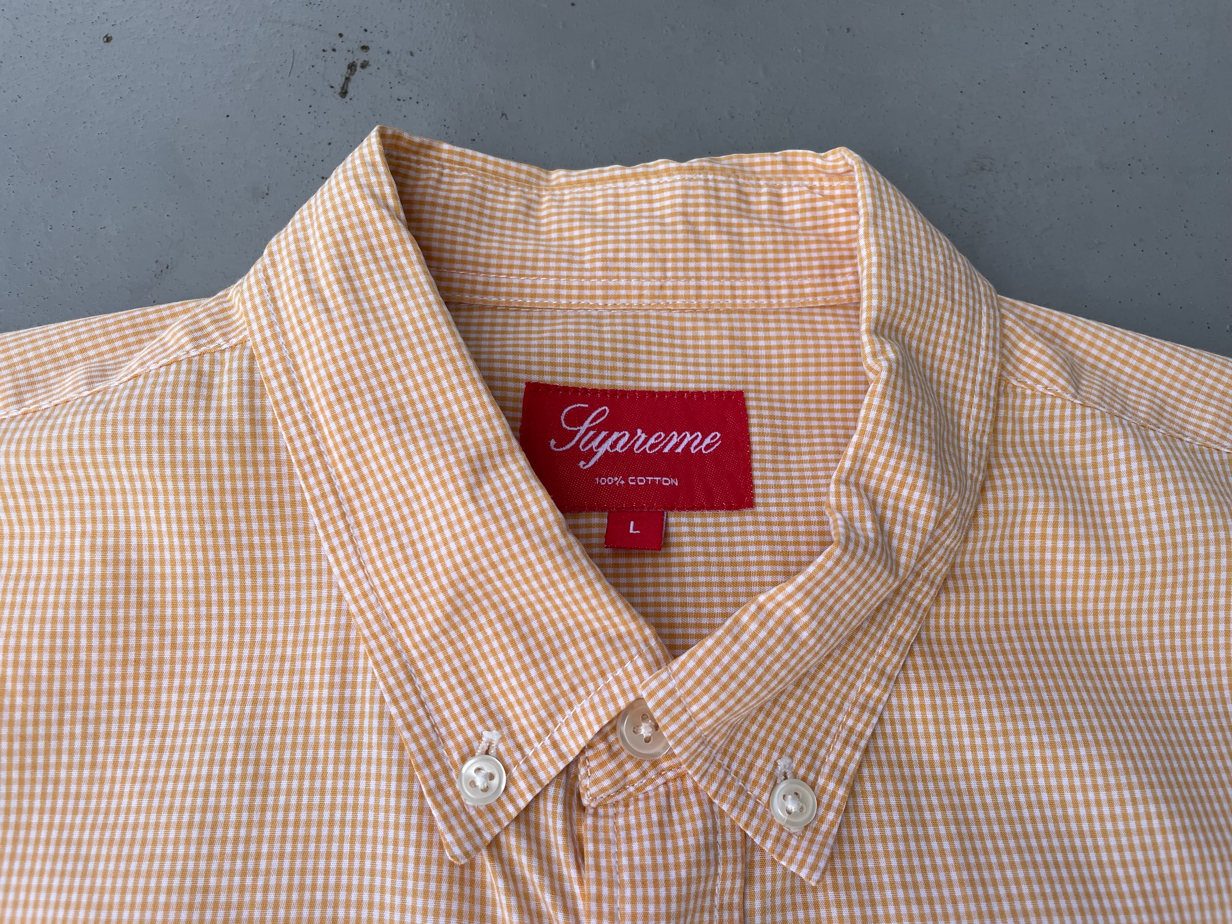【商品詳細】シュプリームの長袖シャツ。サイズはL。カラーはオレンジ×ホワイトのギンガムチェックパターン。00-10年代中国製。爽やかなオレンジカラーが印象的な一着。意外とオレンジカラーのギンガムパターンって見ない気がします。大きめサイズでガバッと羽織れます。ボタンダウン仕様なのも個人的にポイント高いです。夏場はインナー着ずにこれ一枚でも良いですね。