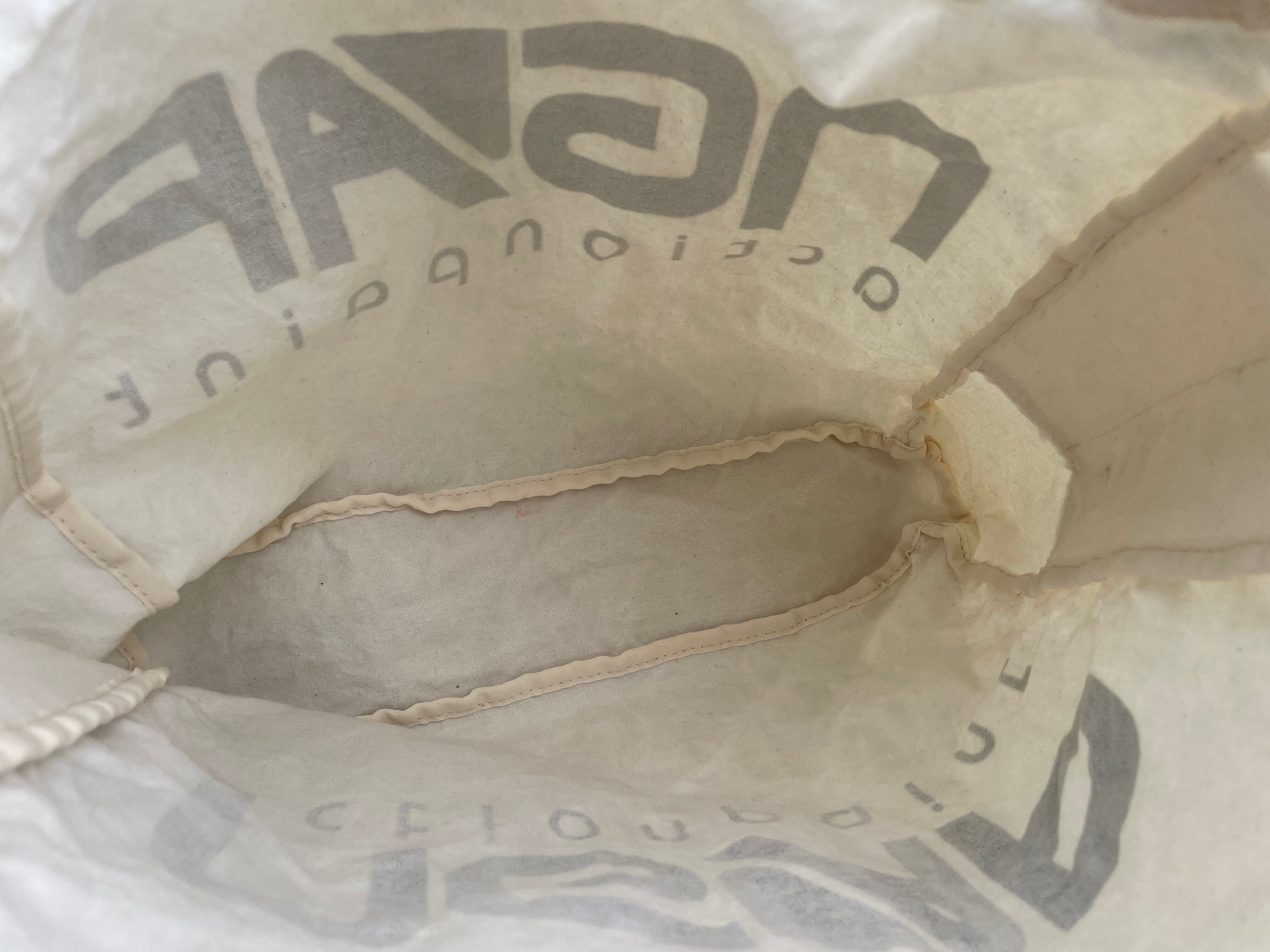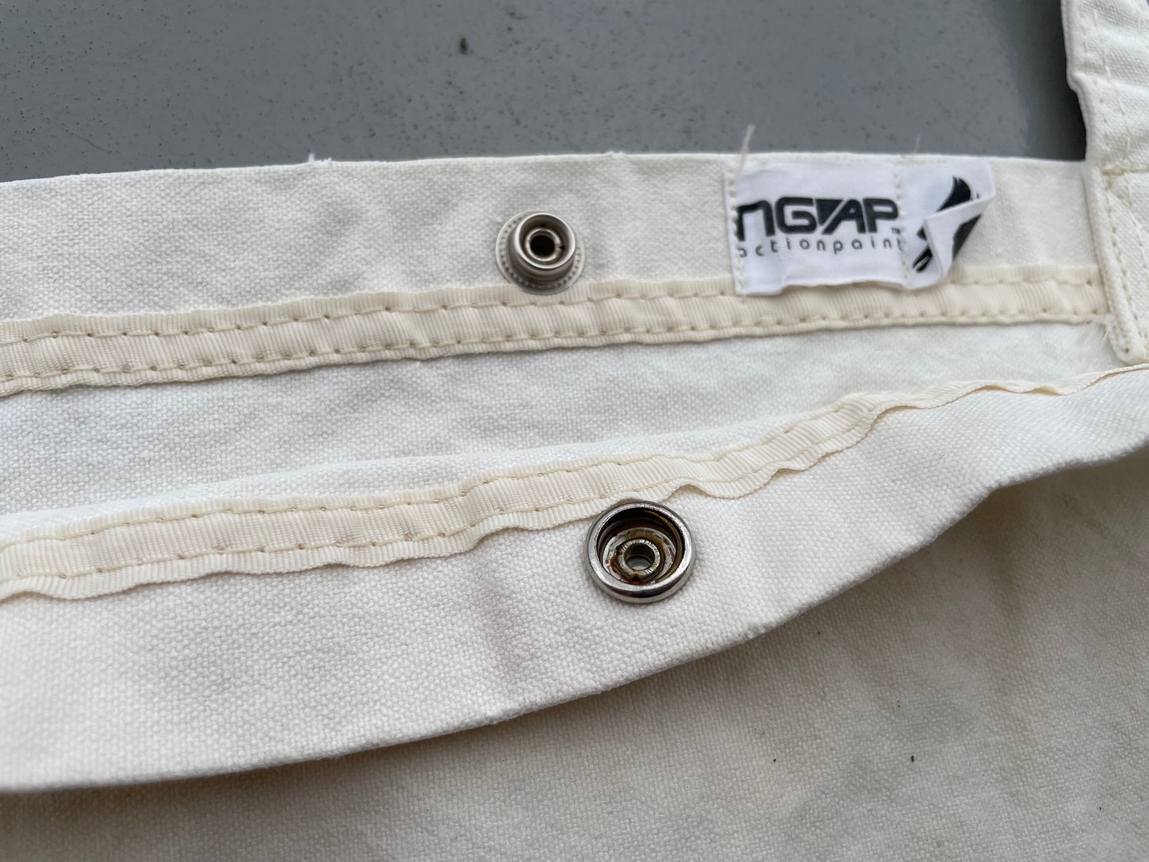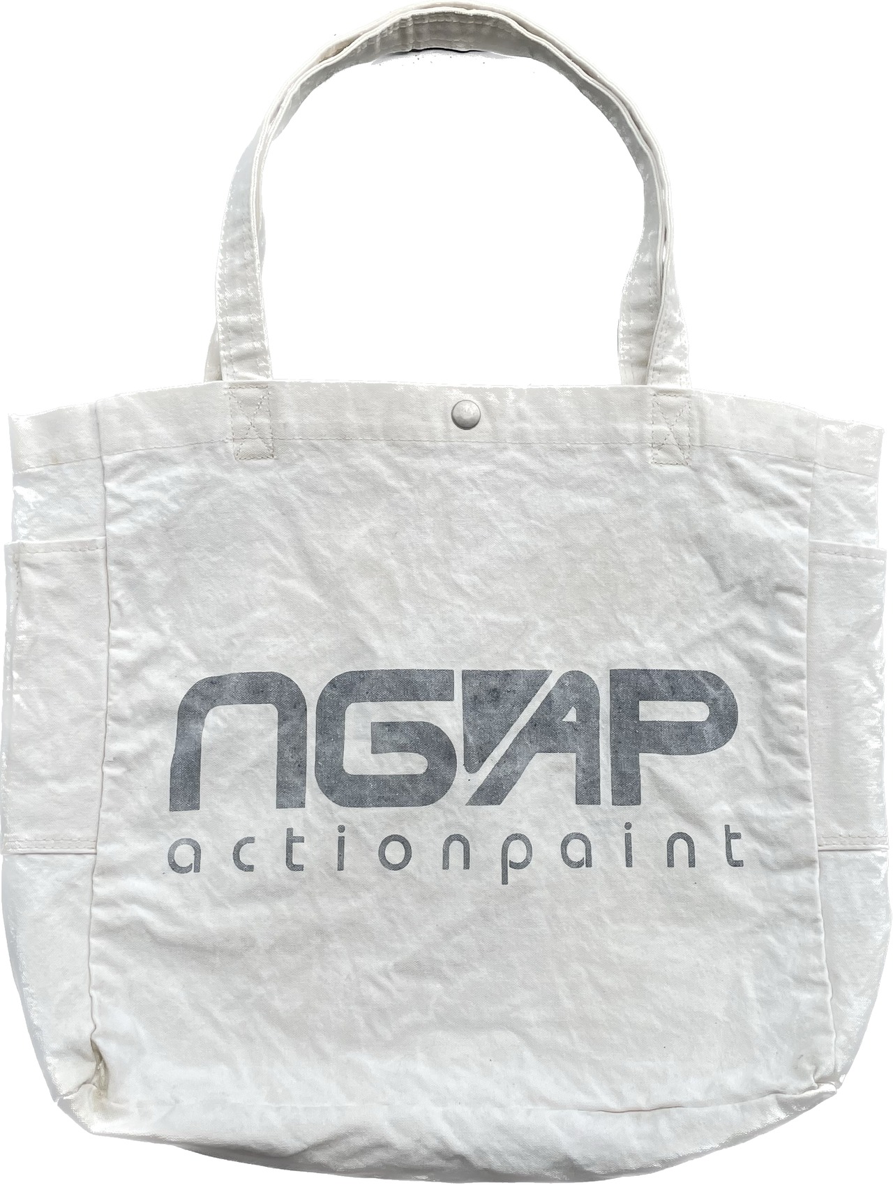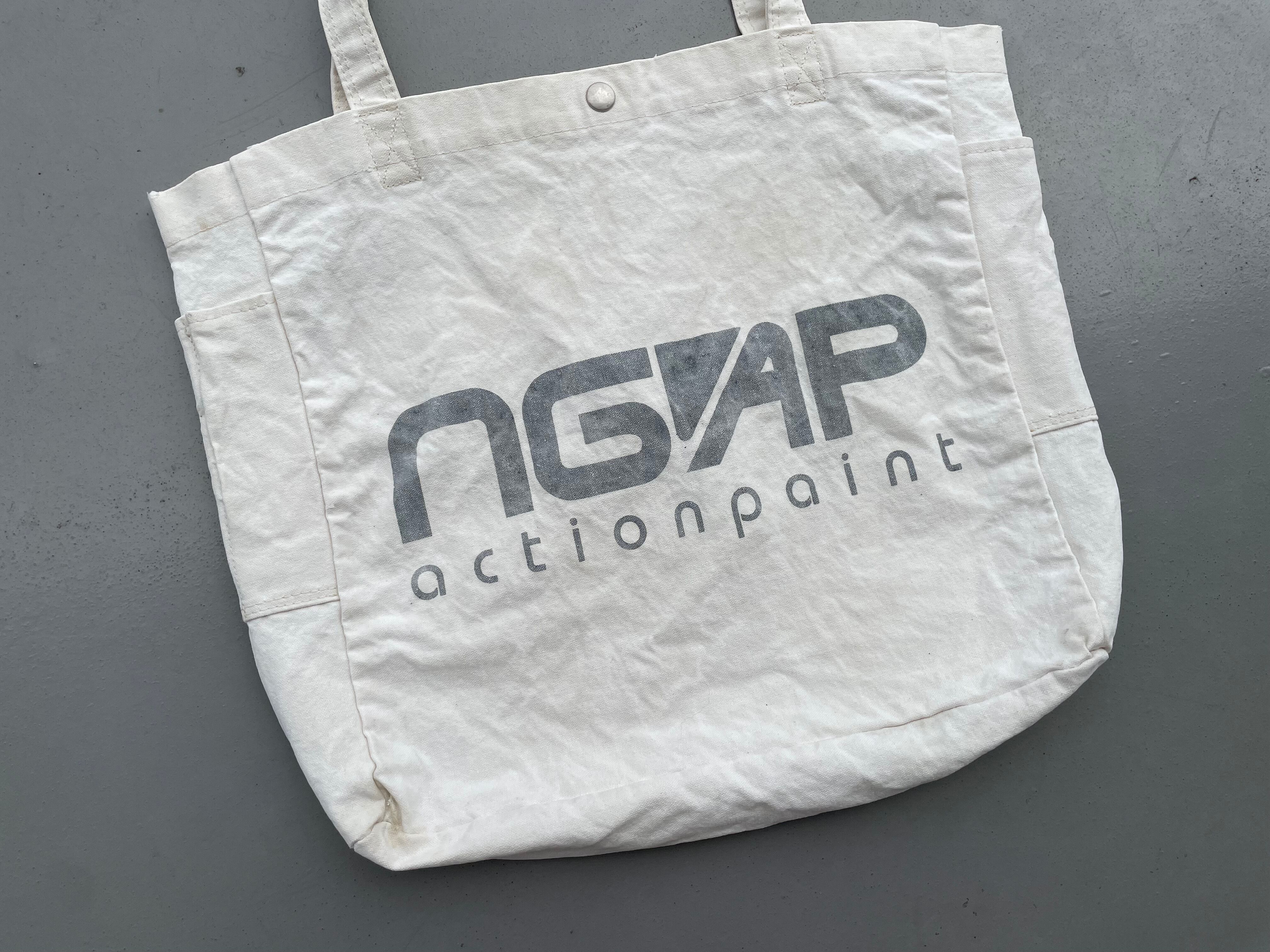 【商品詳細】NGAP×A Bathing Apeのキャンバストートバッグ。カラーはナチュラル。90年代製。知る人ぞ知る名作ツールトートバッグ。一見シンプルなトートバッグに見えますがマチに作業用ポケットのような収納がつく洒落たデザイン。ダメージ加工だけてなく、年代の経過も相まって良い雰囲気に仕上がってます。球数少なめでお探しの方も多いと思います。