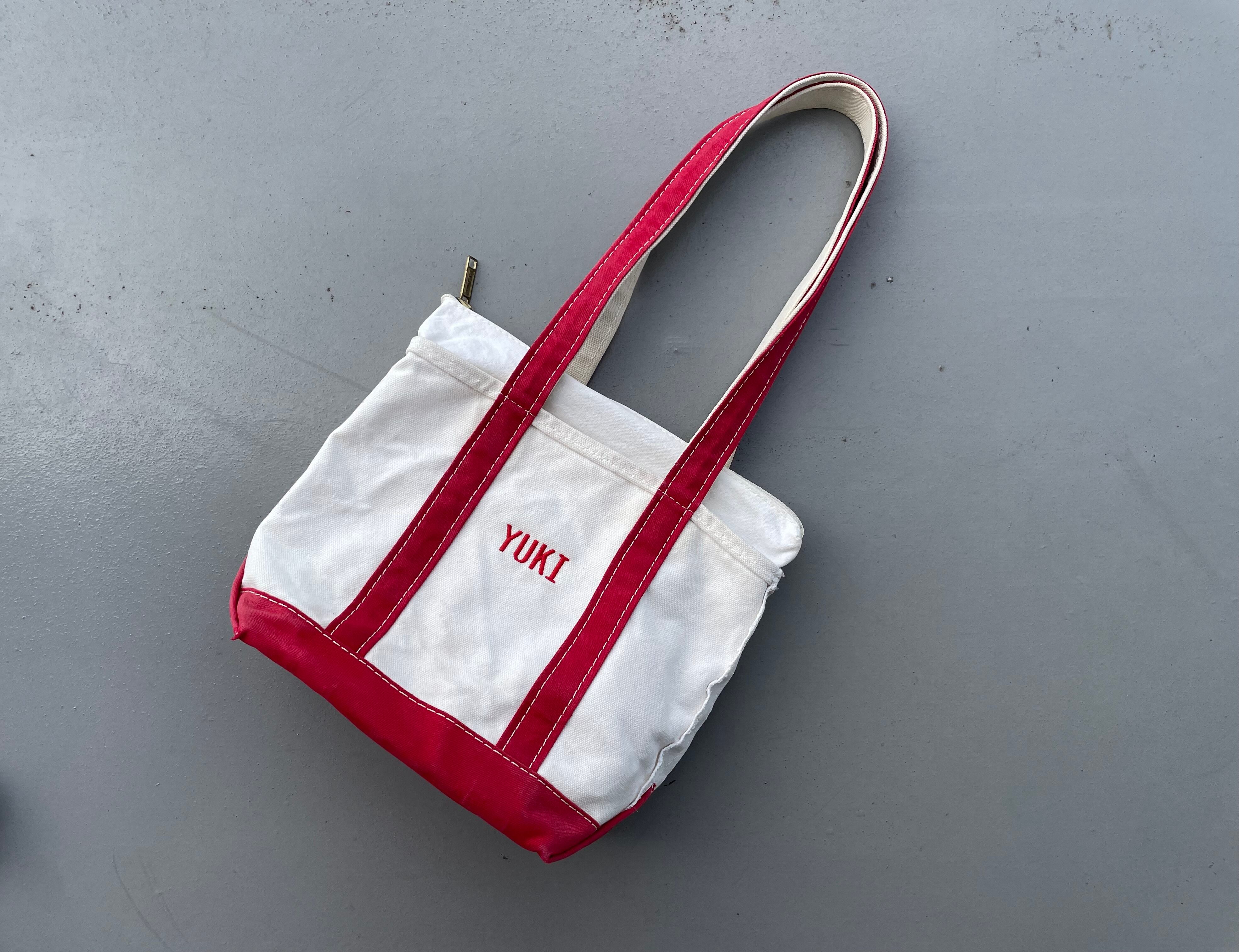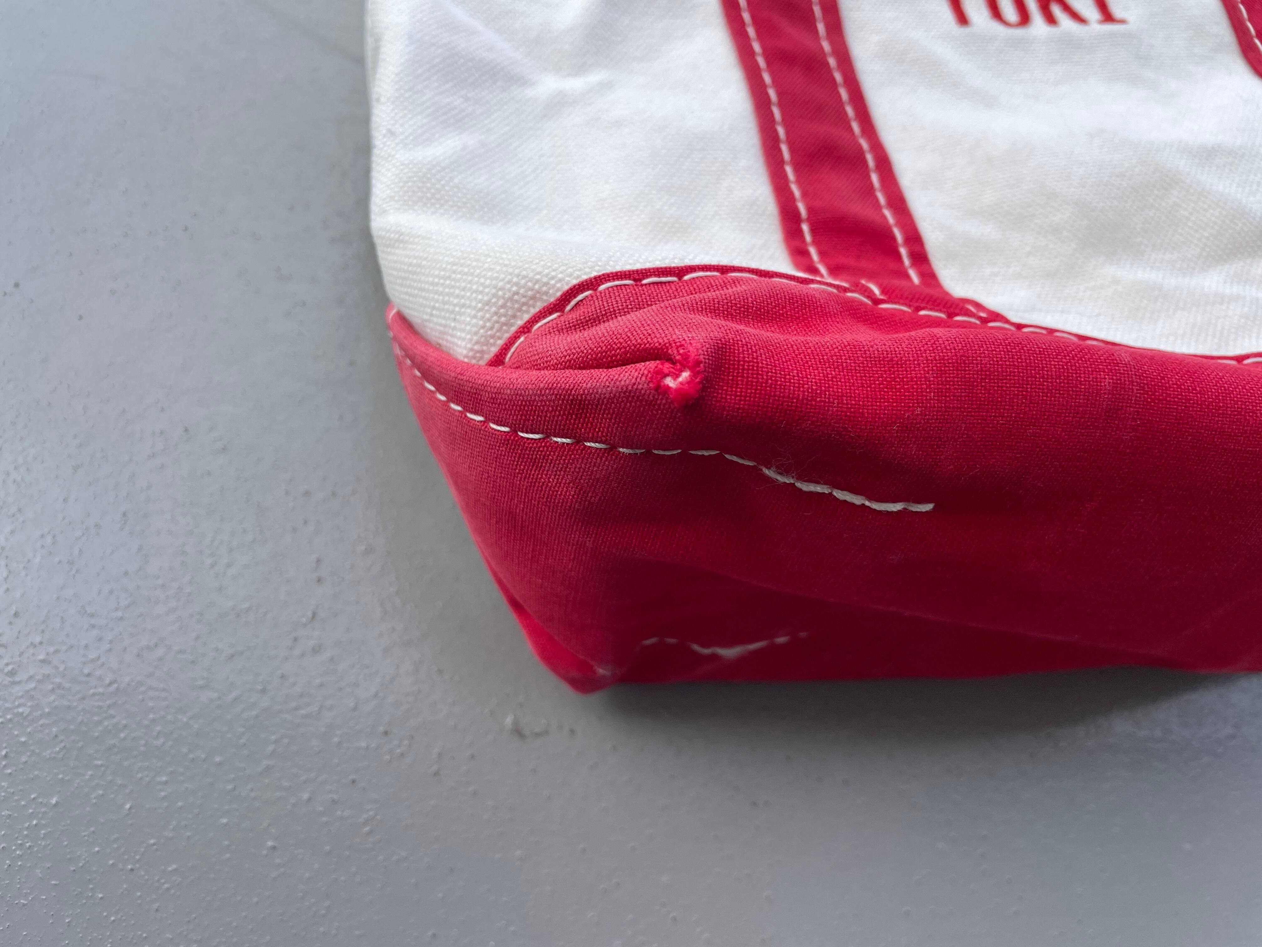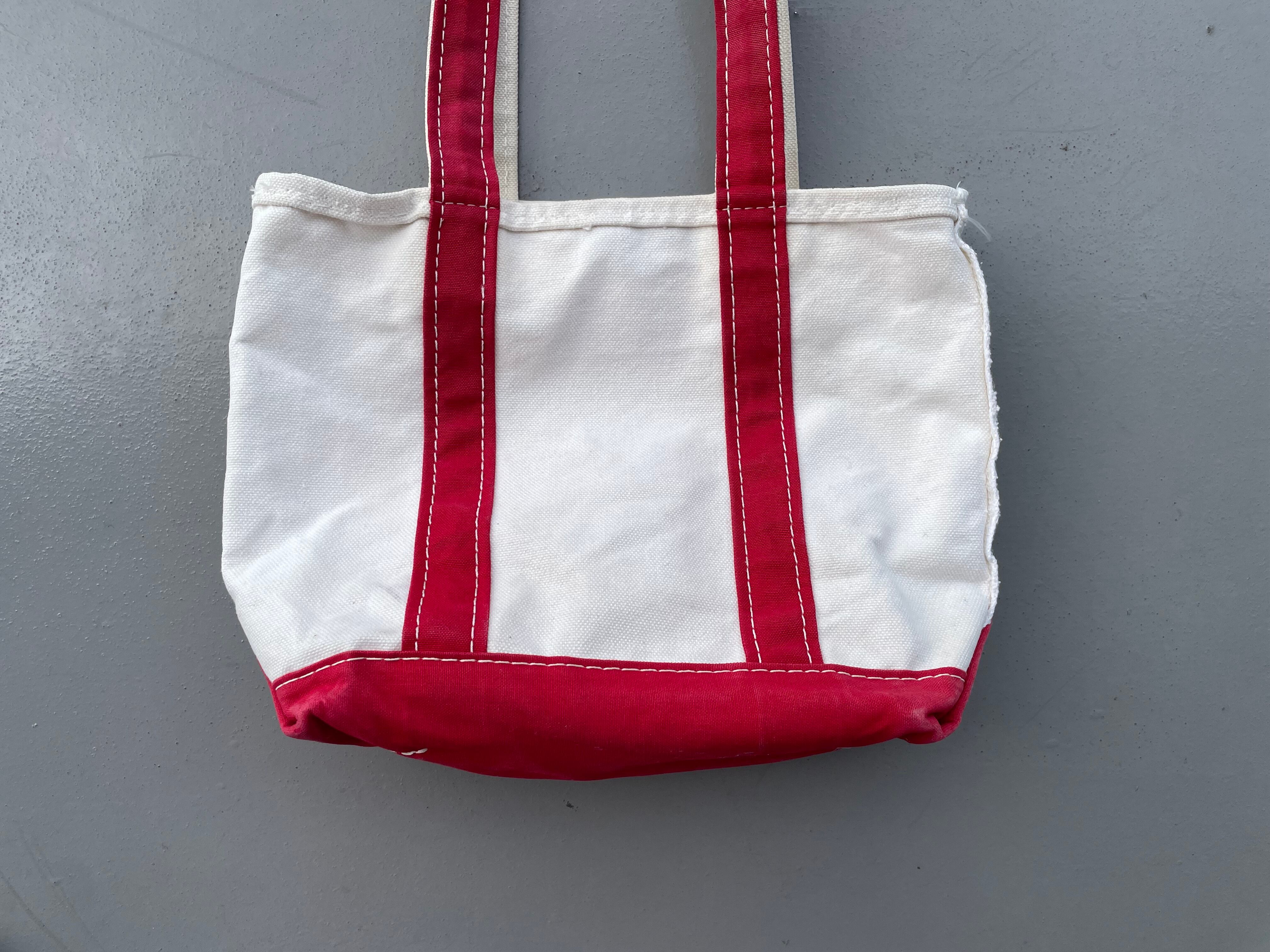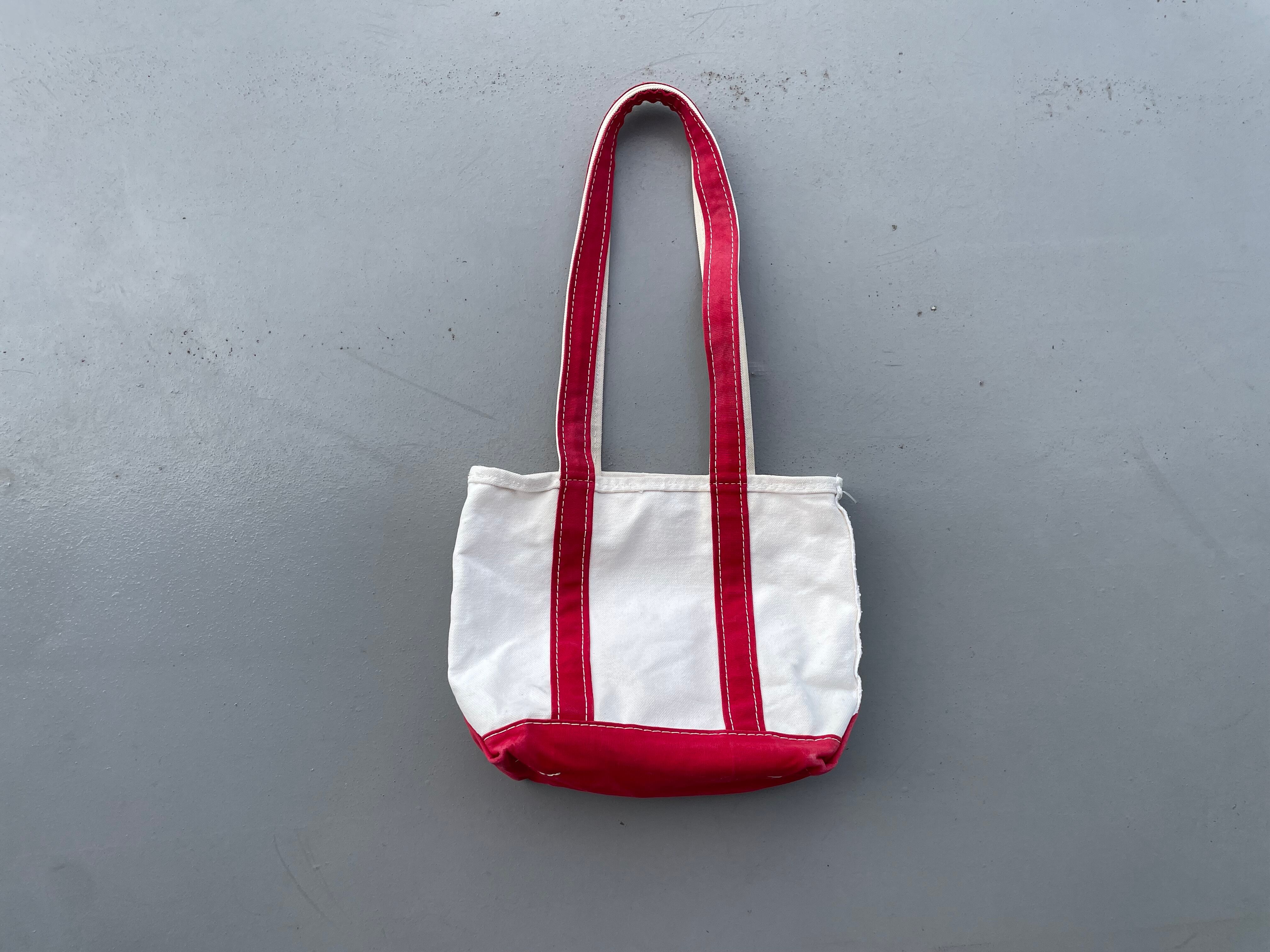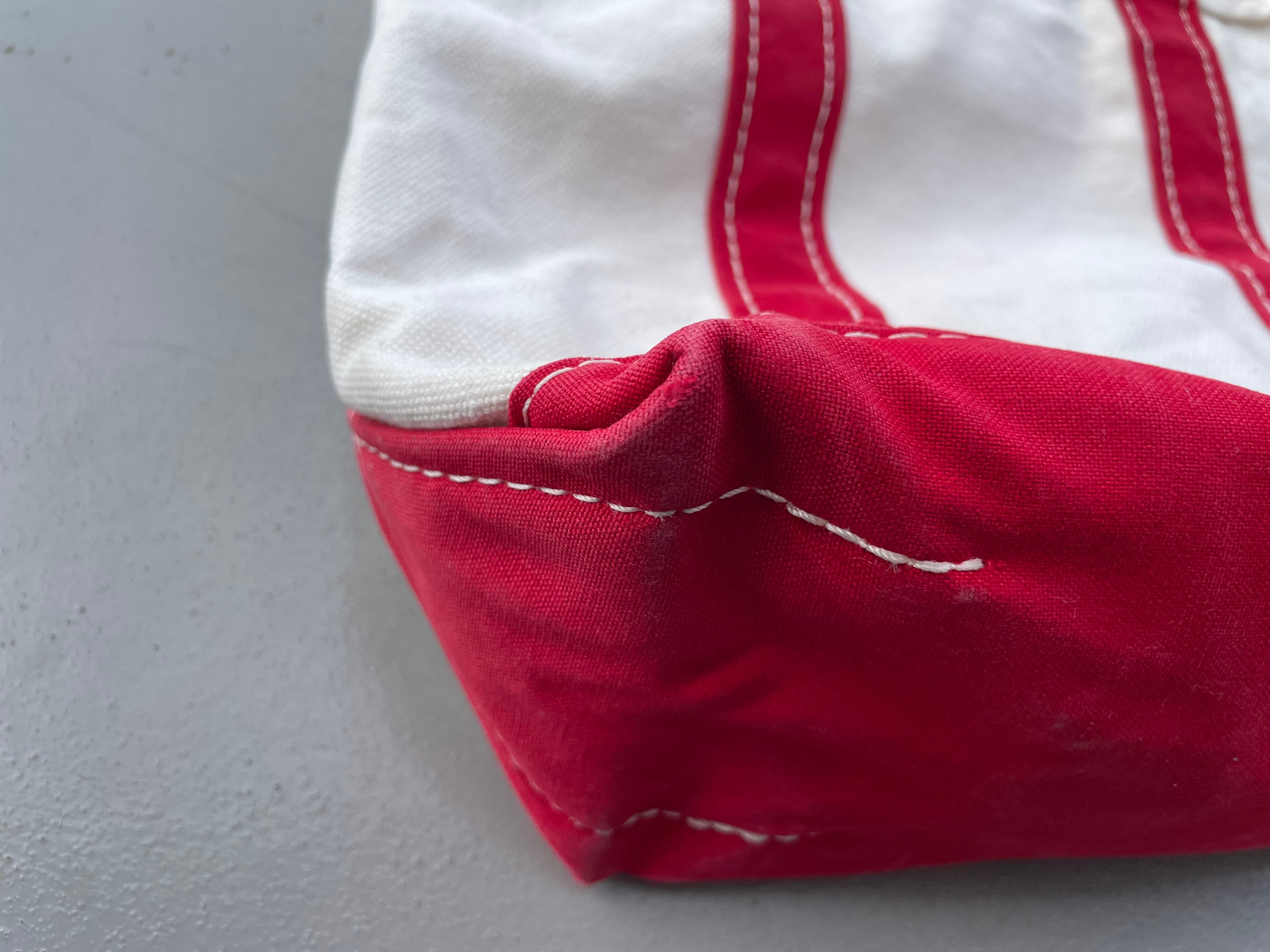 【商品詳細】エルエルビーンのボートアンドトートバッグ。カラーはナチュラル×レッド。80年代USA製。Sサイズトートのロングハンドル×ジップトップ×80年代製ボートアンドトート。この条件で探すとなかなか見つからないですね。独立して立つハリがありこれからもガンガンご使用いただけると思います。古着好きには嬉しい2色タグ仕様。