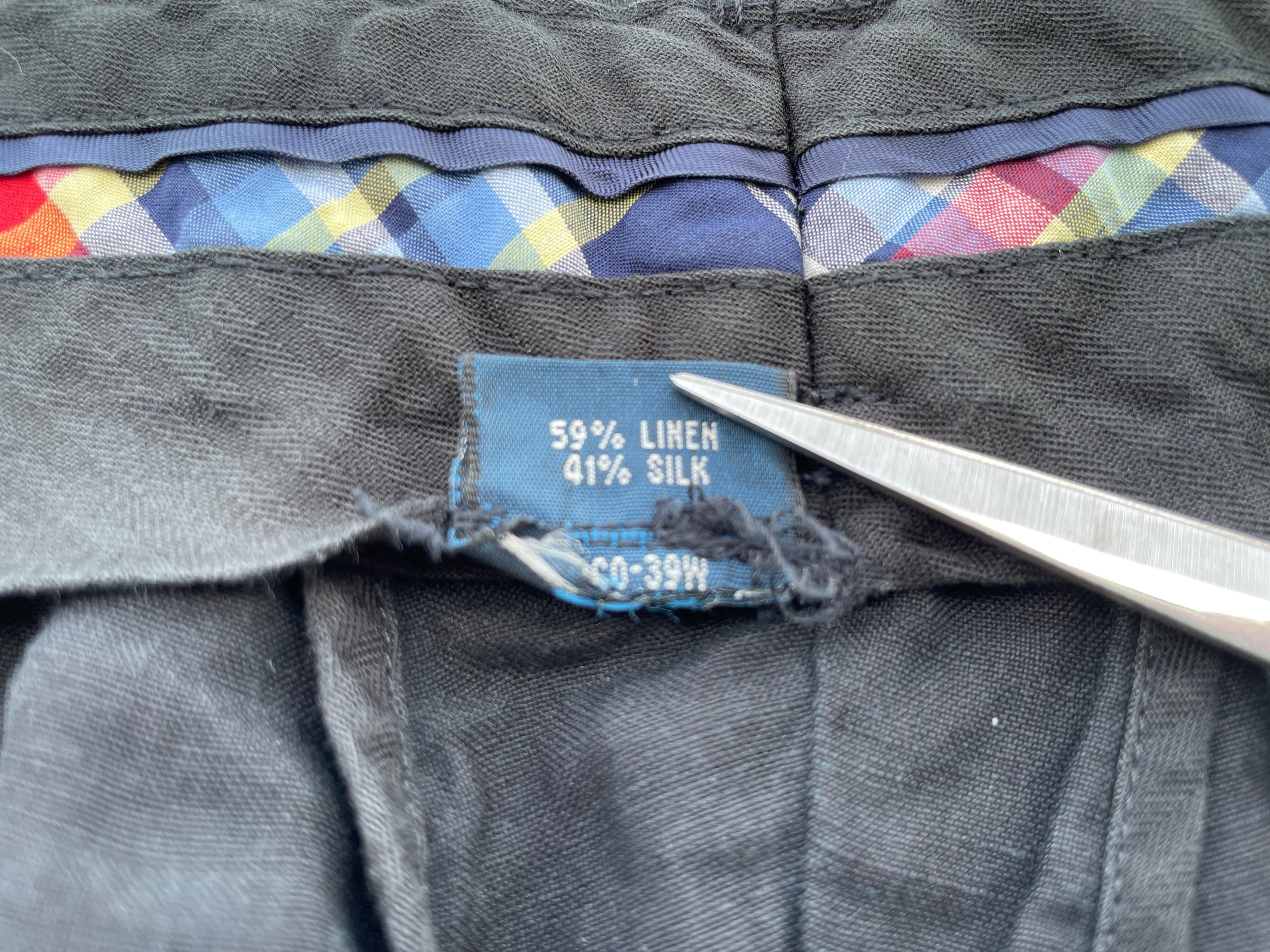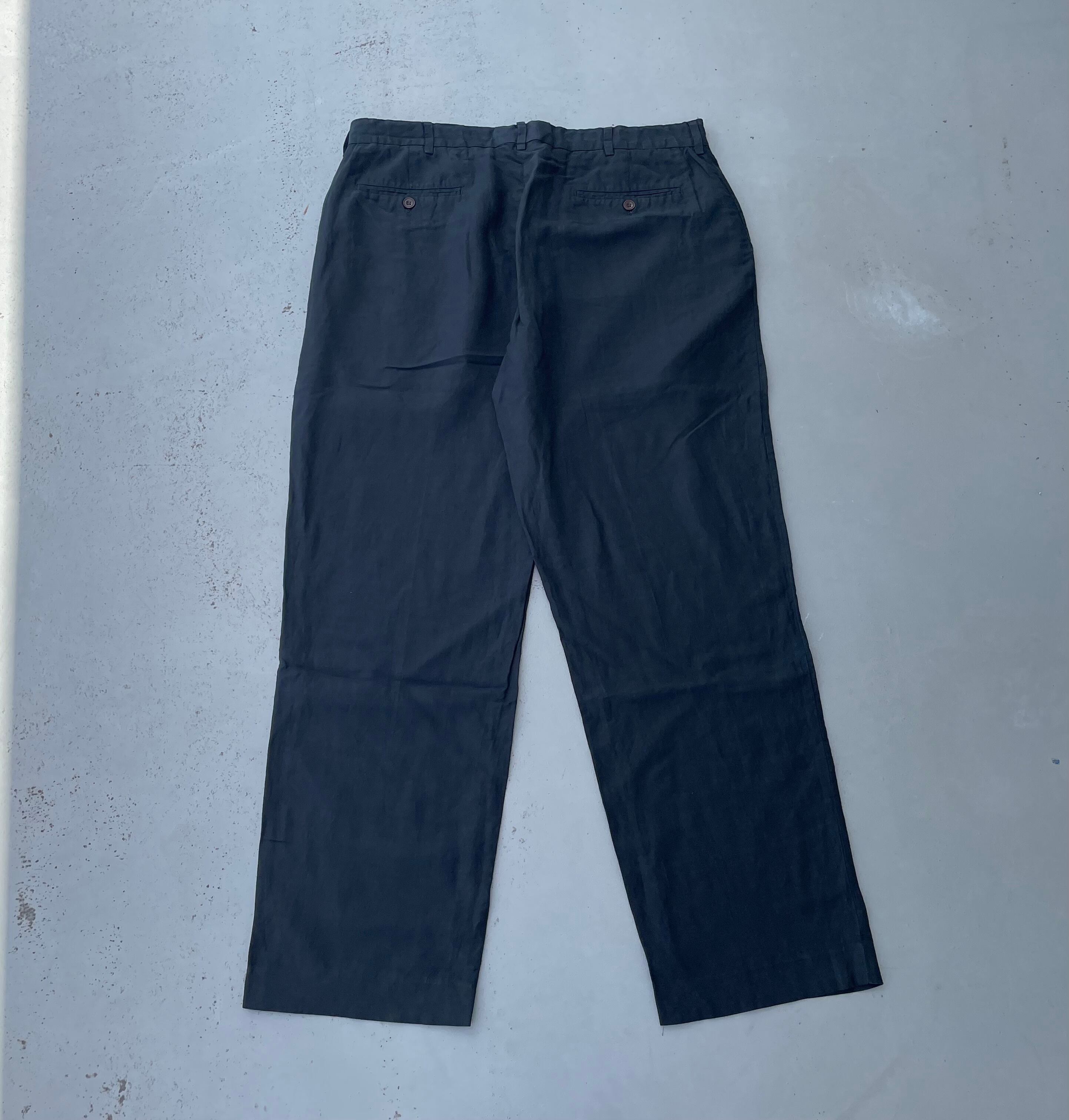 【商品詳細】ラルフローレンのスラックスパンツ。サイズは36/32。カラーはブラック。90-00年代中国製。大人気ブラック シルク×リネン地のスラックス。良い塩梅にテーパードしたシルエットで綺麗にご着用いただけるかと。触り心地の良いシャリ感のある生地でこれからの季節活躍しそうです。