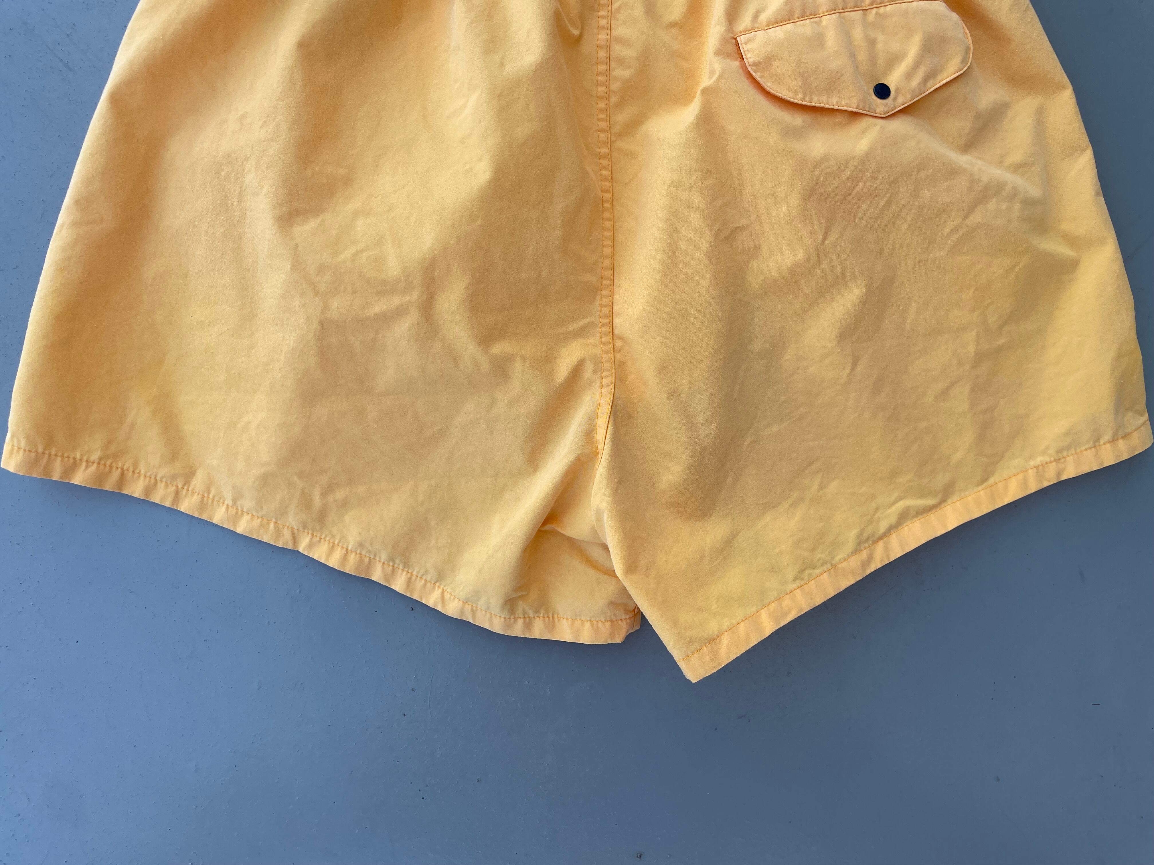 【商品詳細】パタゴニアのバギーズショーツ。サイズはJAPAN XL(USA L)。カラーはバターナッツを彷彿させるイエローカラー。91年香港製。Rマークの入るオールドモデルのバギーズショーツ。数あるパタゴニアカラーの中でも人気なバターナッツカラー。サイズもXLと大きめでわたり・裾幅がしっかりあるバギーなシルエット。年代物ですが程度も良いです。