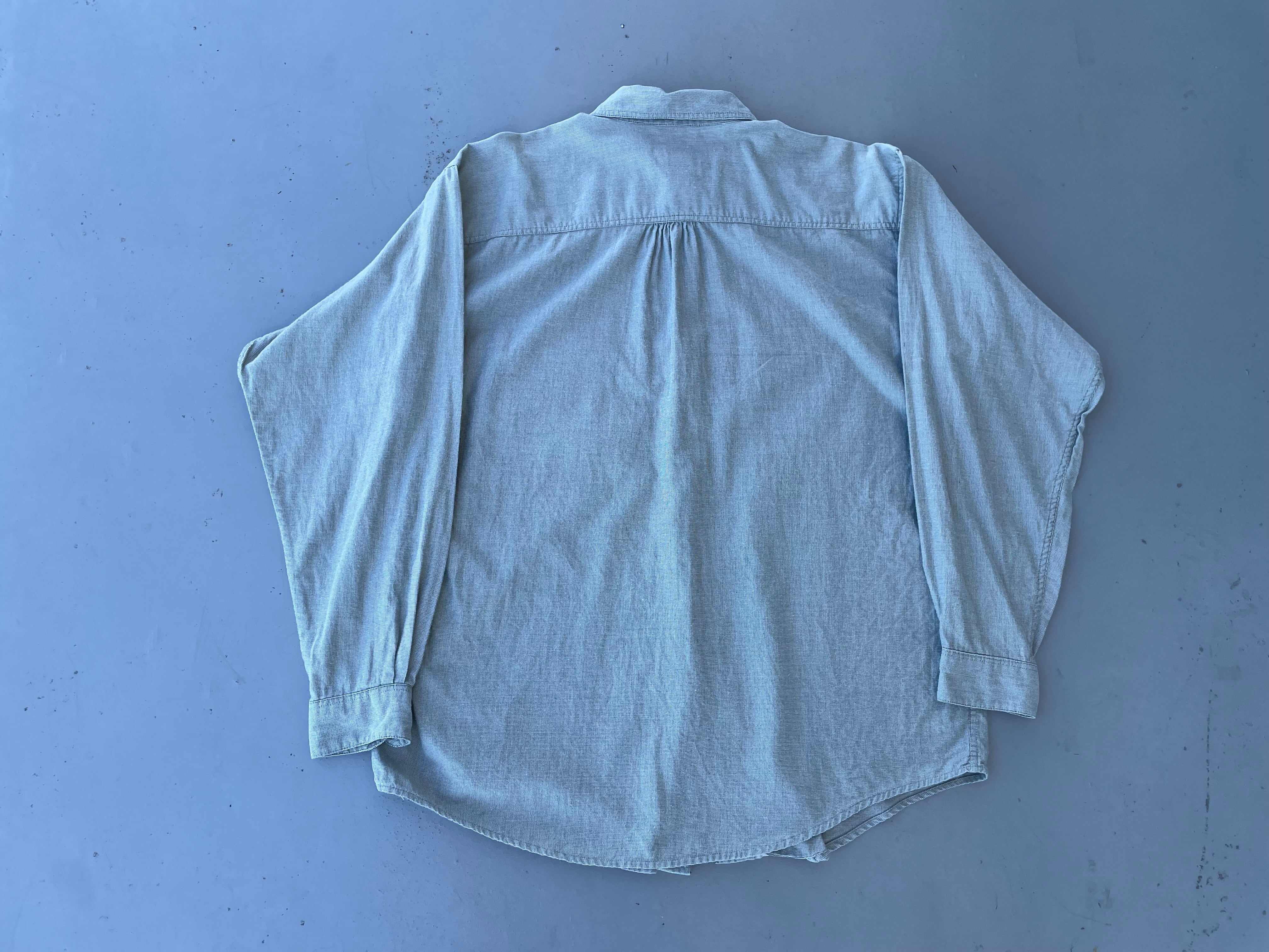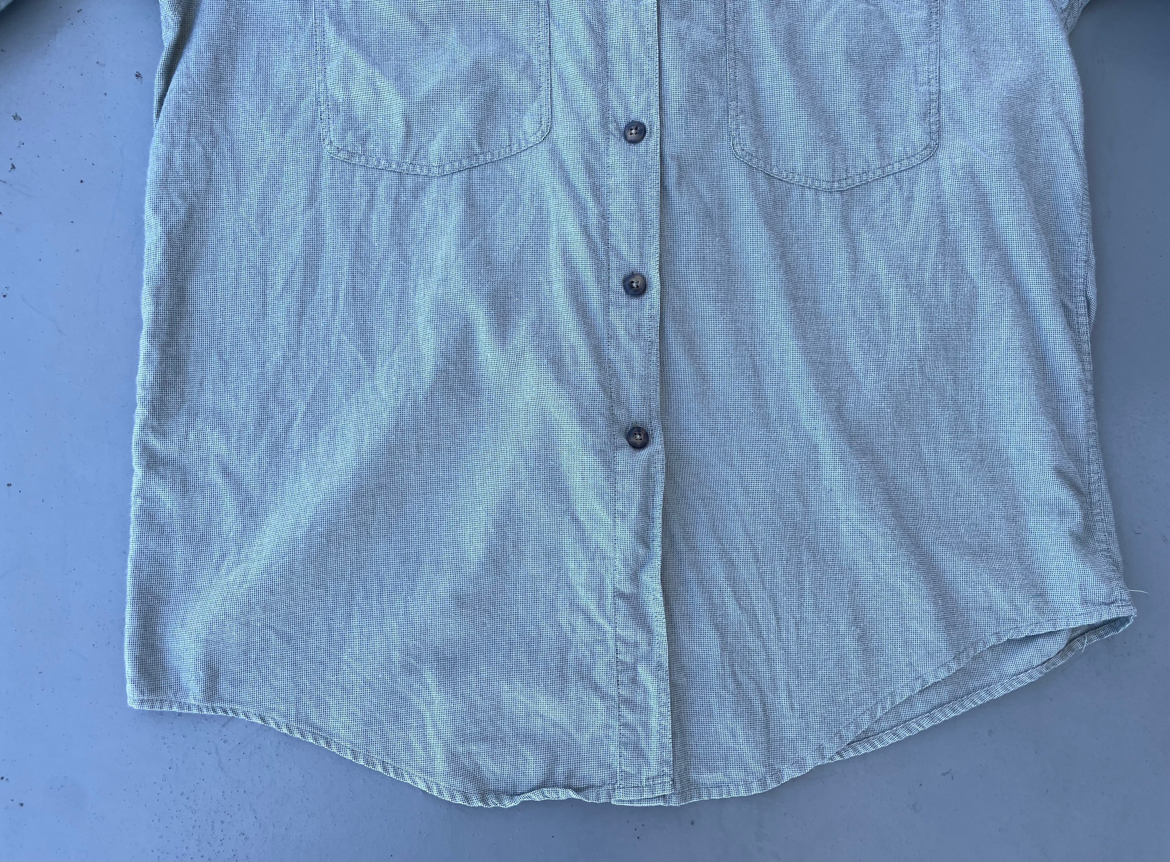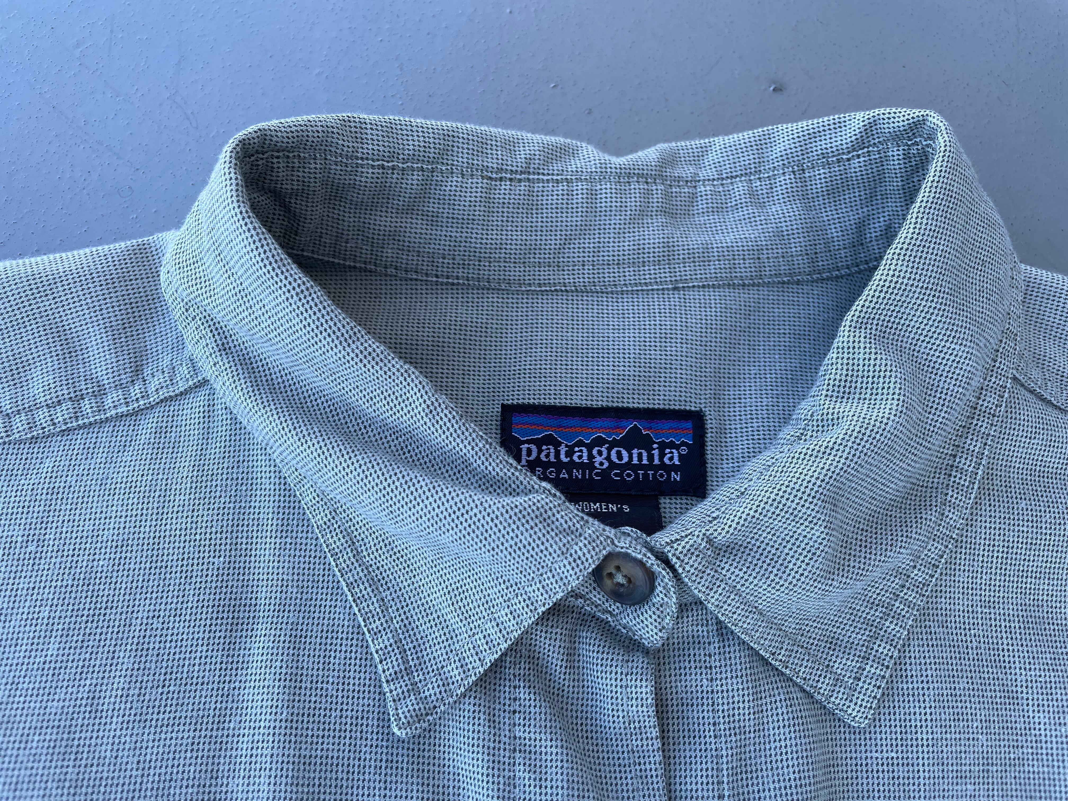 【商品詳細】パタゴニアの長袖シャツ。サイズはWOMEN'S L。カラーは鶯色のような渋めグリーン。90-00年代ポルトガル製。パタゴニアの中でも特に人気なポルトガル製シャツ。渋めなグリーンカラーに変わった織が洒落てます。メンズ企画には無い背面と袖のギャザーもグッドです。