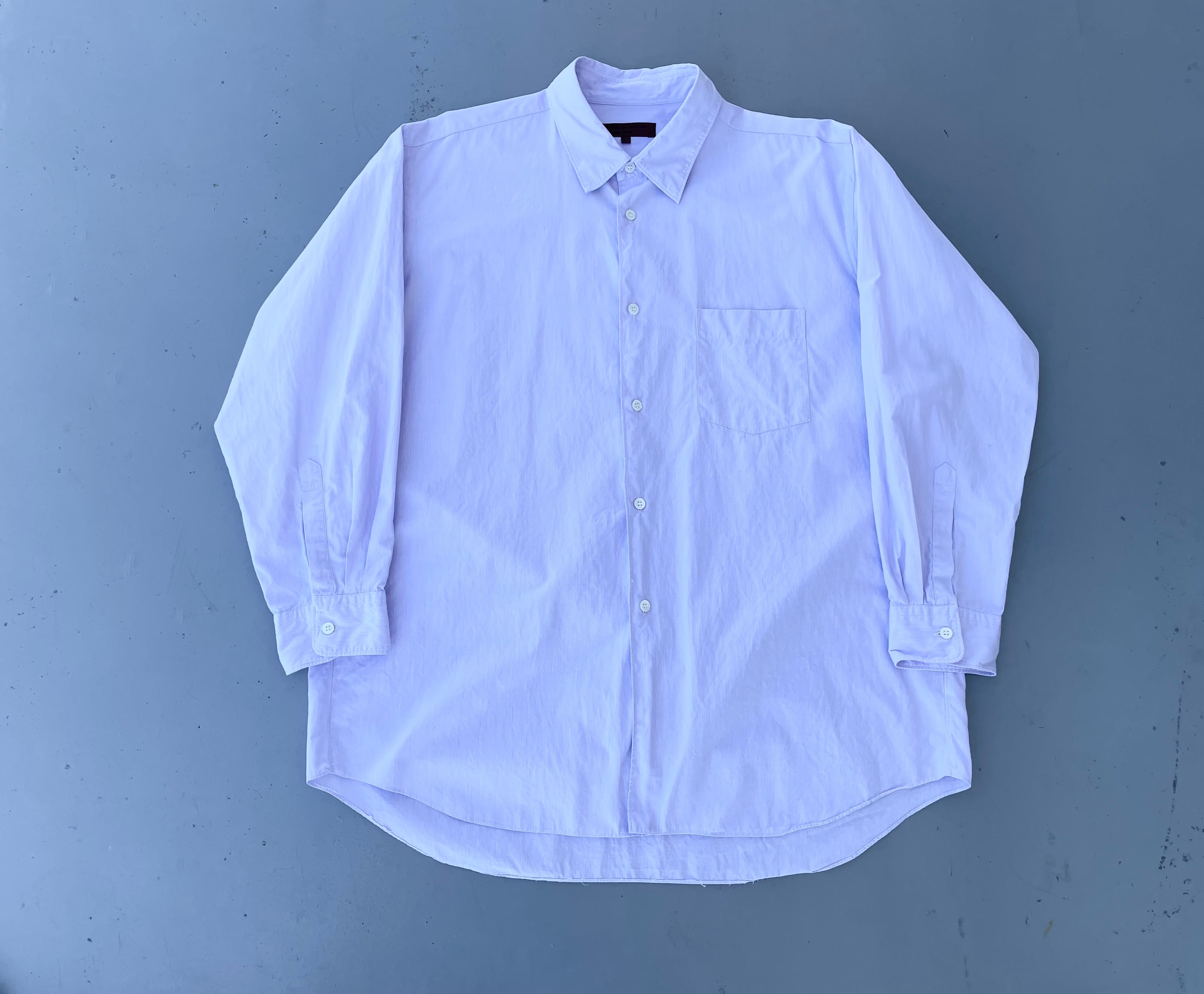 【商品詳細】コムデギャルソン オムドゥのオーバーサイズシャツ。サイズはL。カラーはラベンダー。98年日本製。オムドゥの中では珍しいオーバーサイズシャツ。全体的なディーテールが大きく取られたドレープ感のあるギャルソンシルエット。洒落たラベンダーカラーで大人感のある一着。地味に古いモデルなのも嬉しいですね。