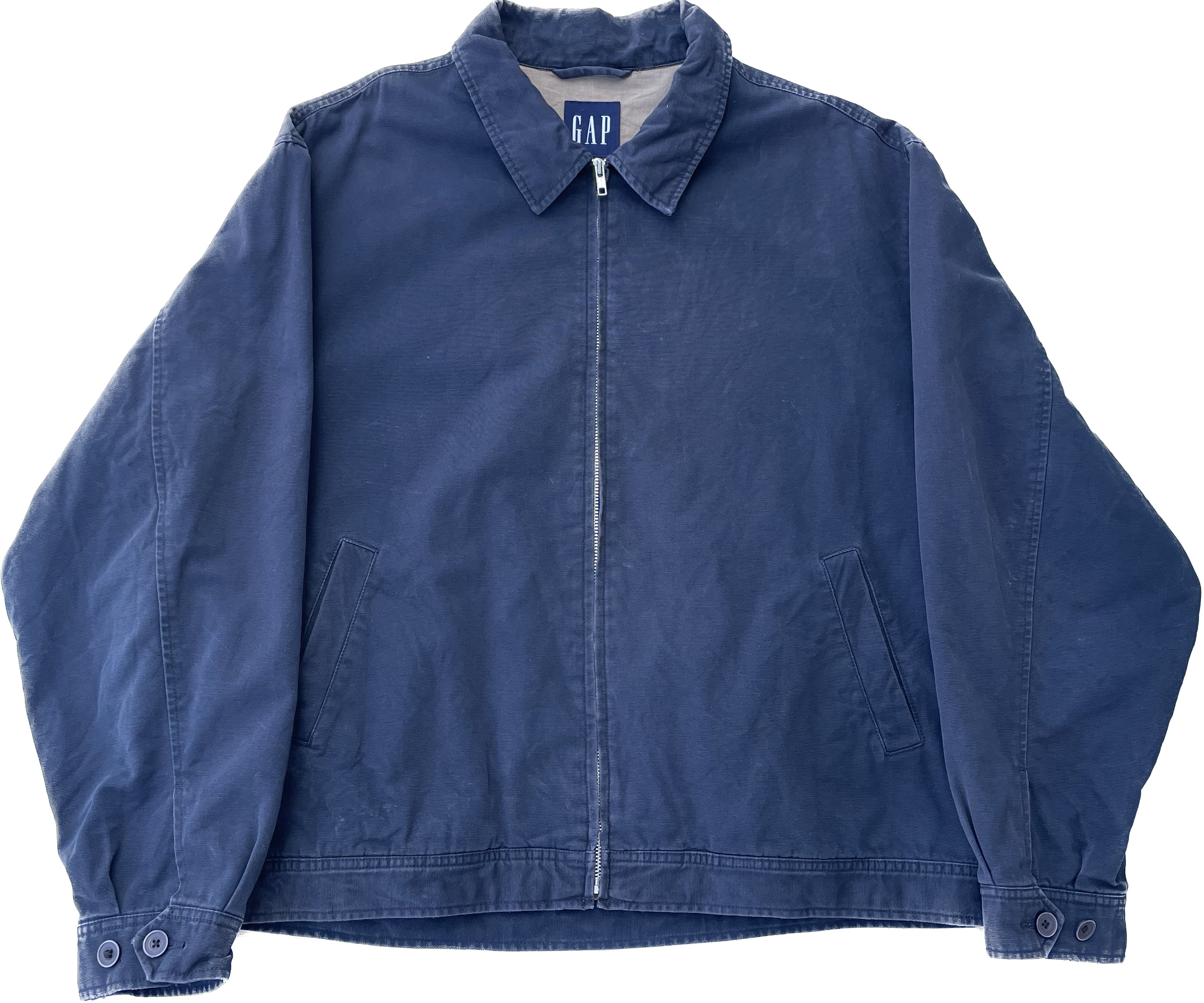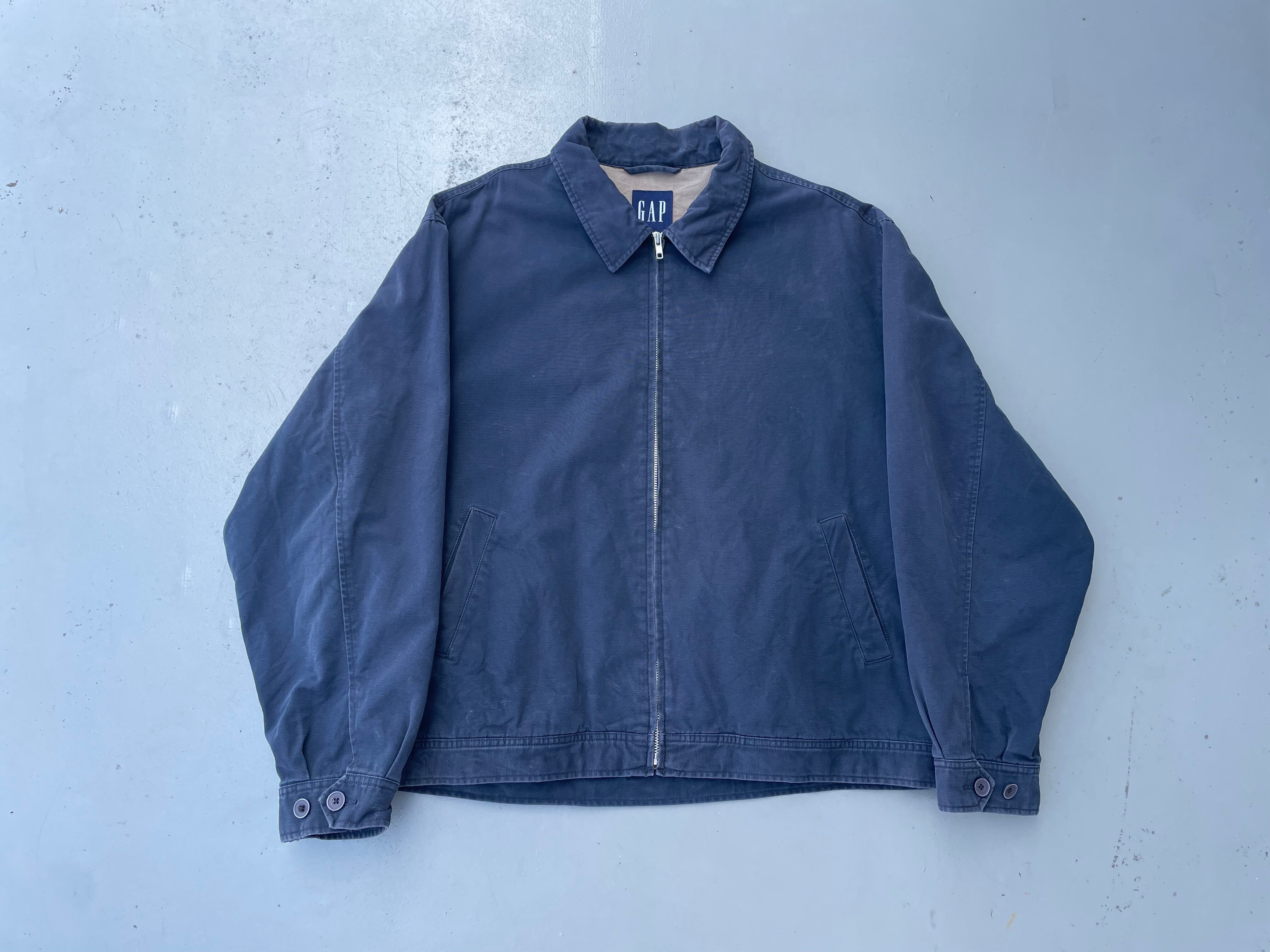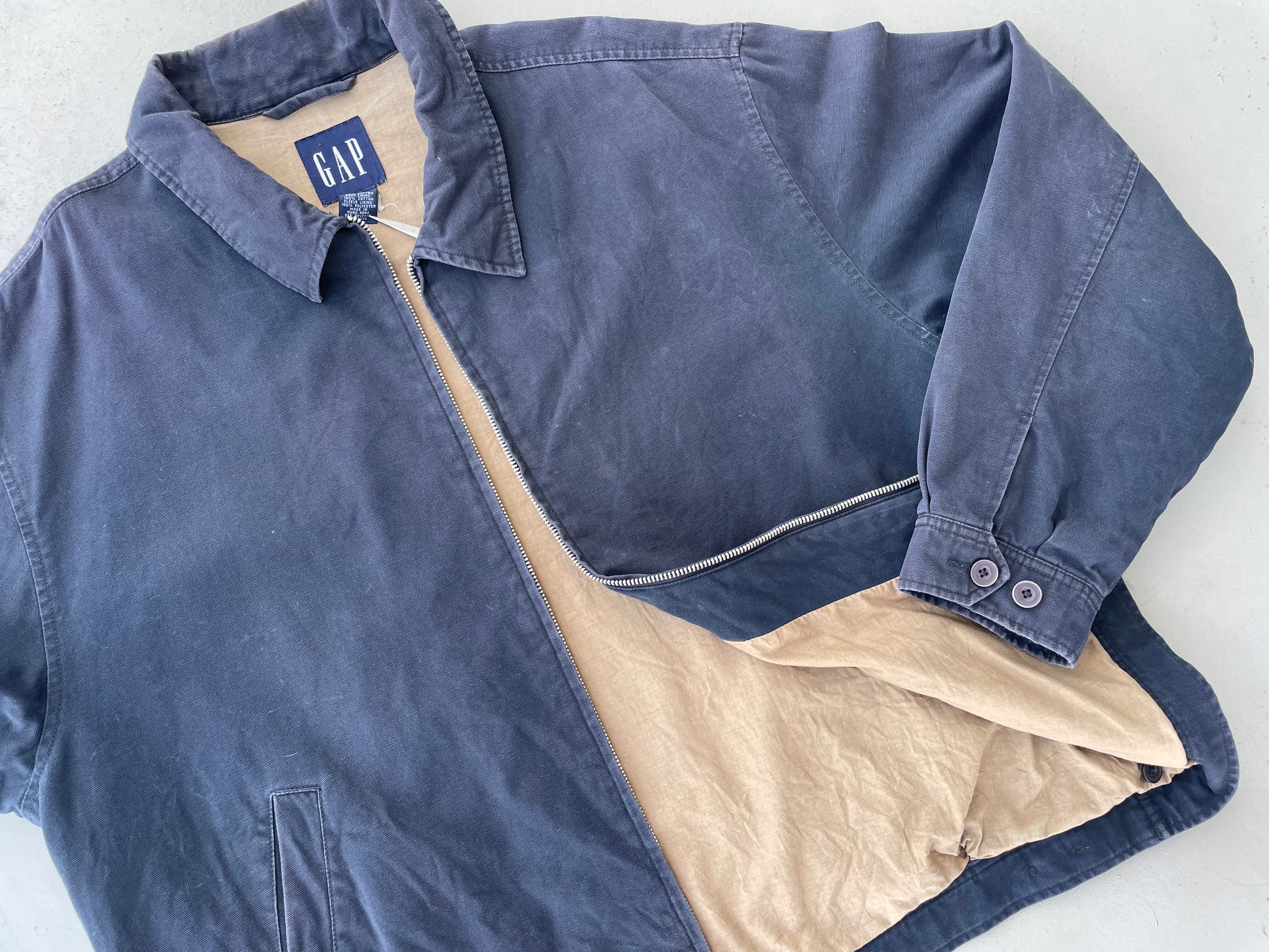 【商品詳細】ギャップのスウィングトップ型ブルゾン。サイズはXL。カラーはダークネイビー。90年代香港製。ガシッとした安心感のあるやや厚手コットン地のブルゾン。この手のブルゾンは短丈多いイメージですがこちらは着丈・身幅がしっかりある大きめサイズ。ダック地とかではないので重すぎずデイリーにご着用いただけるかと。ギャルソンシルエット堪らないですね。売れなければその内買います。