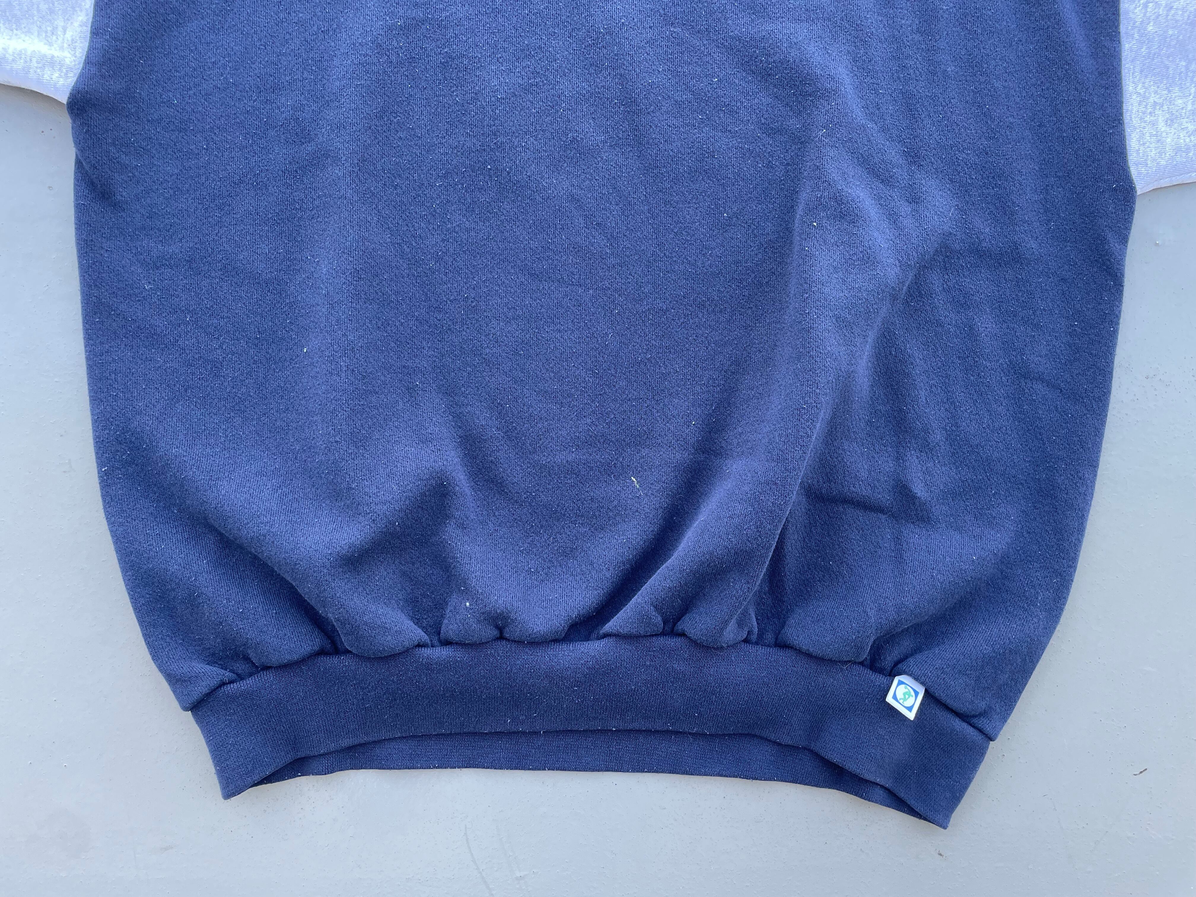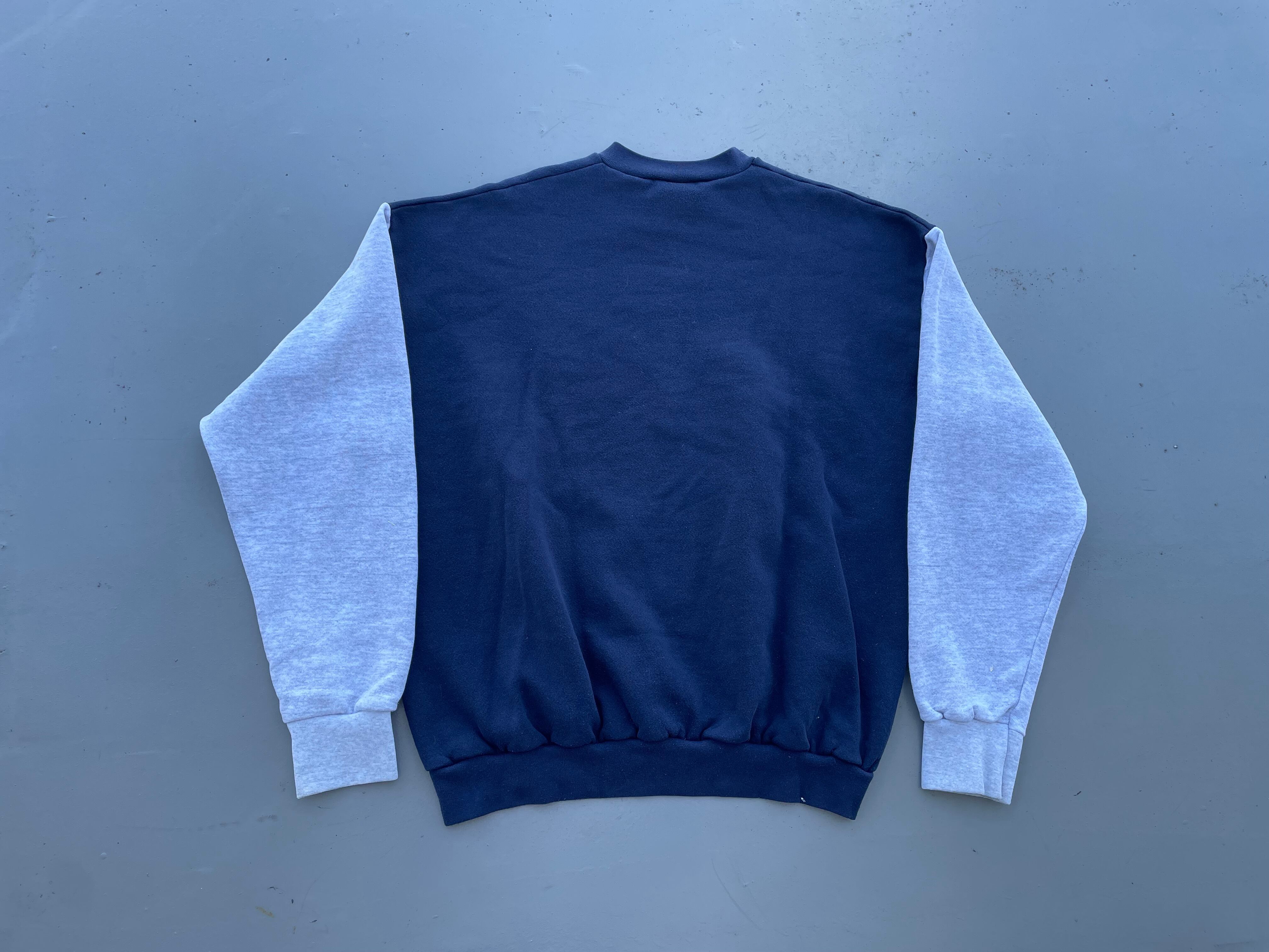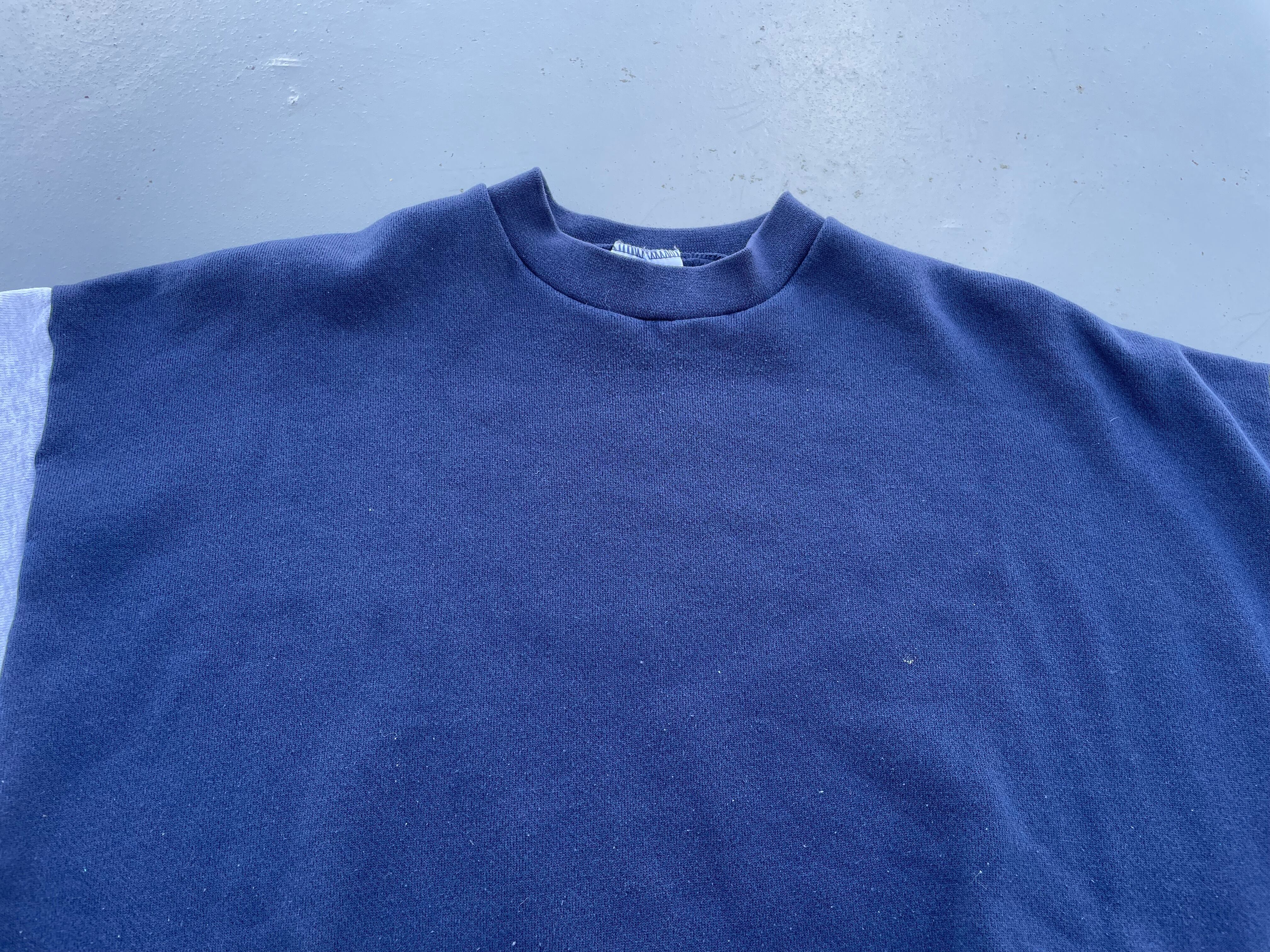 【商品詳細】ディスカス アスレチックのプルオーバースウェットシャツ。サイズはXL。カラーはネイビー×グレー。90年代頃USA製。ディスカスでは珍しい袖切替カラーのスウェット。派手になり過ぎず落ち着いた配色で着用しやすい個体かと。良い塩梅にペンキ飛びもあり雰囲気あります。嬉しい着丈長過ぎない身幅のある個体。