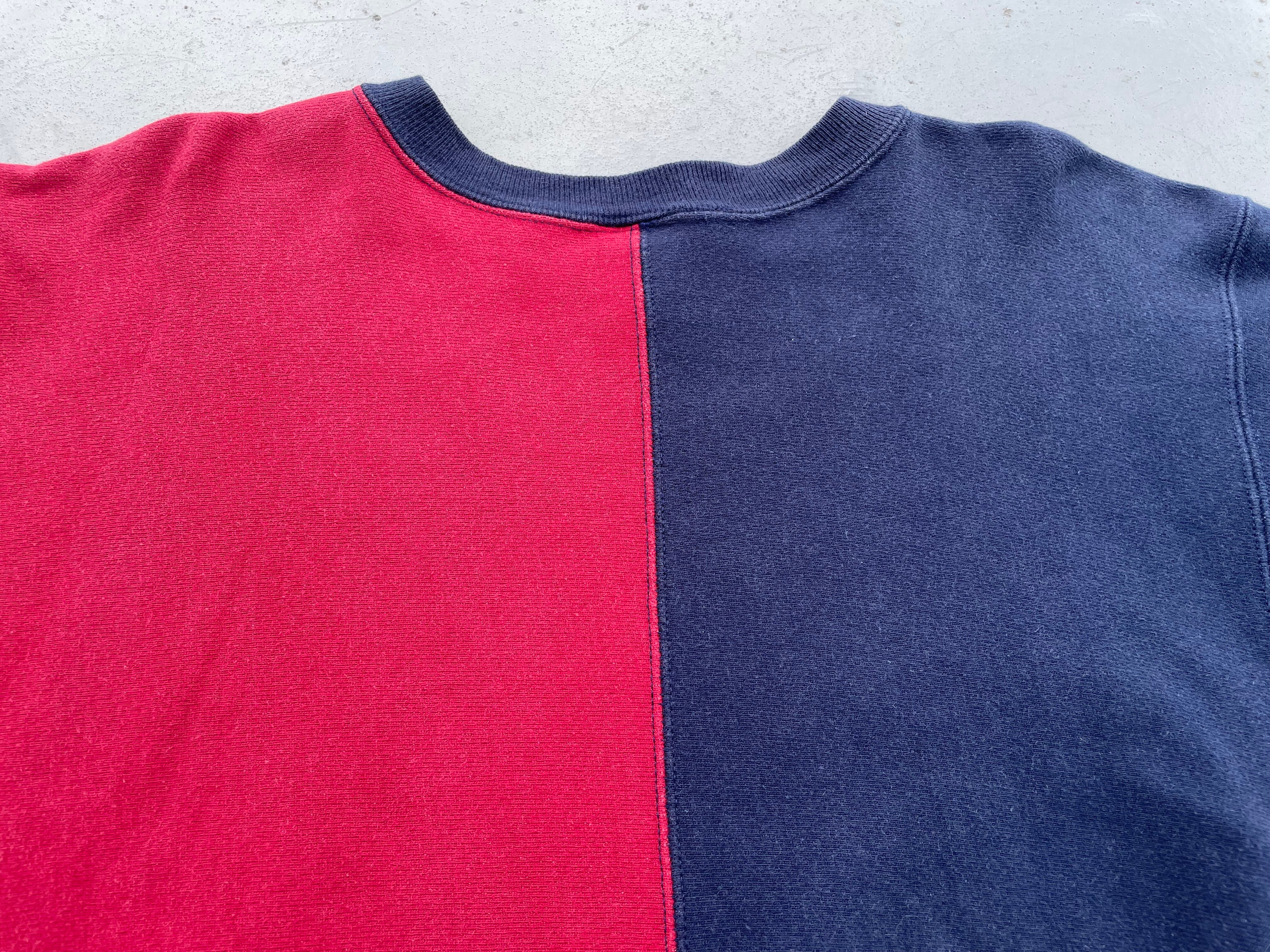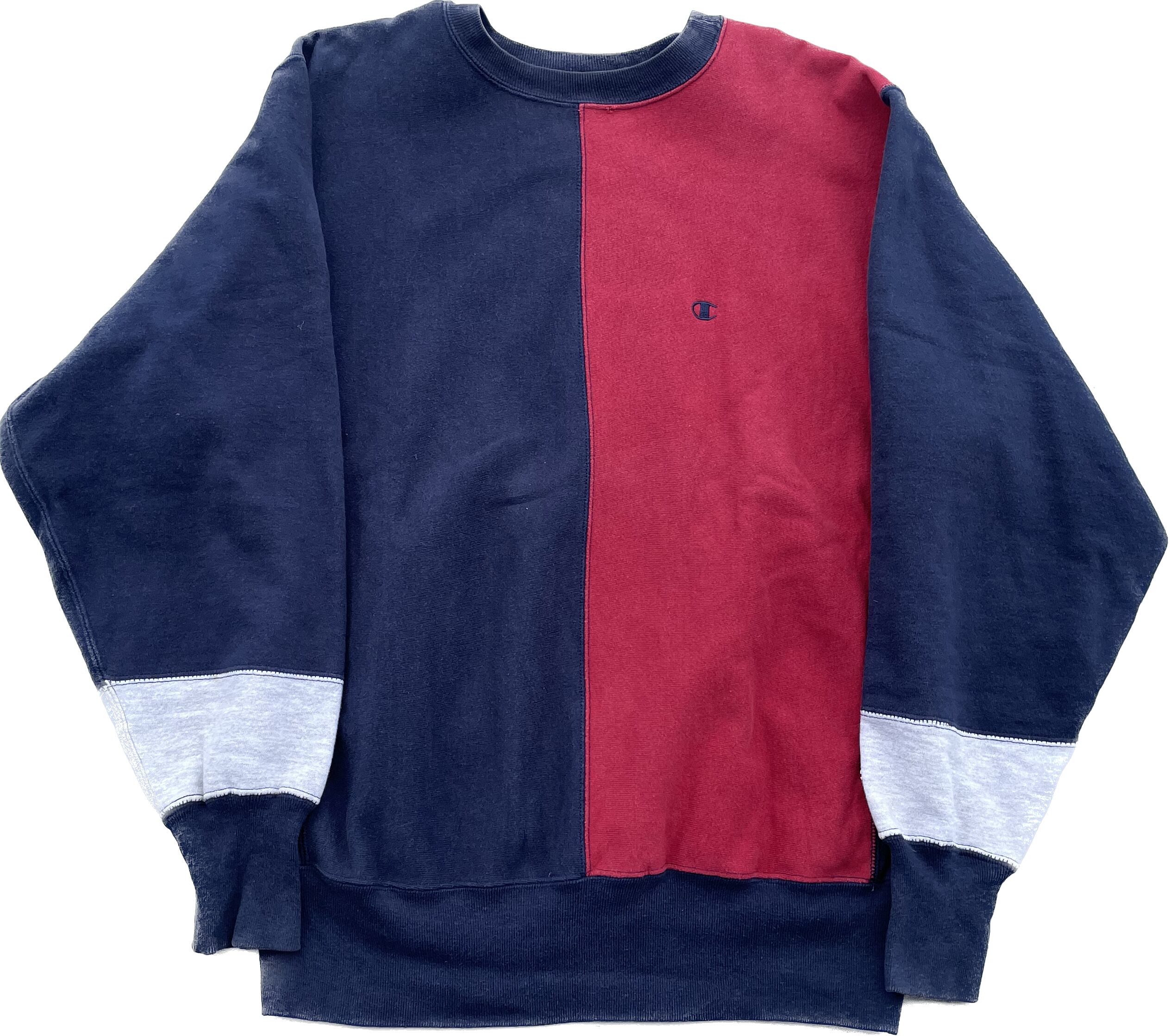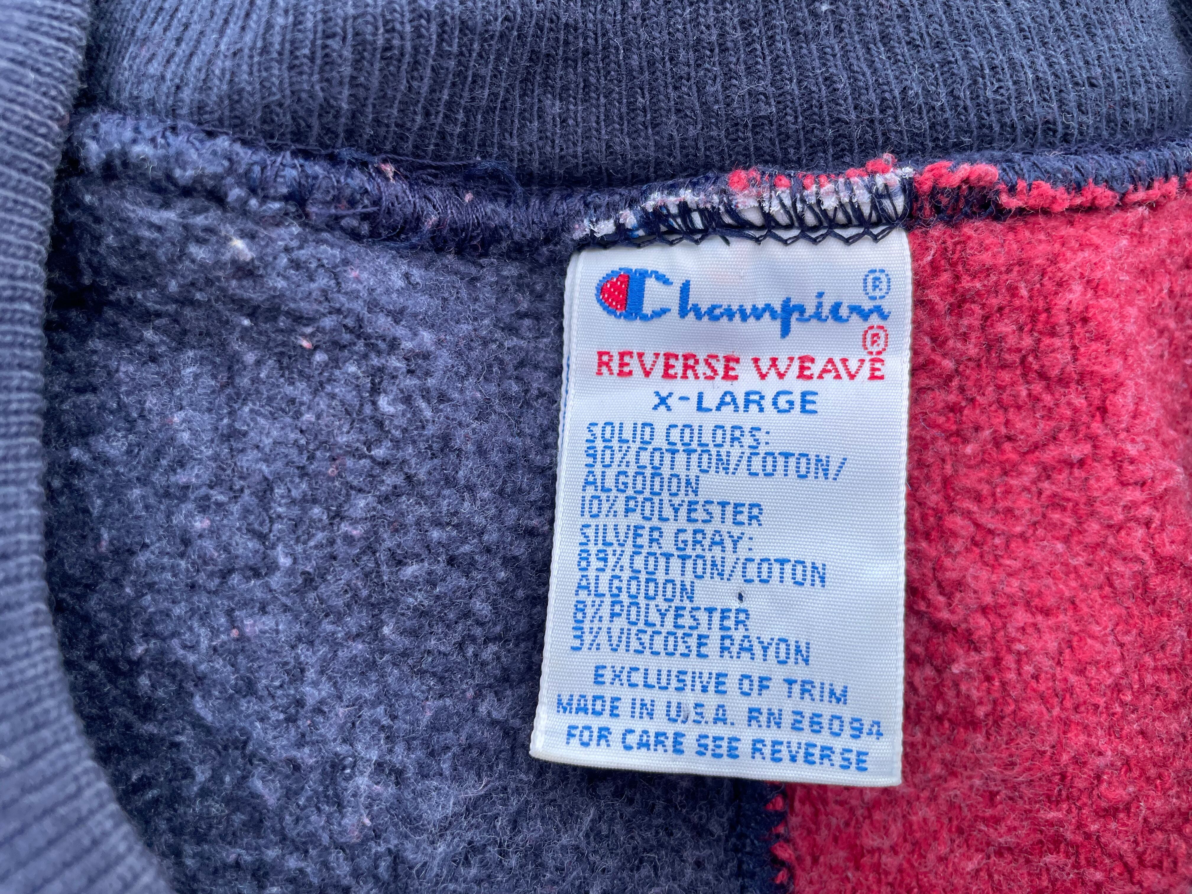 【商品詳細】チャンピオンのフルスナップリバースウィーブ。サイズはXL。カラーはダークネイビー×レッド×ヘザーグレーのクレイジーパターン。90年代USA製。リバースの中でも人気なクレイジーパターン物。クレイジーパターン物の中でもこちらは比較的落ち着いた配色◎