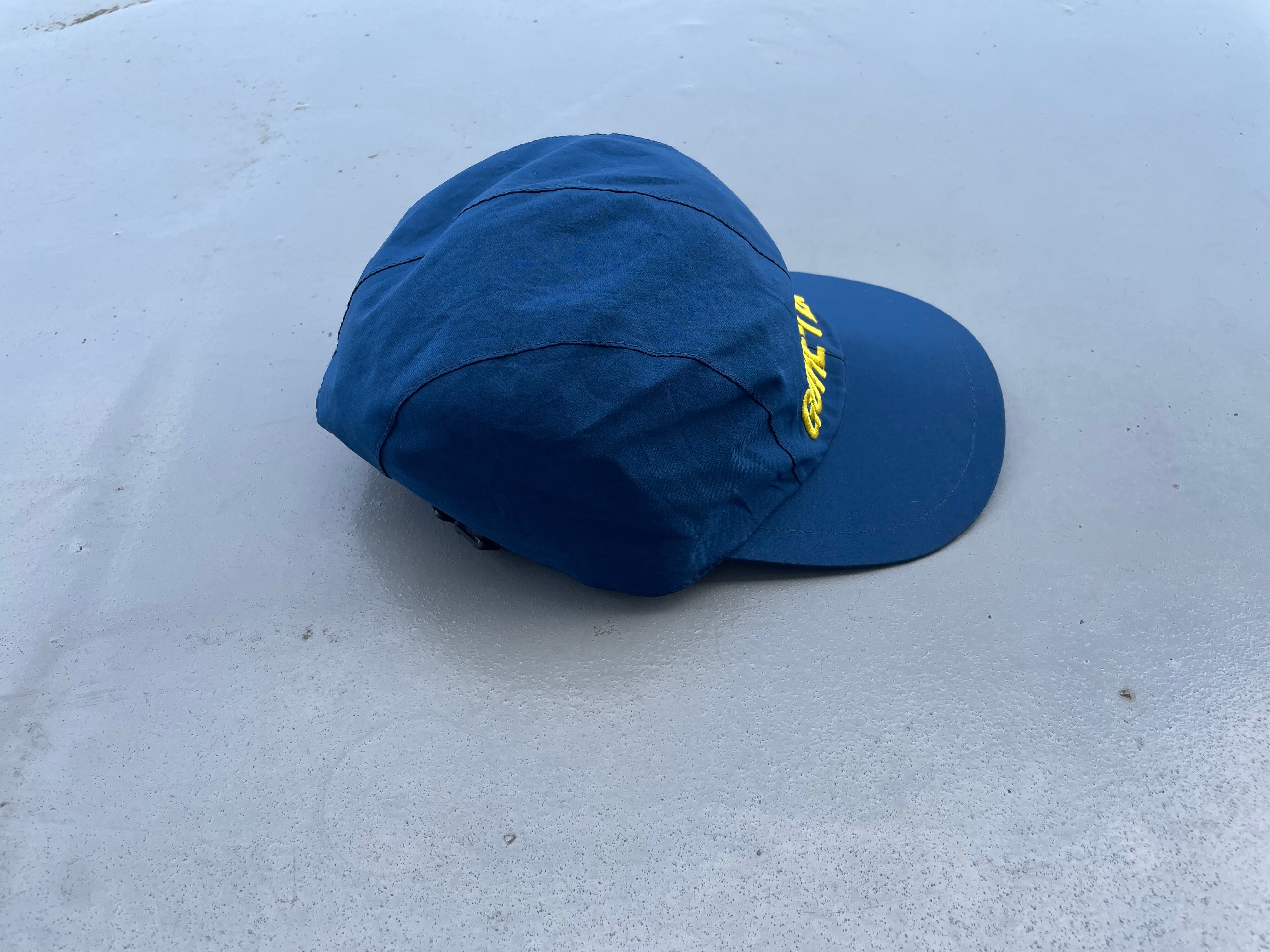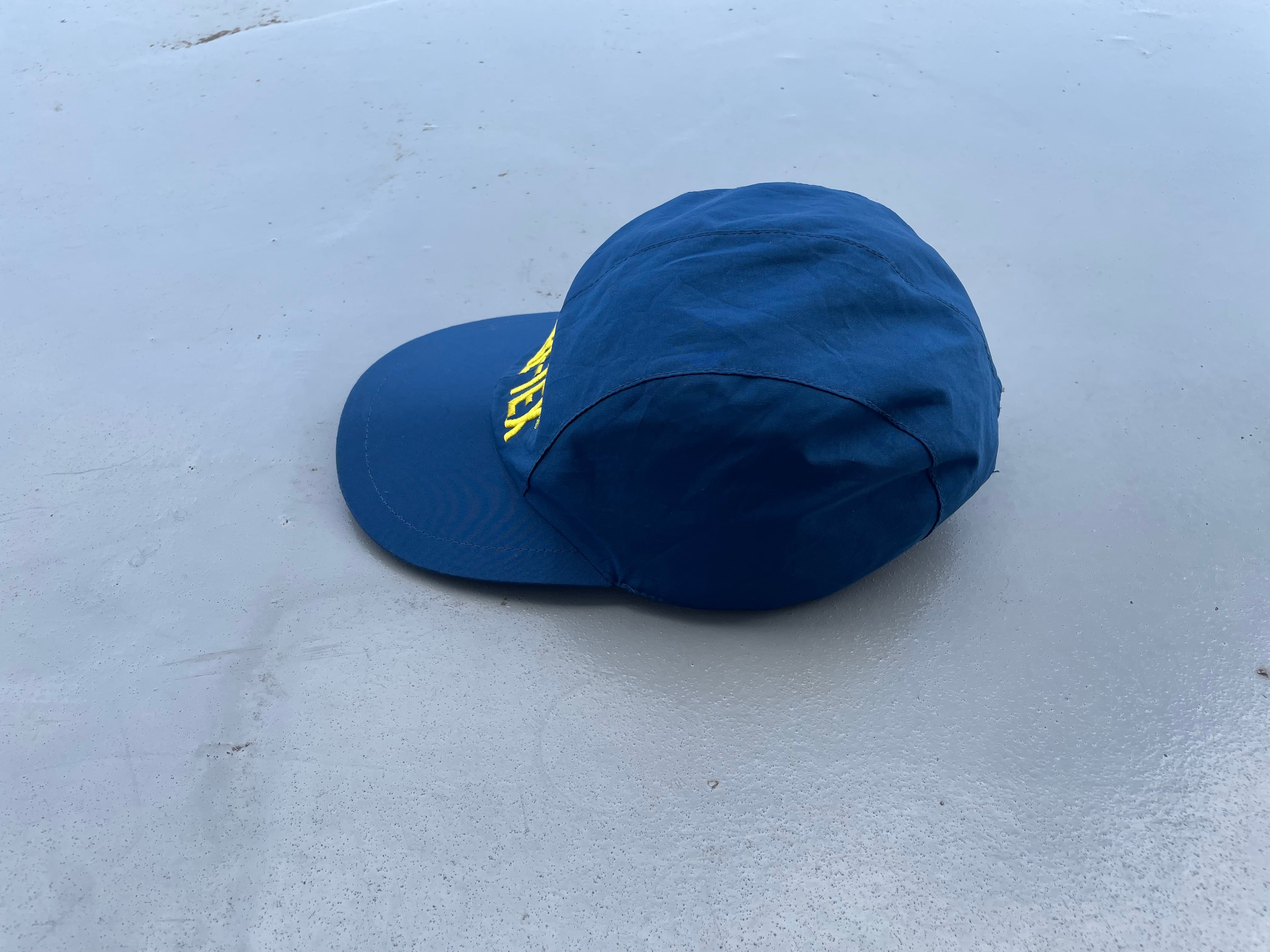 【商品詳細】GORE-TEXの4-Panelキャップ。カラーはネイビーブルー。90年代製。珍しいGORE-TEXのキャップの個体。単なるブランドキャップではなくキャップ自体が雨風に強いGORE-TEX仕様の珍しいモデル。フロントロゴがオールド書体・刺繍仕様なのもポイント高いです。2次流通でも出回り少ない珍しいモデル。