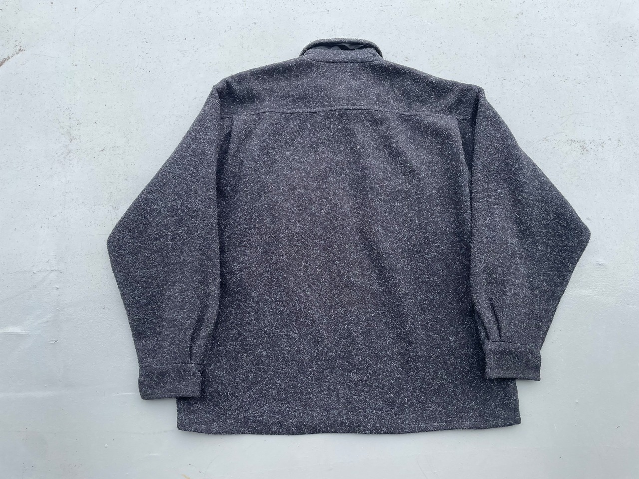【商品詳細】グラミチのフリースオーバーシャツ。サイズはM。カラーはダークグレー。90年代USA製。パタゴニアの某モデルと似た本モデル。大きくとられたディテールやシルエットは残しつつ、全体がちりめん仕様になったパタゴニアには無いデザインに仕上がってます。見つからない系ですね。
