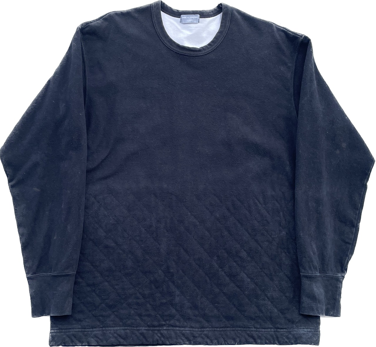 【商品詳細】コムデギャルソン オムのダイヤモンドキルトプルオーバースウェット。カラーはブラック。97年日本製。田中オム期らしいダイヤモンドキルト仕様になった変わり種スウェット。プレーンなスウェットも良いですが一癖ギミックの効いた物も面白いですね。程良く使用感のある古着に合わせやすい雰囲気になってます。
