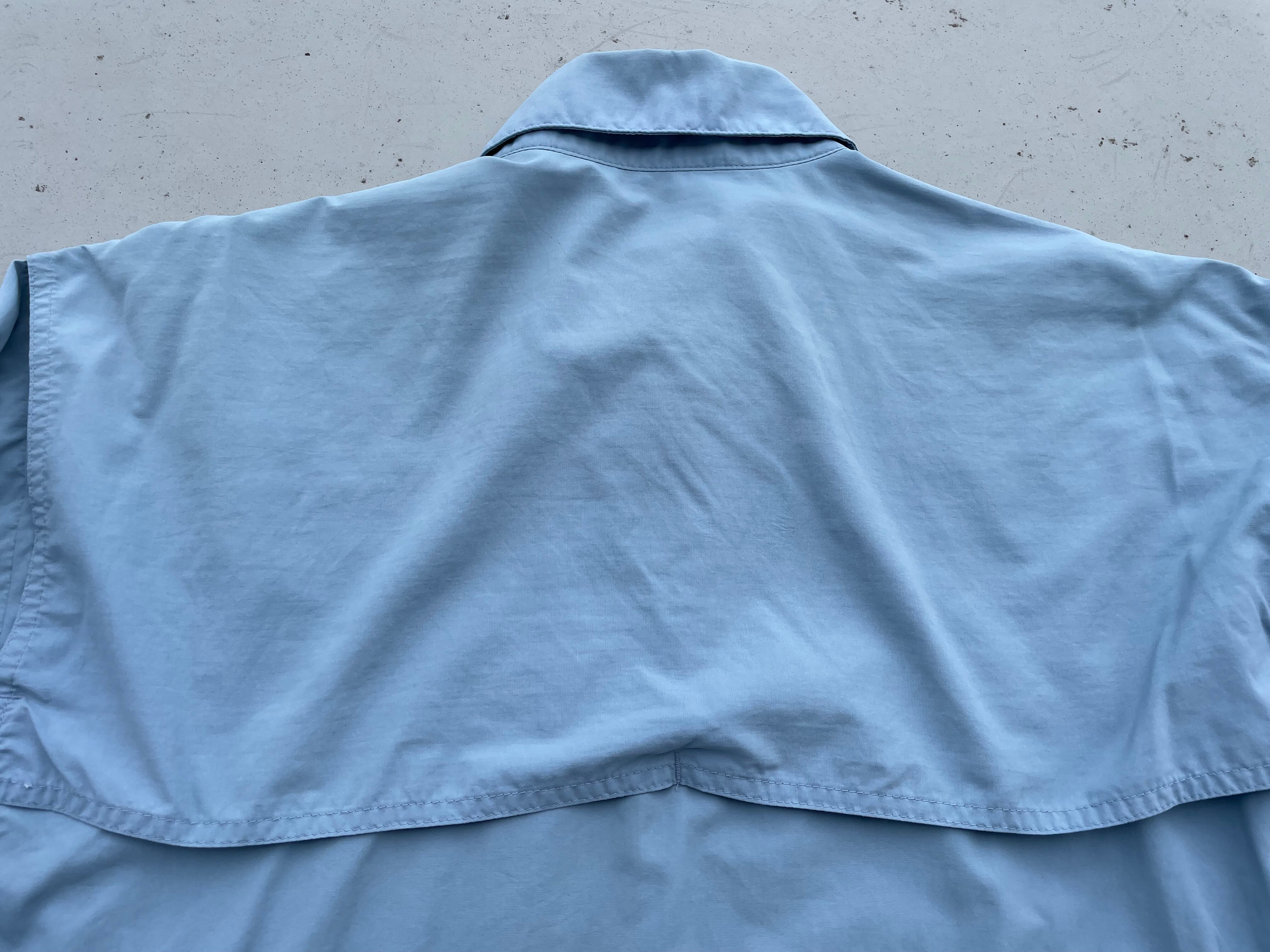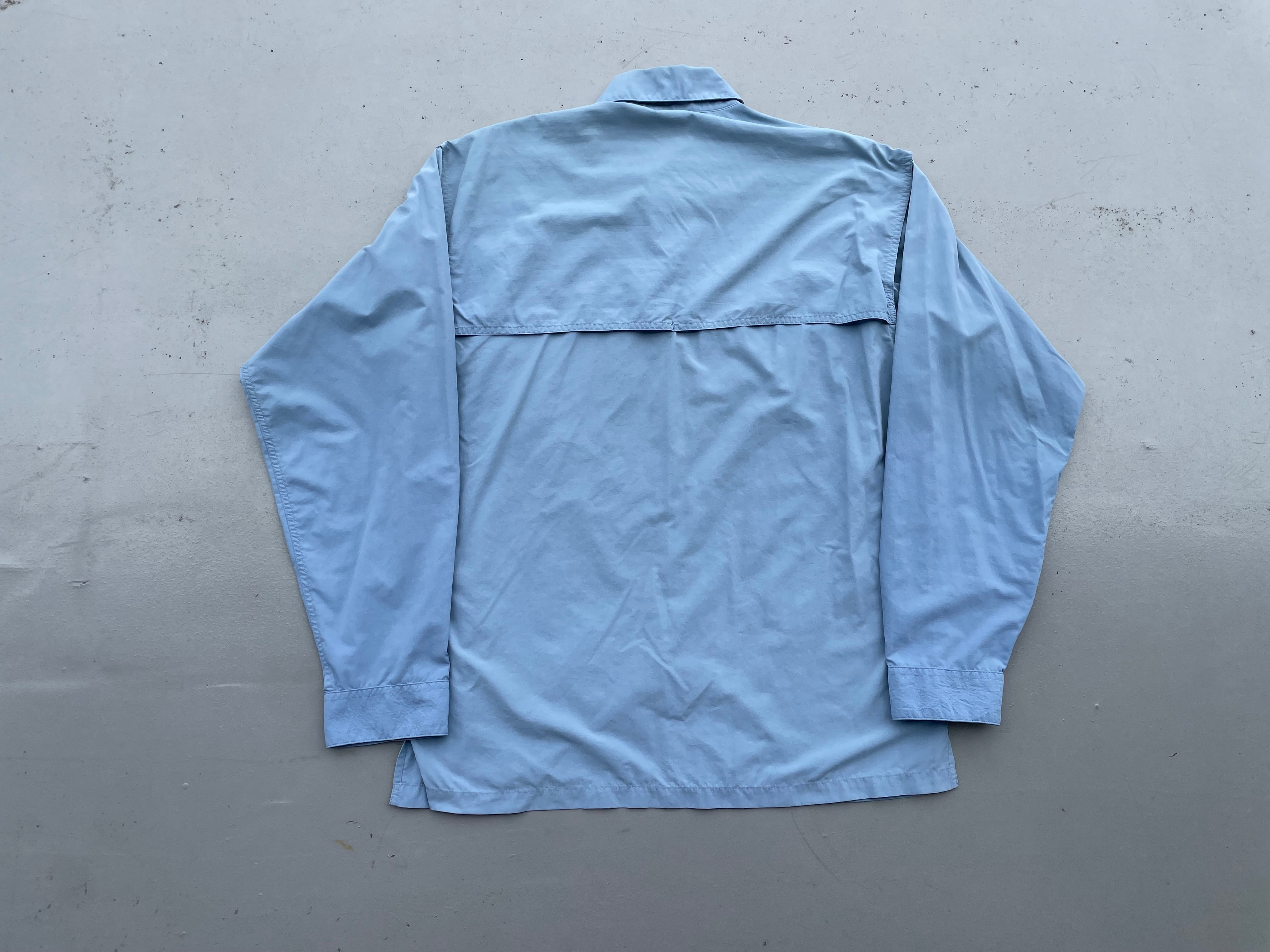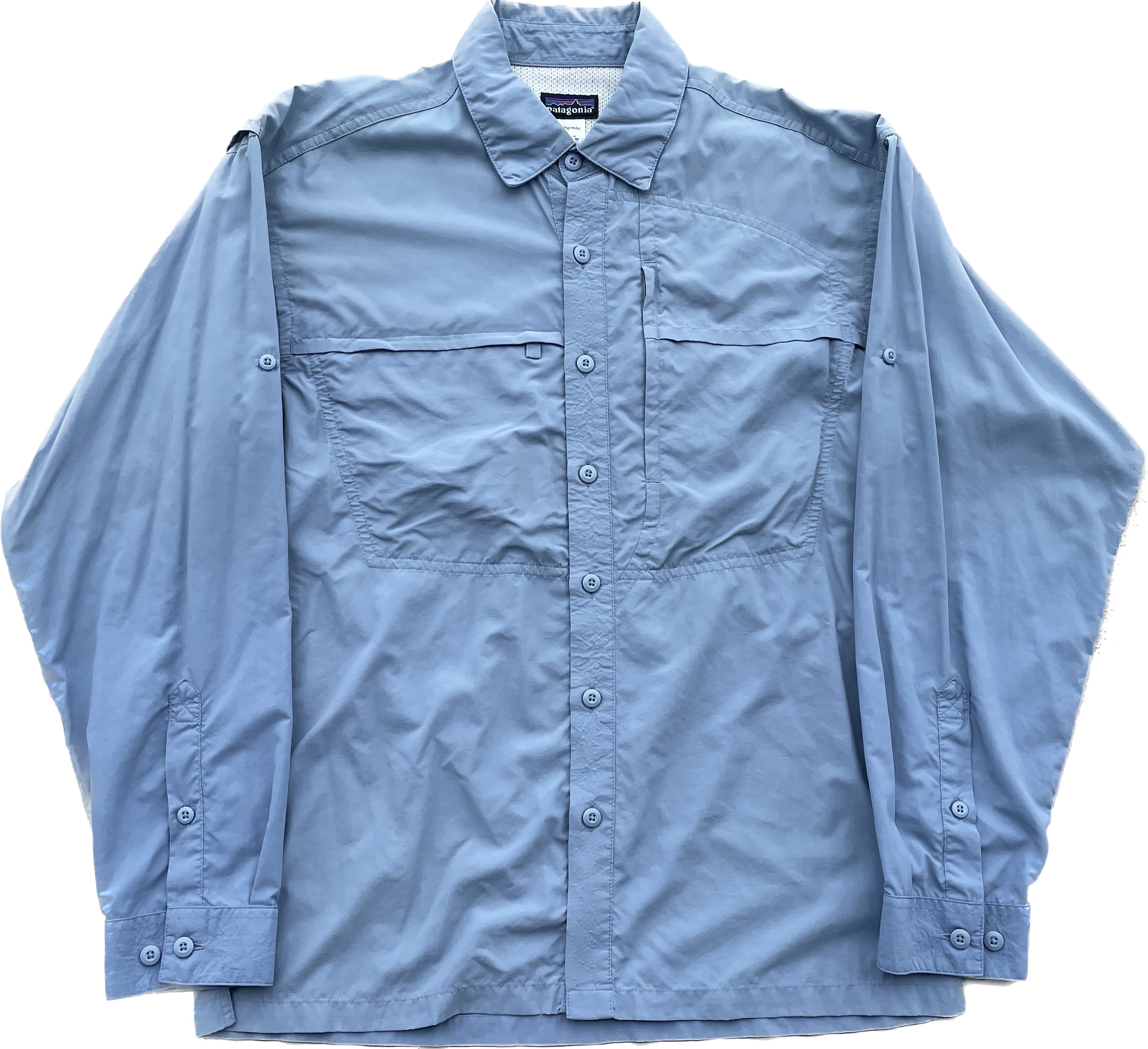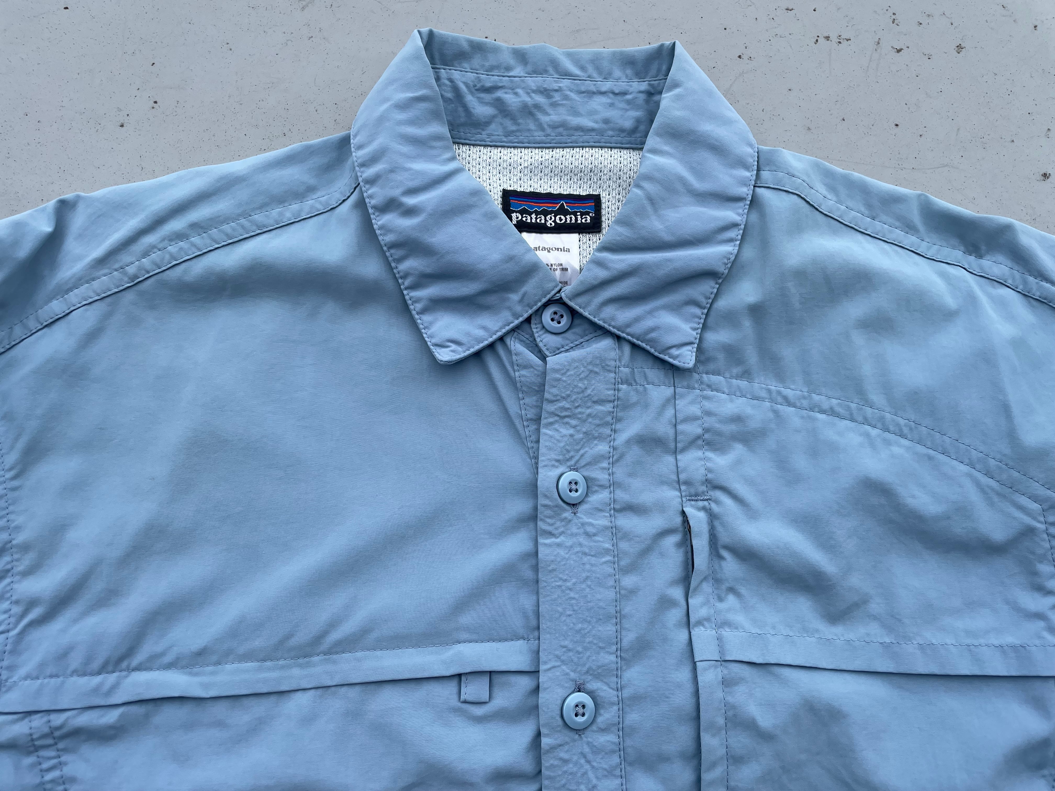 【商品詳細】パタゴニアのソルパトロールシャツ。サイズはS。カラーはライトブルー。08年タイ製。パタゴニア定番モデルソルパトロールシャツ。所謂フィッシングシャツのディテールでオールナイロン地の本格仕様ながらタウンユースでも使える優れ者。シワがつきづらいので今時期は持ち運びにも良いですね。Sサイズですが実寸の通り大きめの作り。