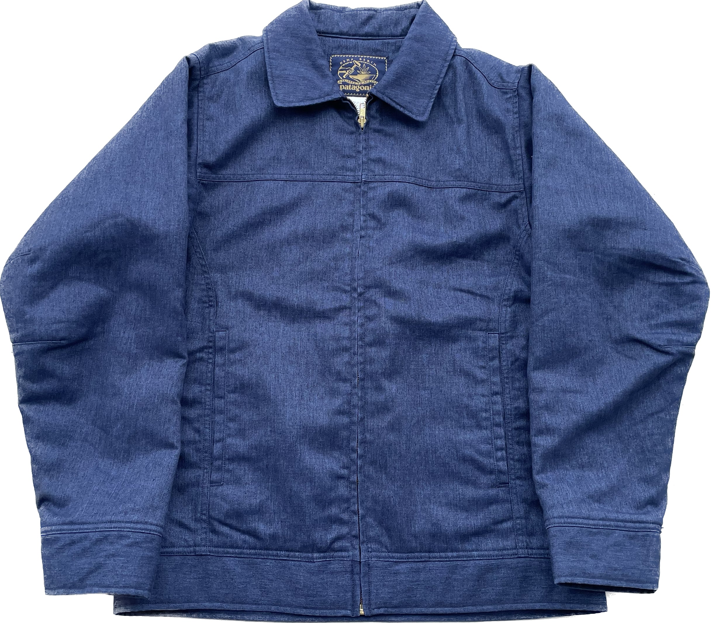 【商品詳細】パタゴニアのハイワイヤーへンプジャケット。サイズはM。カラーはインディゴ。05年中国製。弊店でも大人気のリズムシリーズ名品モデル。ライニングは100%リサイクルポリエステル地でしっかり暖かいです。表地ヘンプ&ポリエステル地でヘビーにご使用頂けます。年代物ですが比較的状態良いと思います。