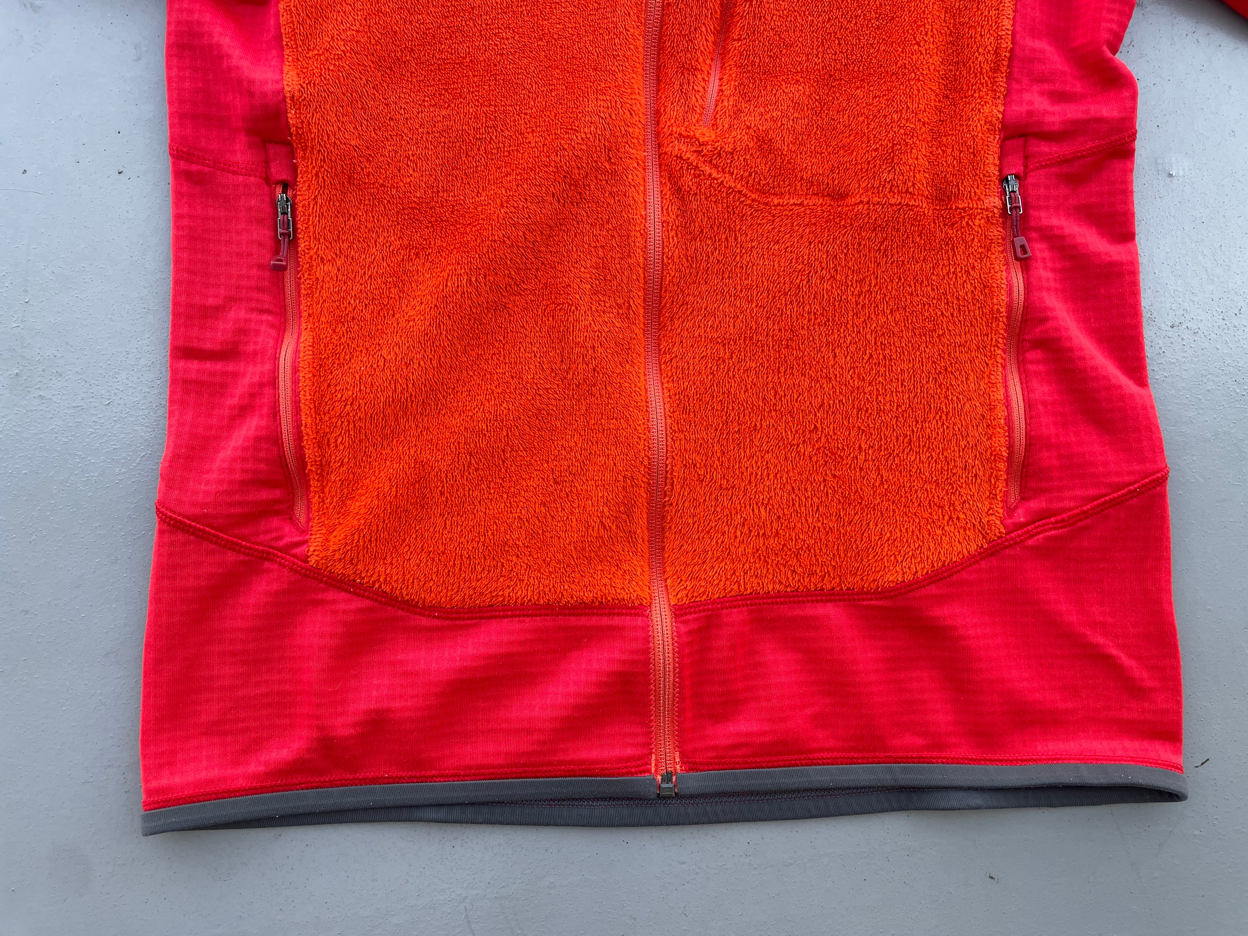 【商品詳細】パタゴニアのレギュレータージャケット。サイズはM。カラーはEclectic Orange。13年コロンビア製。レギュレーターシリーズの中でも毛足が長くファッショナブルなデザインで人気なR2。一方で内側の一部にはR1のグリッドネルを貼っており機能面でも優秀な良いとこ取りのモデル。こちらは発色の良いオレンジカラーが印象的な一着。今時期はライトアウター、冬時期はインナーに挟むのがベストチョイスですね。