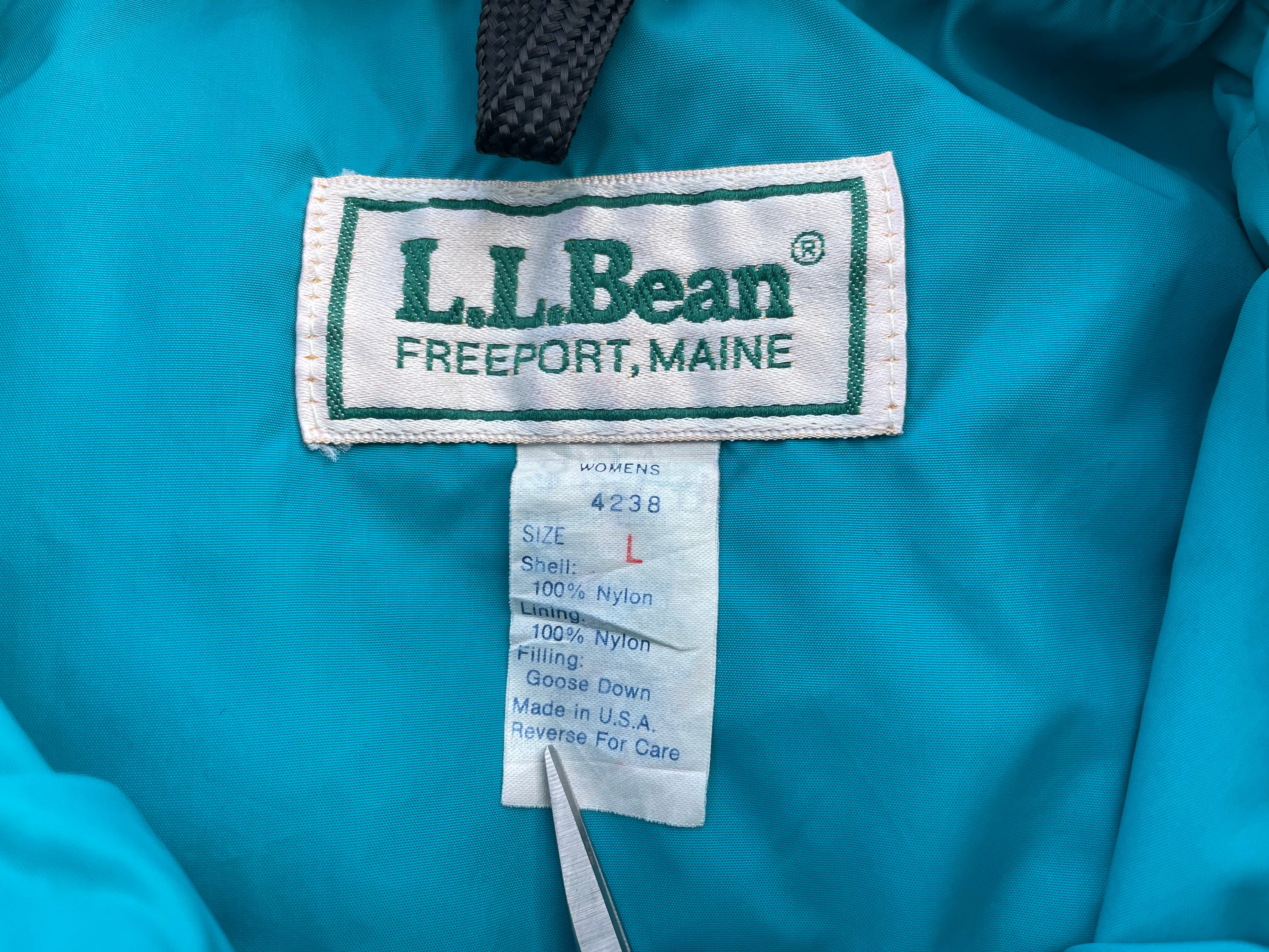 【商品詳細】エルエルビーンのダウンベスト。サイズはWOMENS L。カラーはターコイズブルー。80年代USA製。人気のエルエルビーンダウンベスト。人気カラーのターコイズブルー物。お探しの方多いかと。