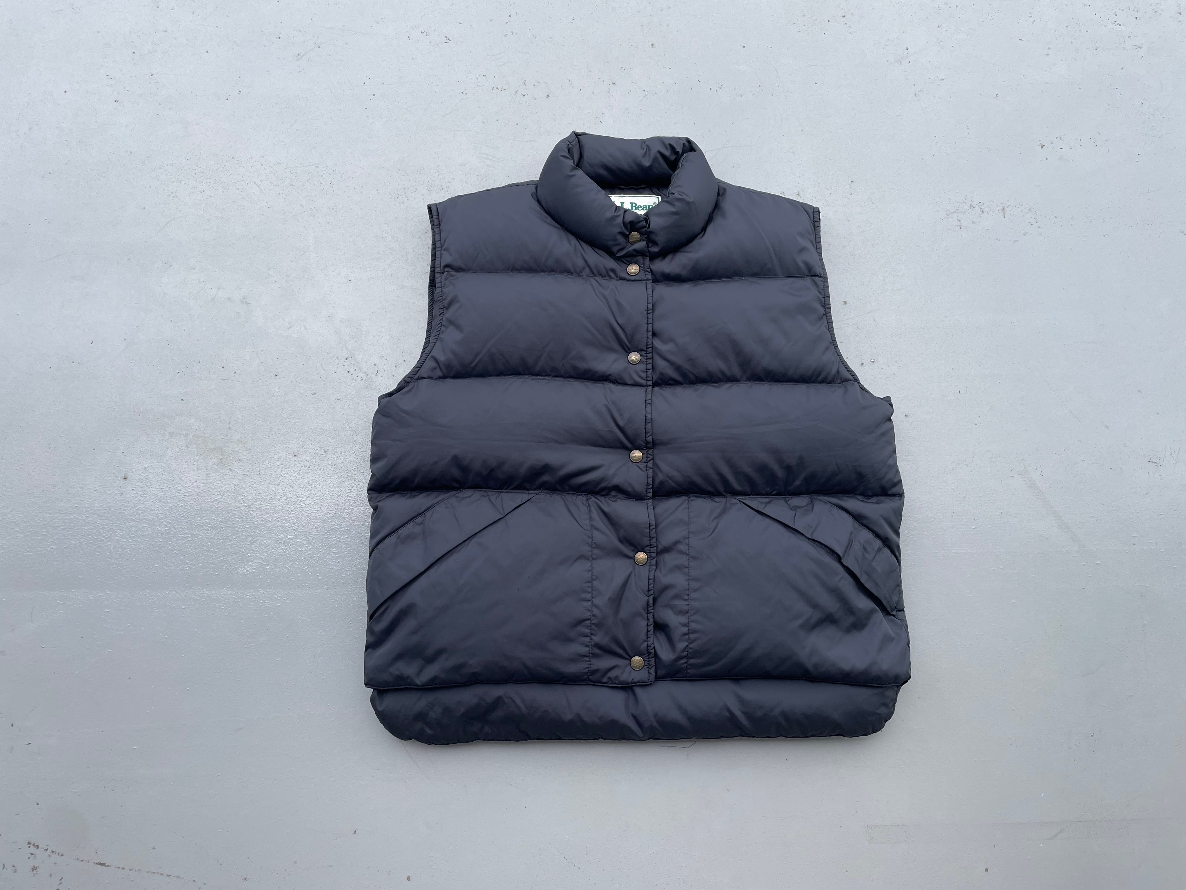 【商品詳細】エルエルビーンのダウンベスト。サイズはWOMENS L。カラーはブラック。90年代バングラディシュ製。人気のエルエルビーンダウンベスト。不動の人気カラーブラック物。柔らかい気持ちの良い触り心地で年代物ですが状態も良さそうです。レディース企画ですが実寸の通り十分大きいサイズ。メンズでも問題なくご着用いただけます。