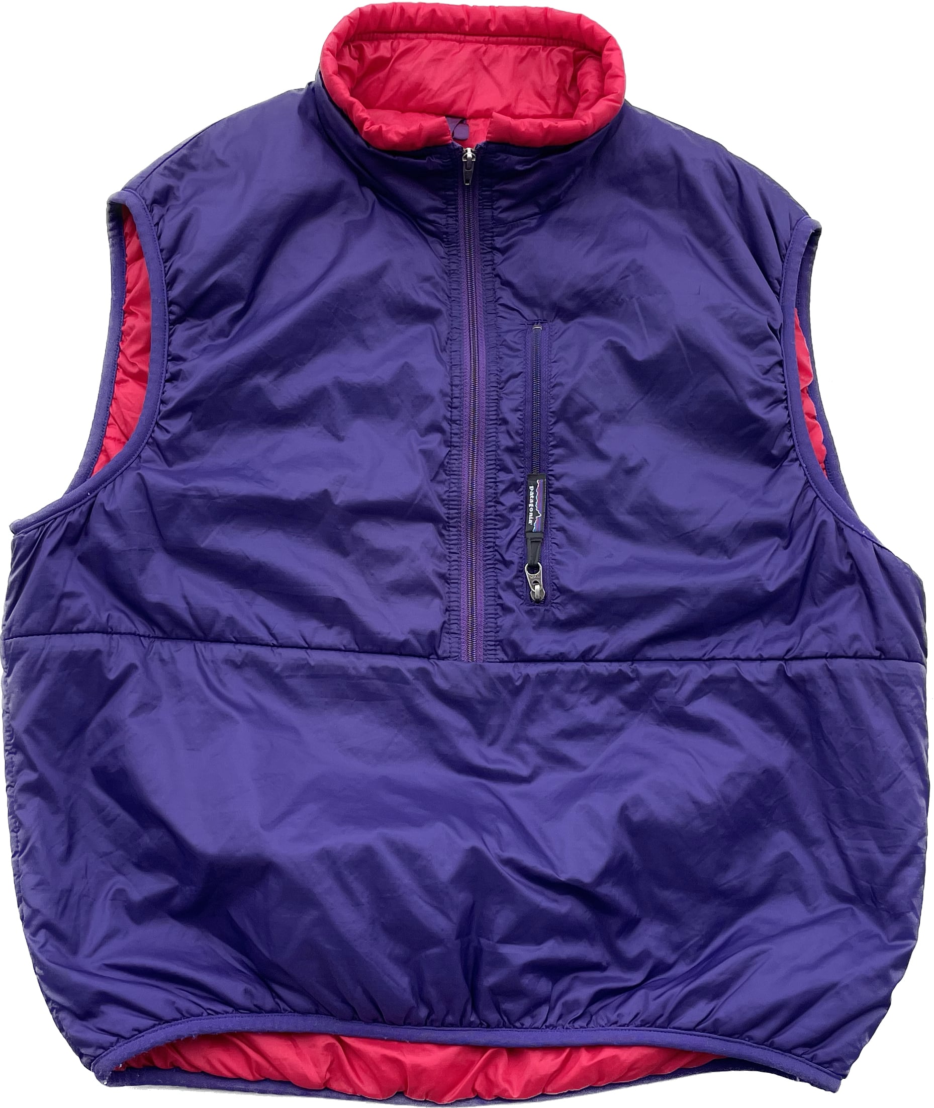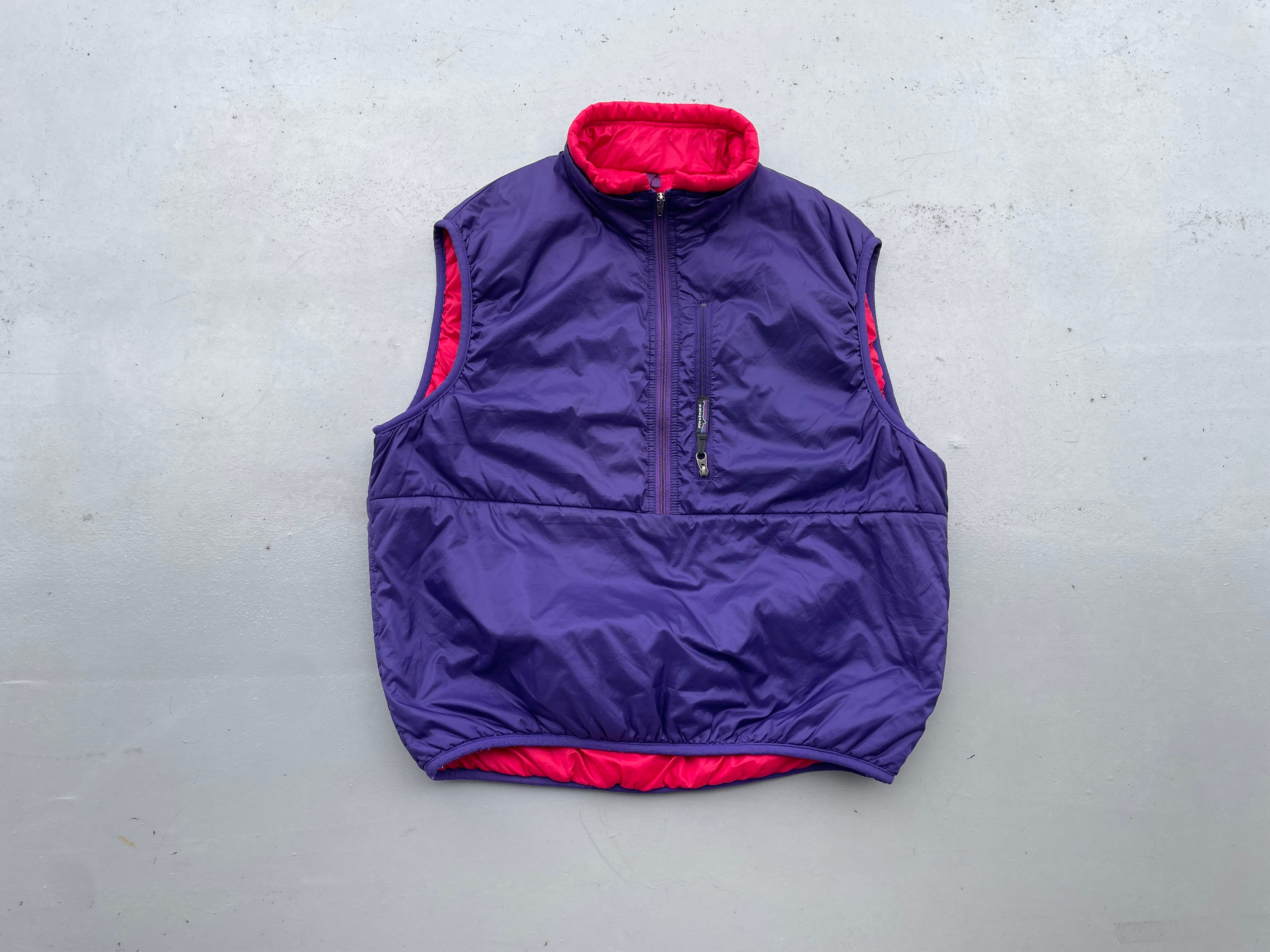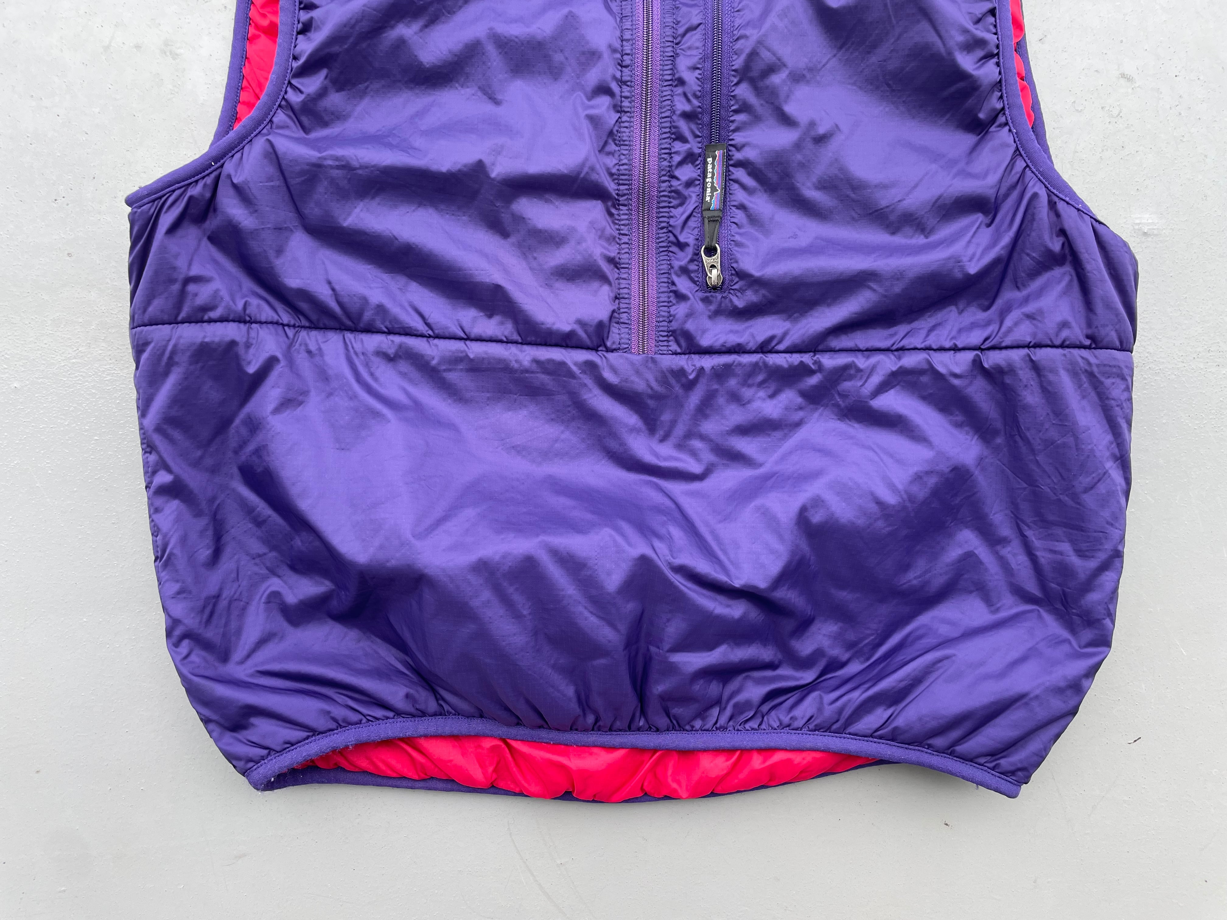 【商品詳細】パタゴニアのパフボールベスト。サイズはM。カラーはディープパープル。98年USA製。人気モデルパフボールベスト。プルオーバー仕様ですが身幅しっかりあるのでゆったり着れます。インナーカラーのフェニックスレッドも良いですね。