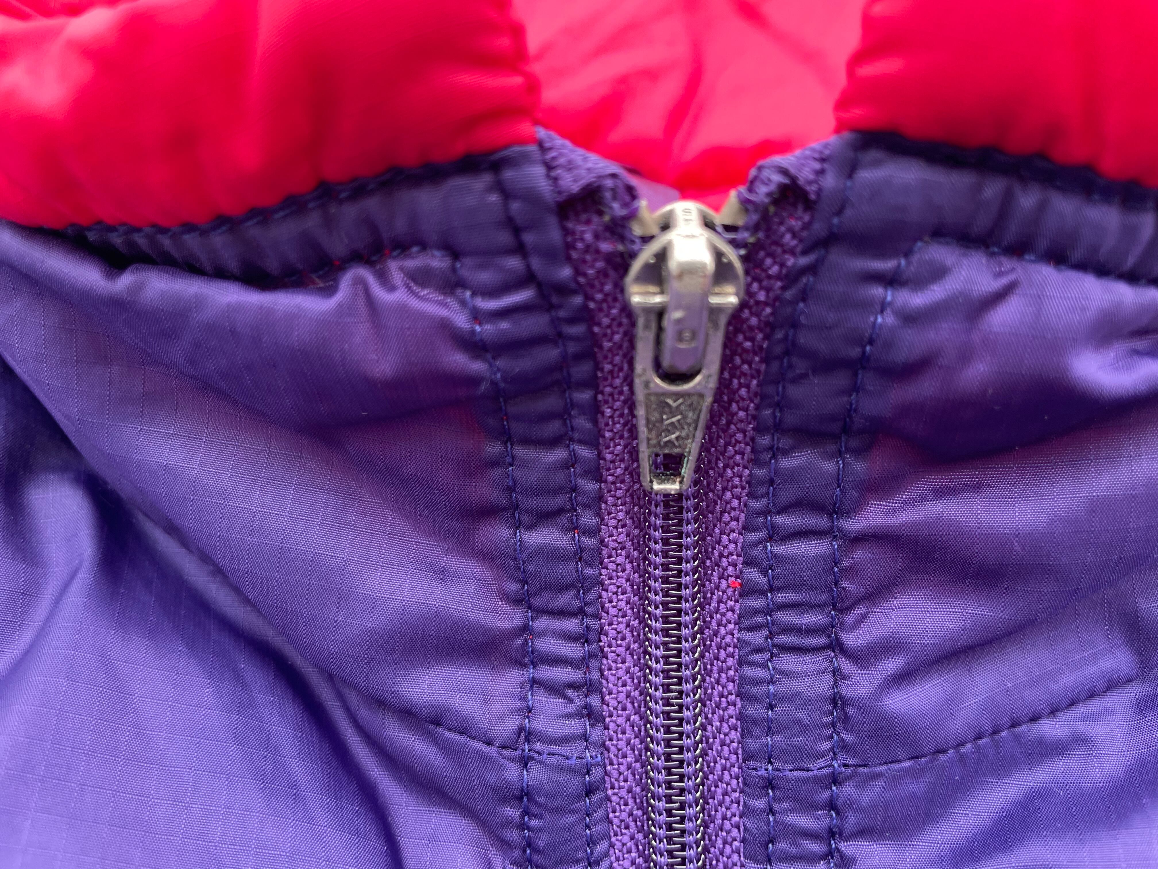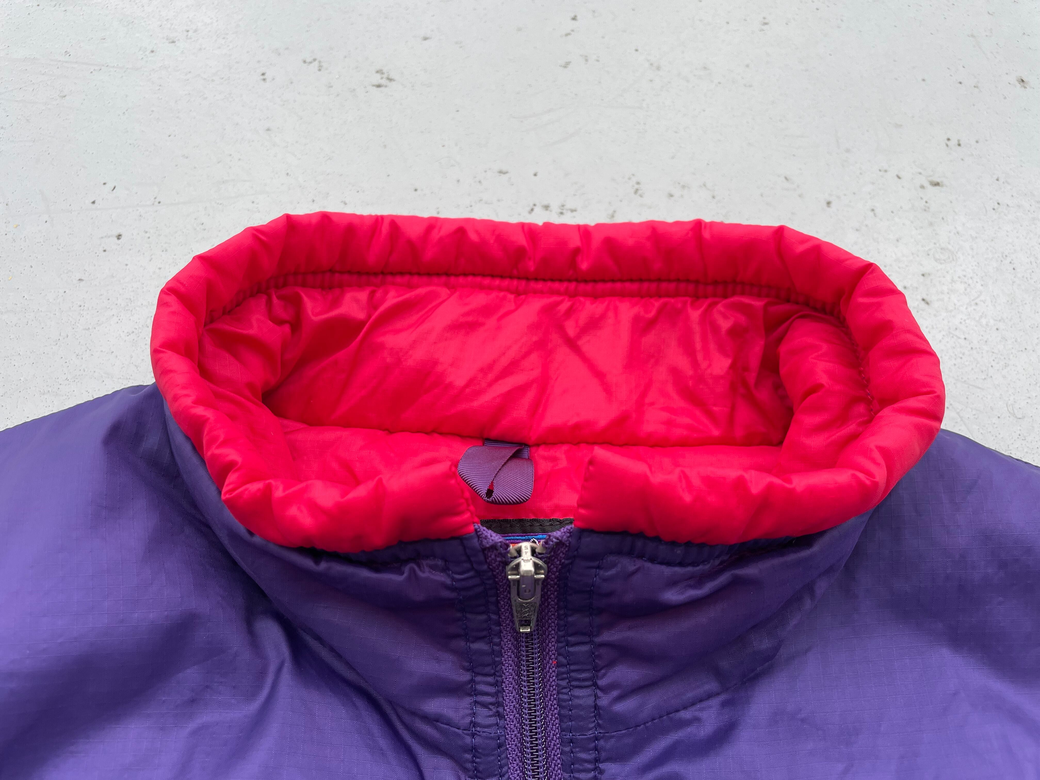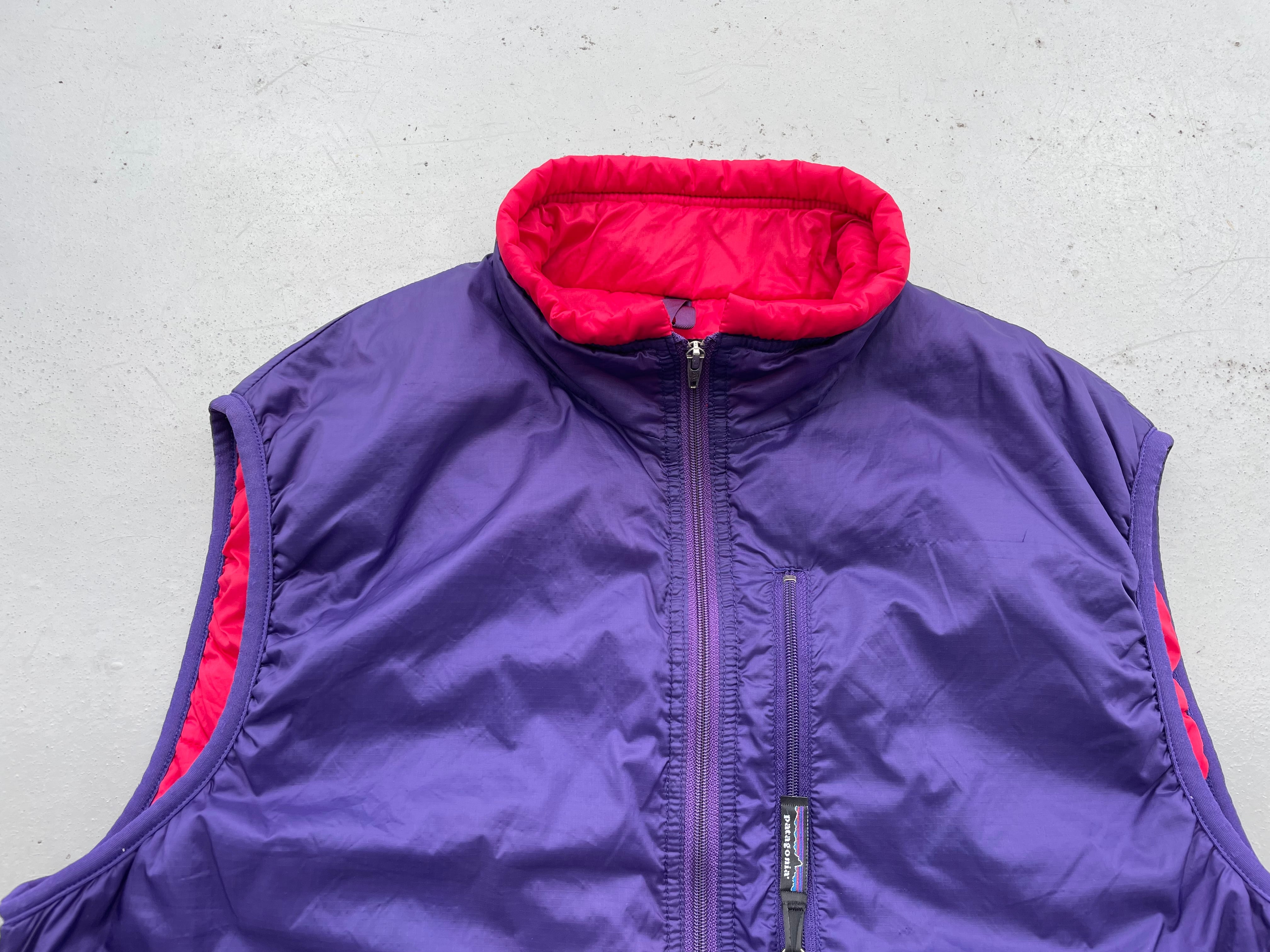 【商品詳細】パタゴニアのパフボールベスト。サイズはM。カラーはディープパープル。98年USA製。人気モデルパフボールベスト。プルオーバー仕様ですが身幅しっかりあるのでゆったり着れます。インナーカラーのフェニックスレッドも良いですね。